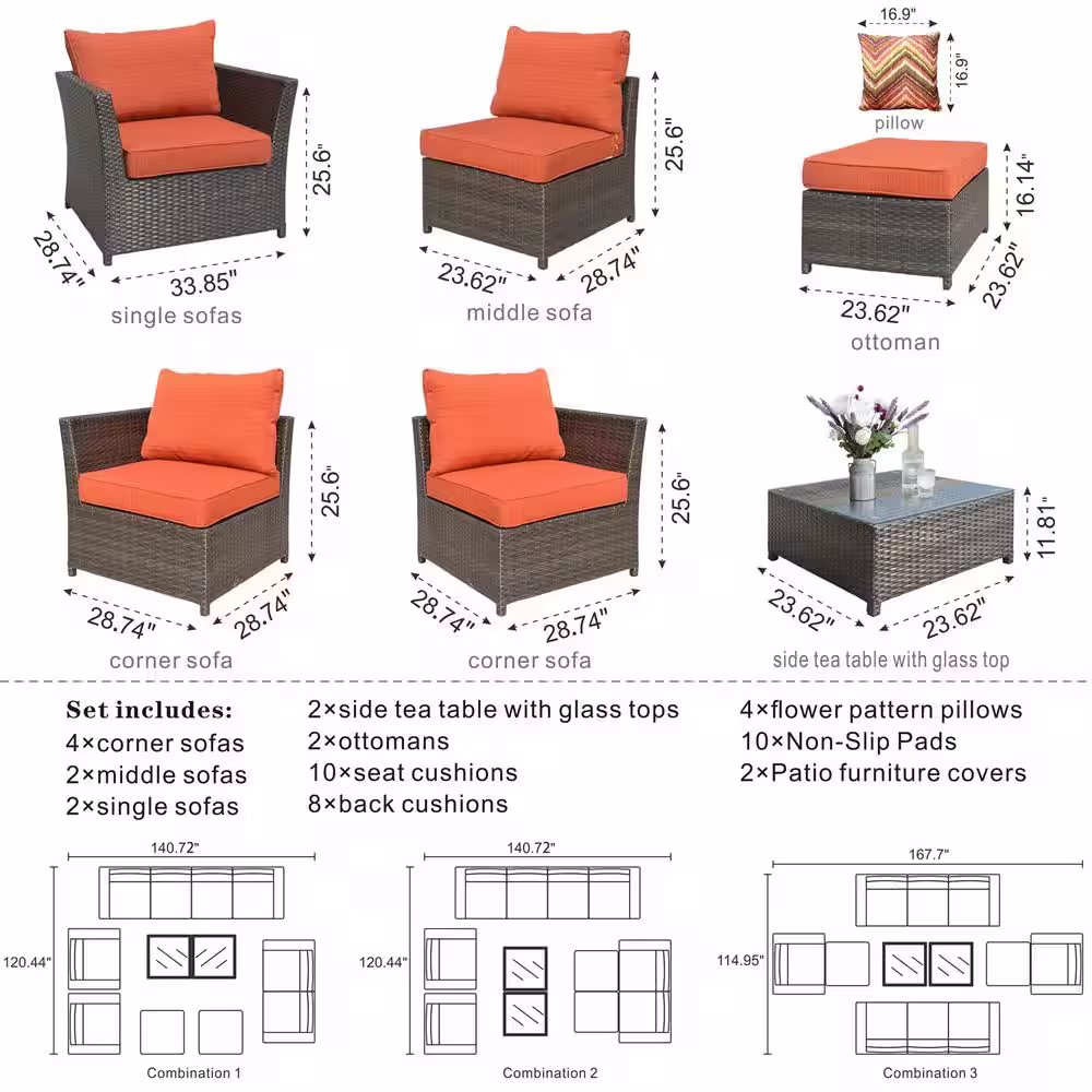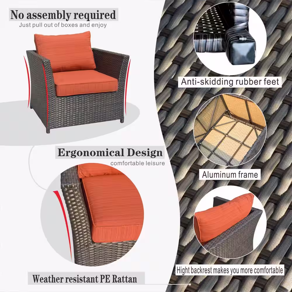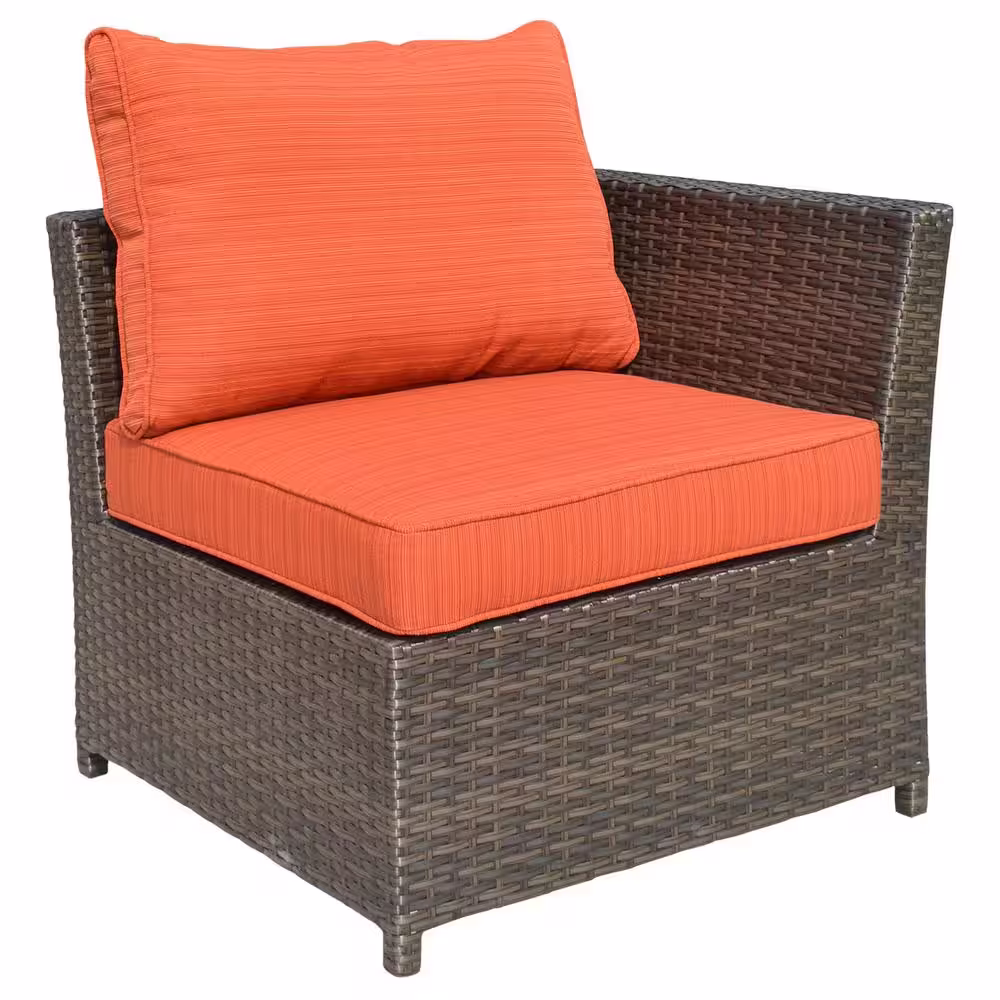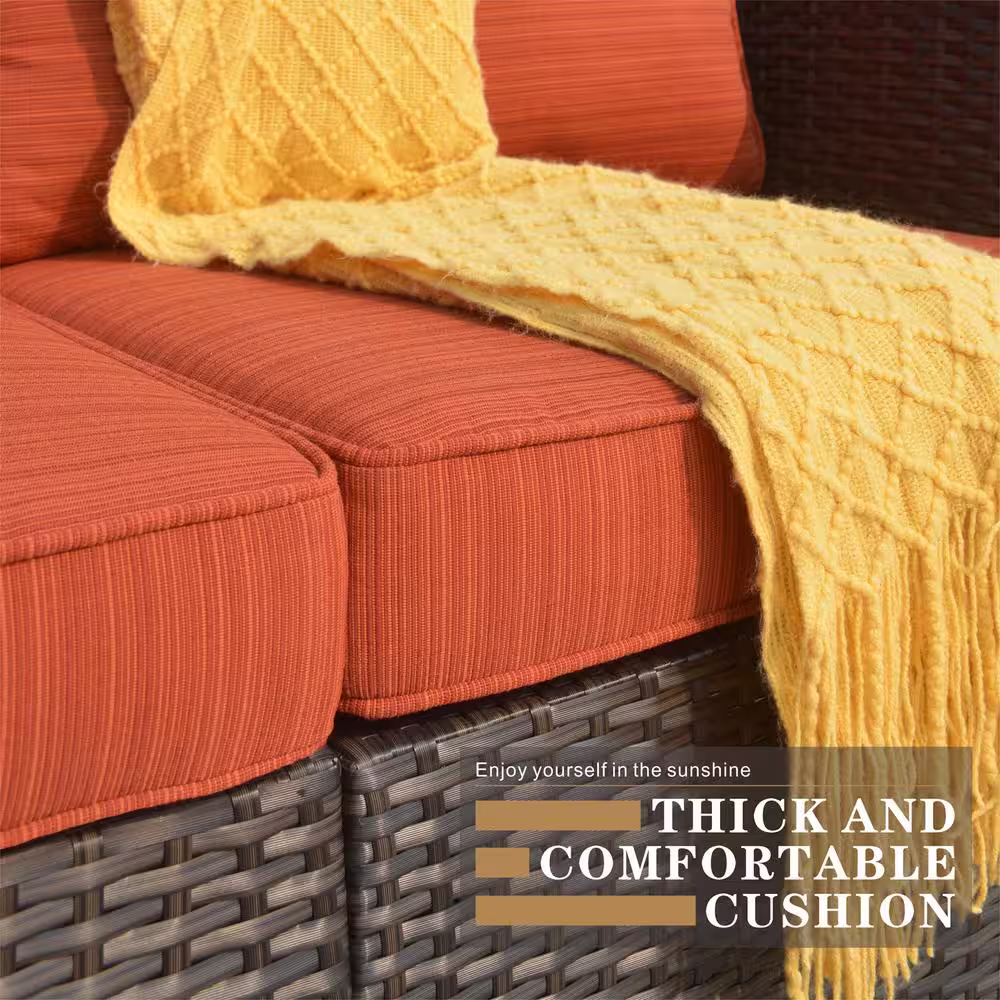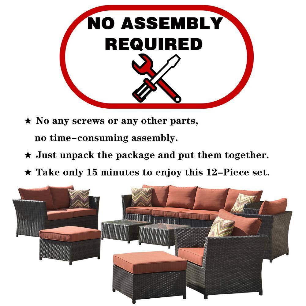 XIZZI Zeus Brown 12-Piece Wicker Outdoor Patio Conversation Sectional Sofa Set with Orange Red Cushions