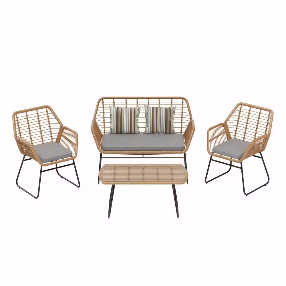 WESTIN OUTDOOR MOLLY 4-Piece Wicker Patio Conversation Set with Gray Cushions