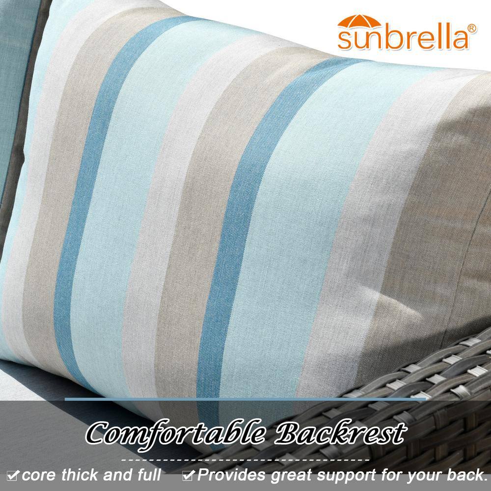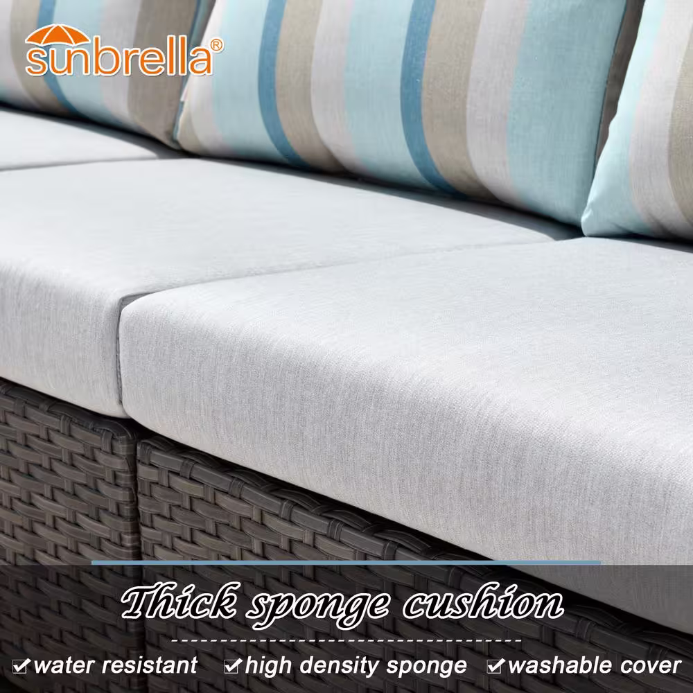 None Tahiti Gray 9-Piece Wicker Outdoor Patio Conversation Seating Set with Gray Stripe Sunbrella Cushions