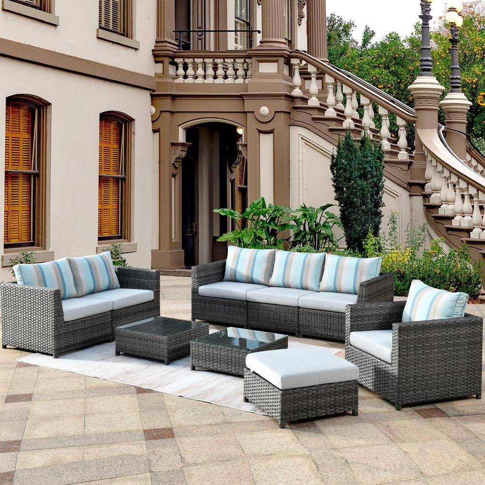 None 8-Piece Outdoor Sofa Set Patio Rattan Wicker Conversation Set w/Coffee Table