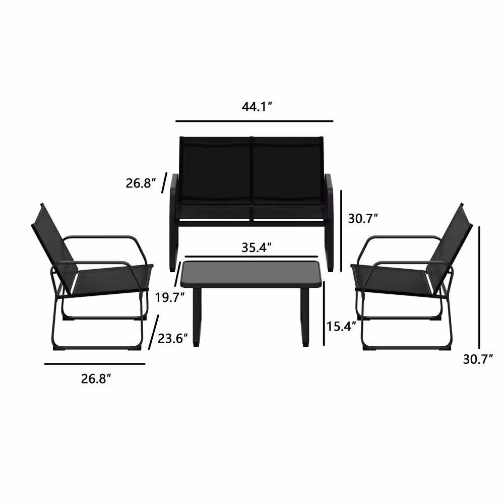 CORVUS Yorkdale Black 4-Piece Outdoor Sling Fabric Patio Conversation Set
