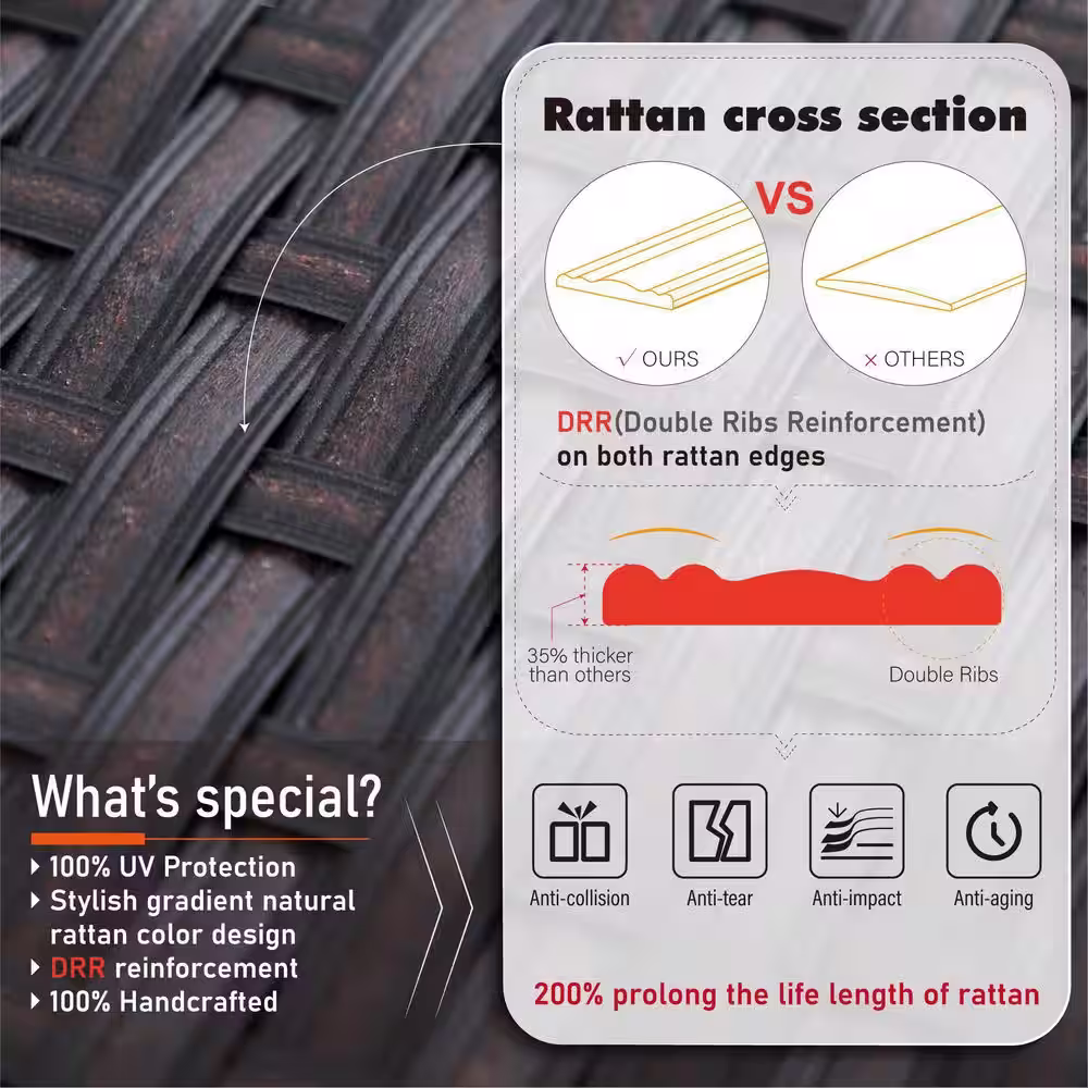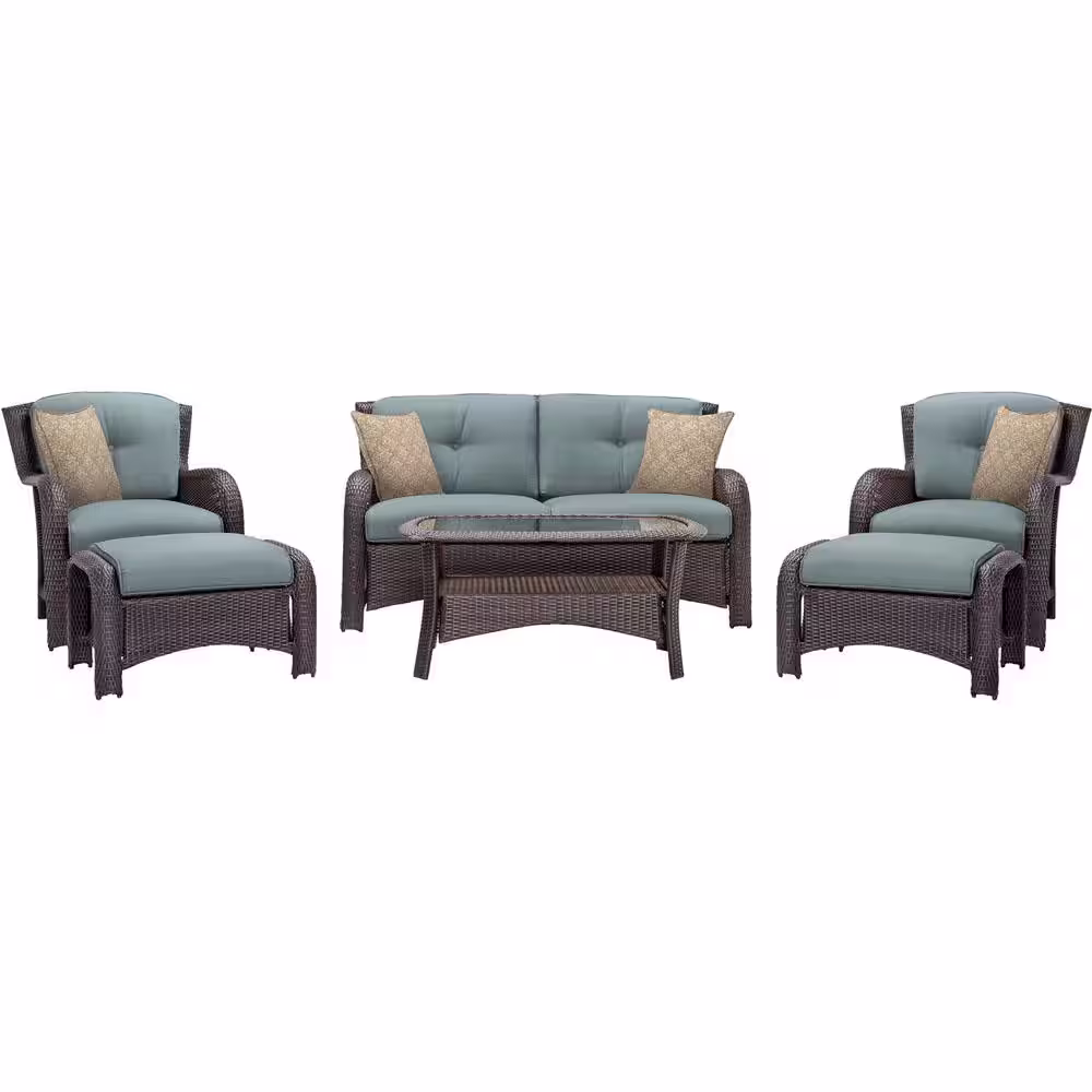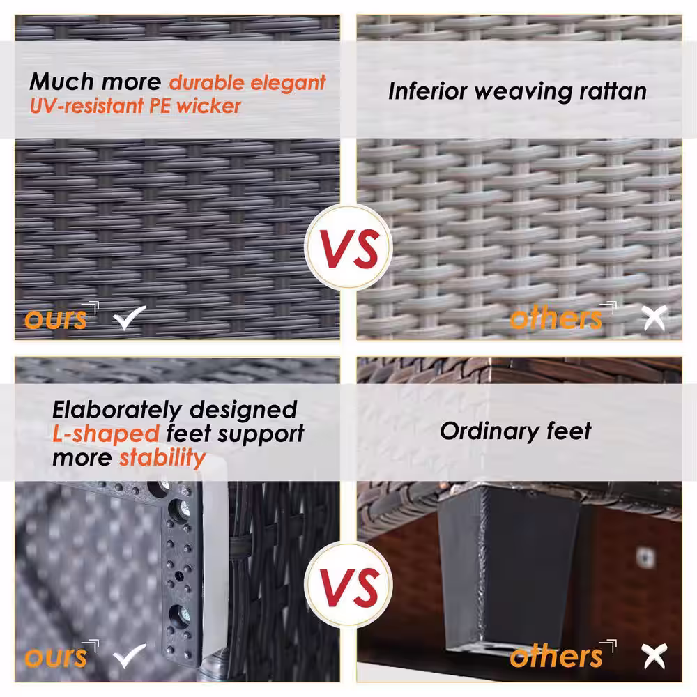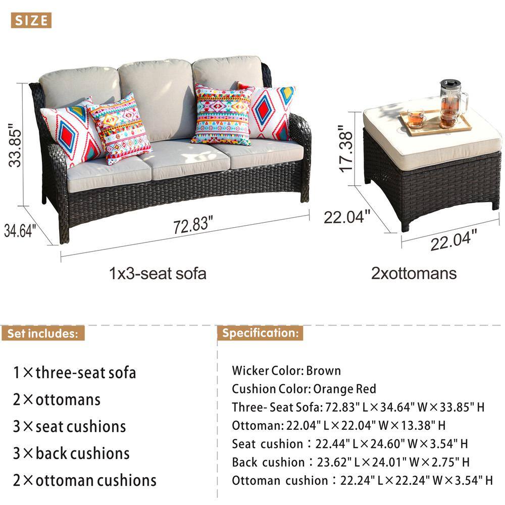 Ohana Depot Ohana Mixed Brown 7-Piece Wicker Patio Seating Set with Sunbrella Jockey Red Cushions