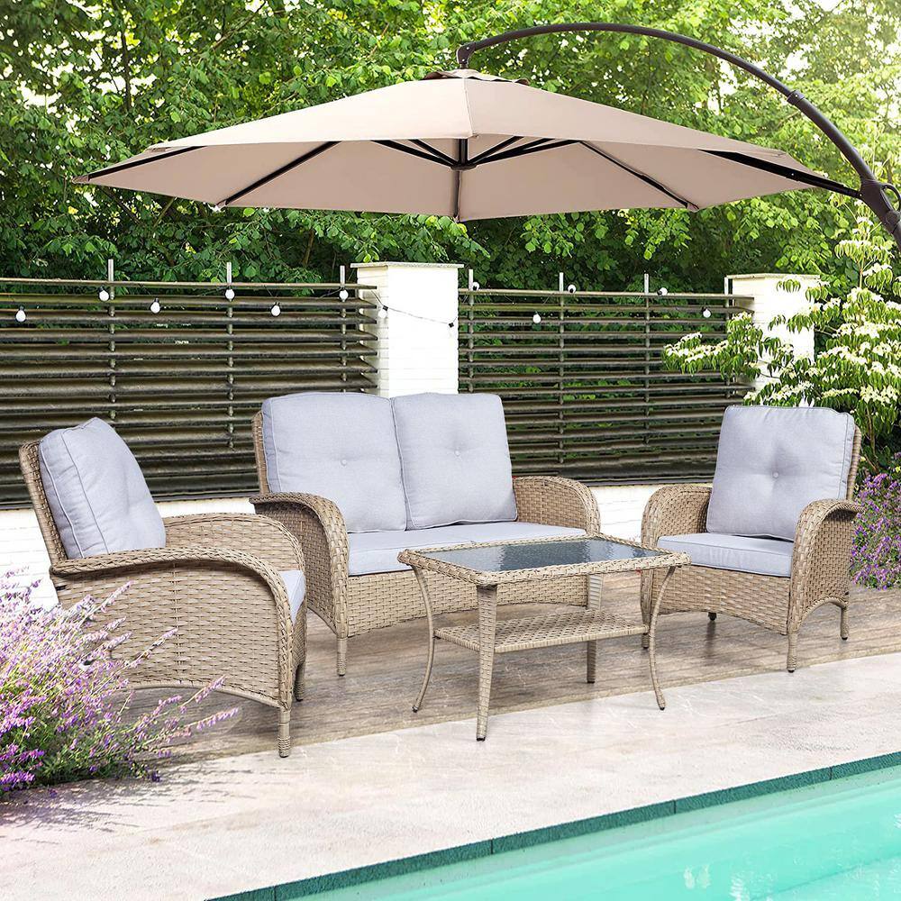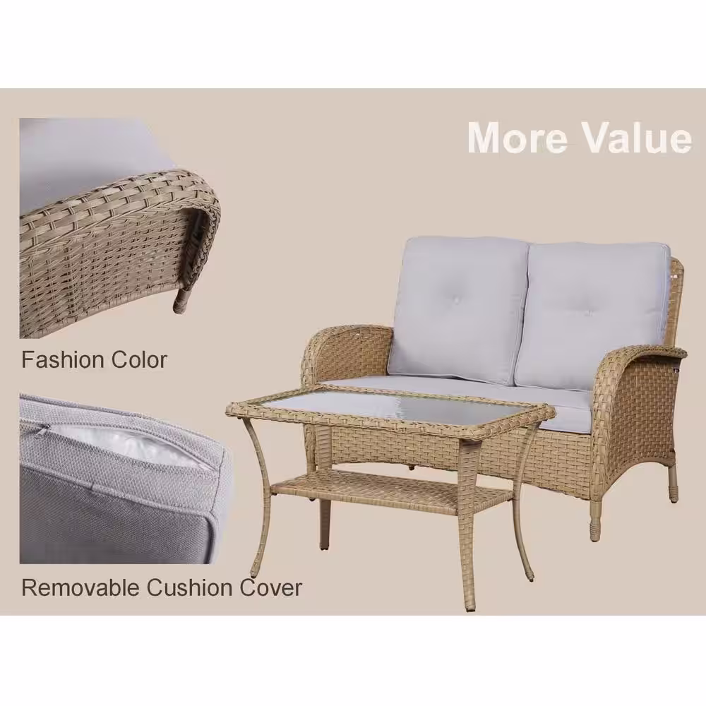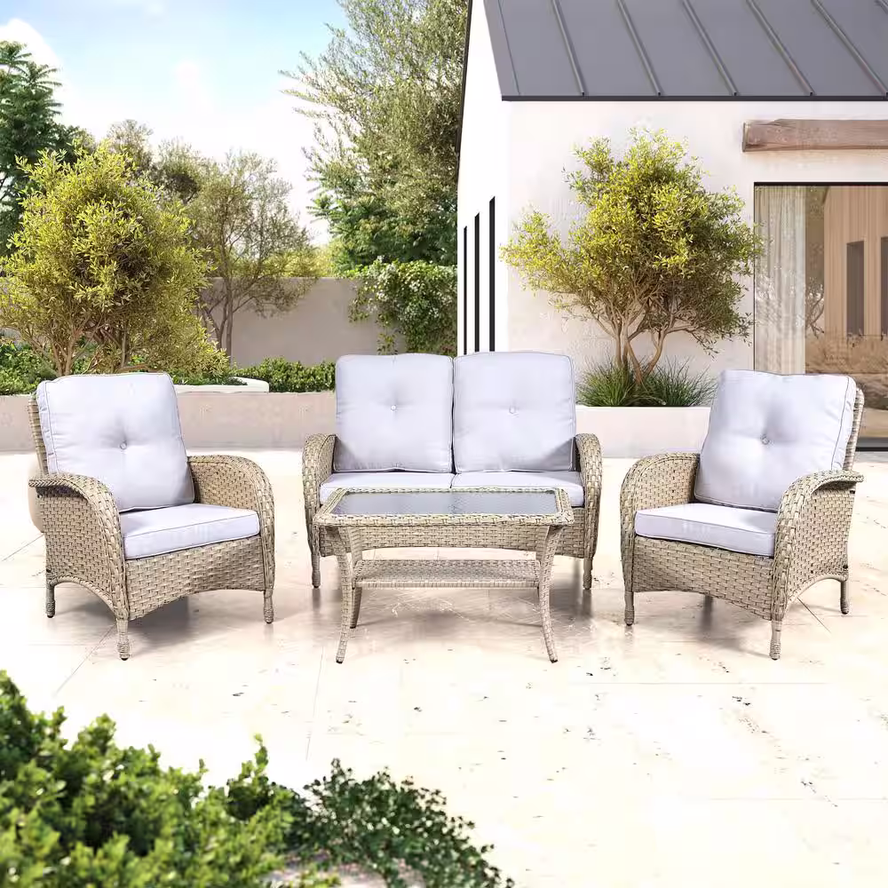 Gymojoy Carlos Natural 4-Piece Wicker Patio Conversation Set with Off White Cushions