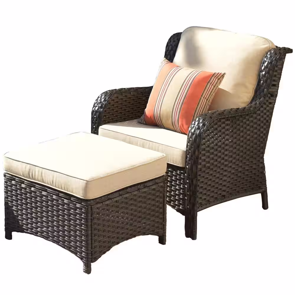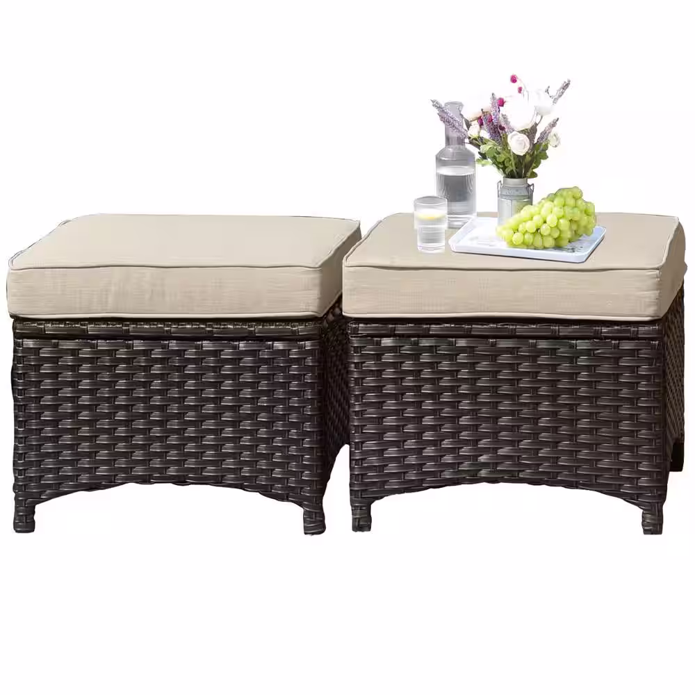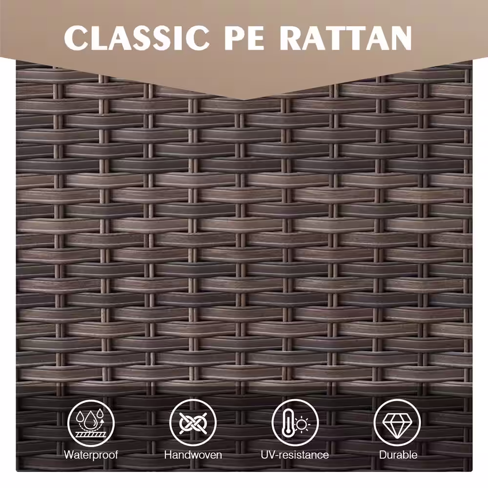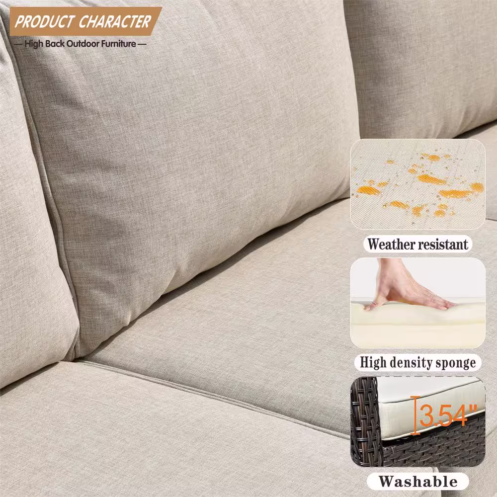 OVIOS Joyoung Brown 3-Piece Wicker outdoor Patio Sectional Conversation Seating Set with Beige Cushions