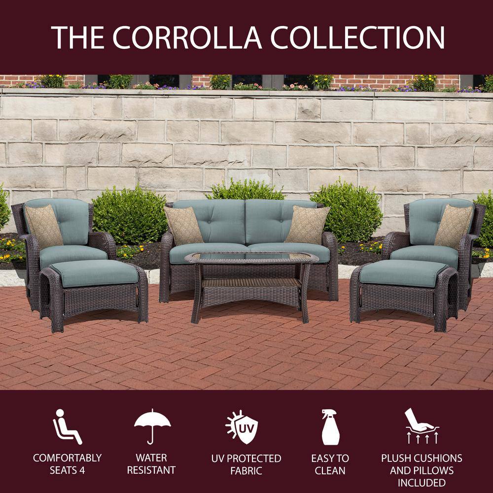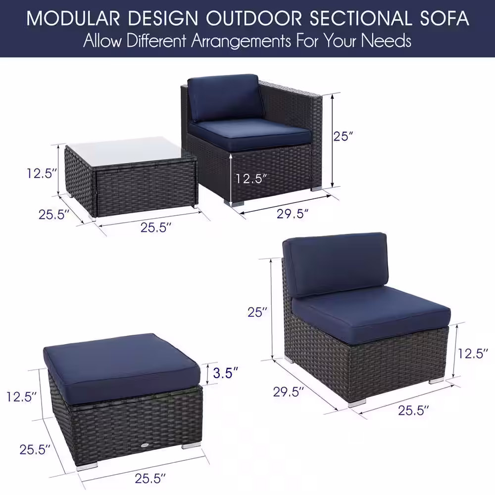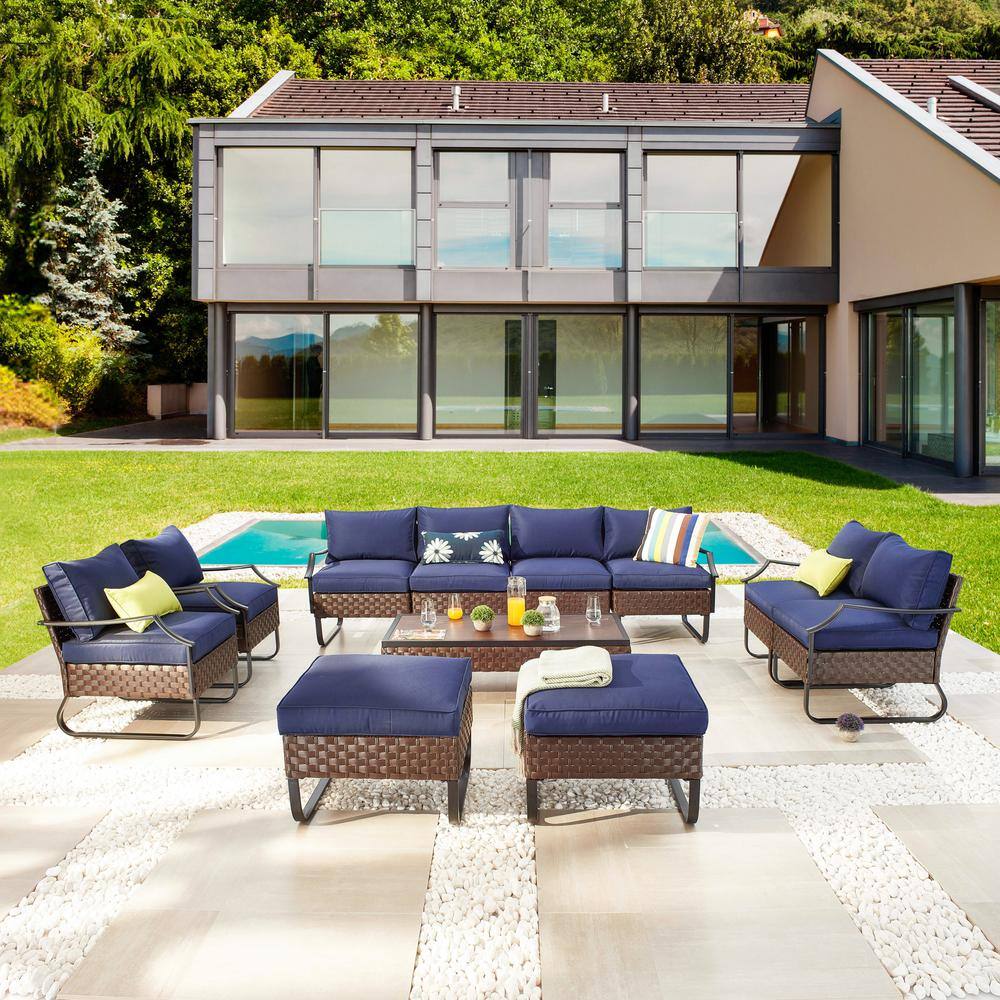 Patio Festival U-Leg 9-Piece Wicker Patio Conversation Set with Blue Cushions