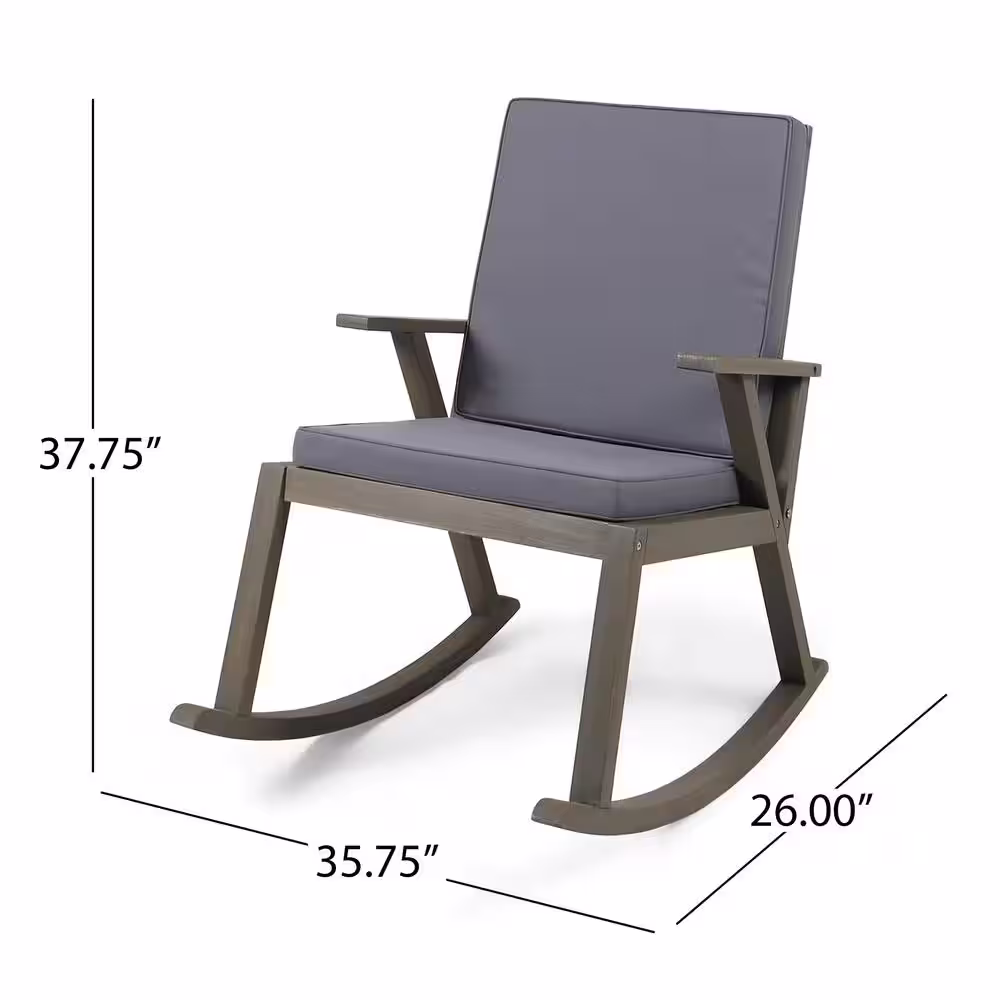 Noble House Champlain Grey 3-Piece Wood Patio Conversation Set with Dark Grey Cushions