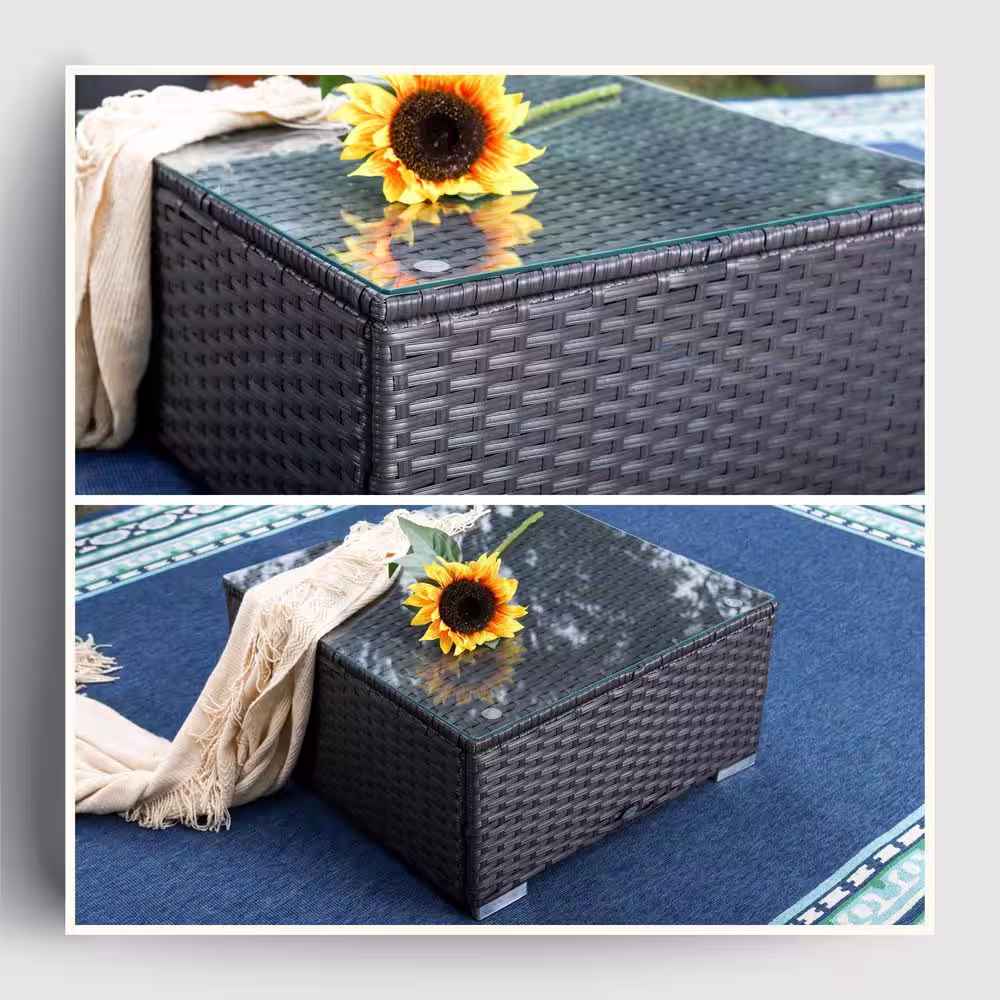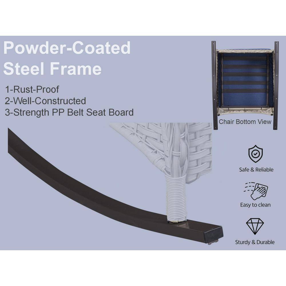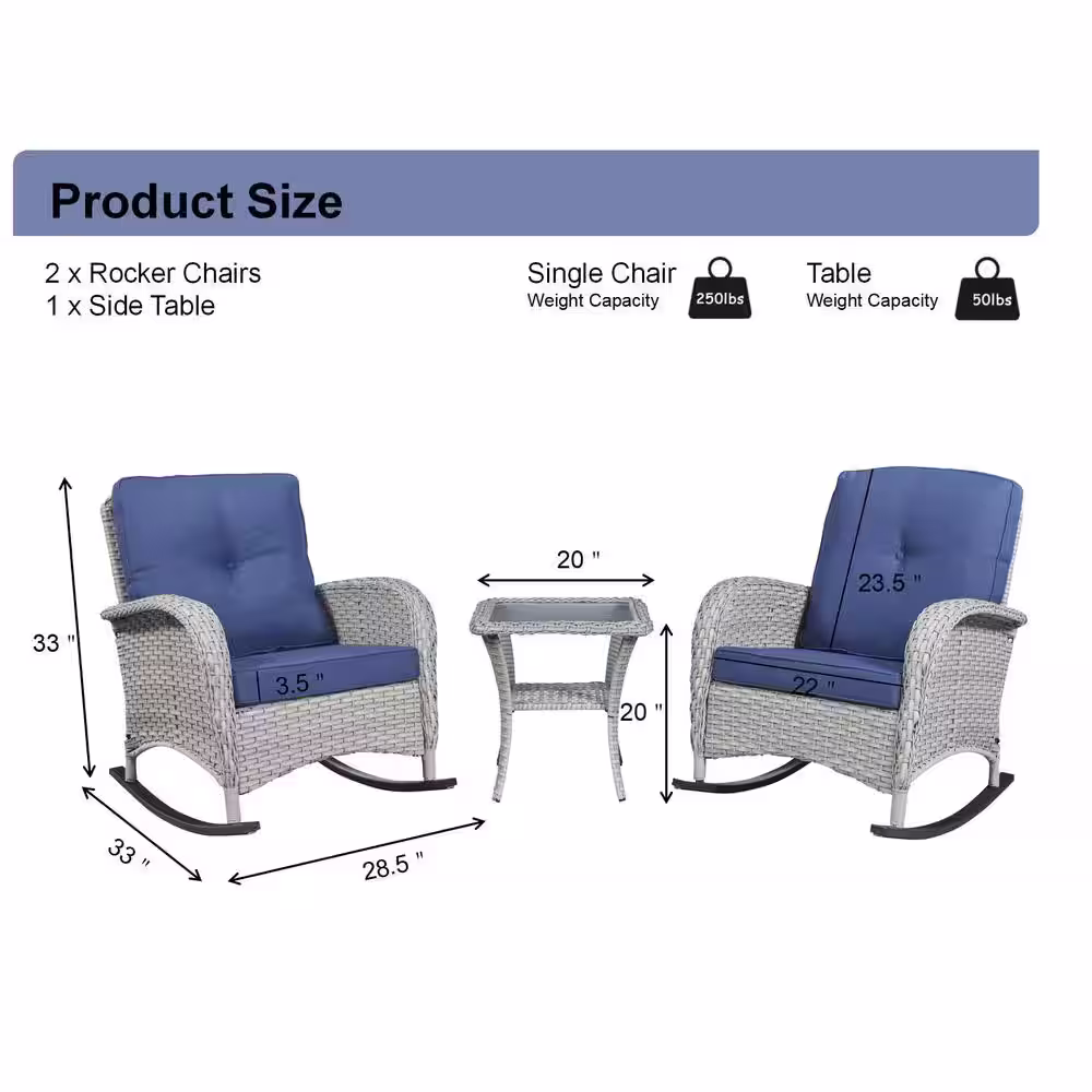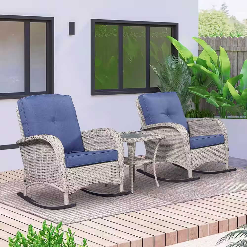 Gymojoy Carlos Grey 3-Piece Wicker Patio Conversation Set with Blue Cushions