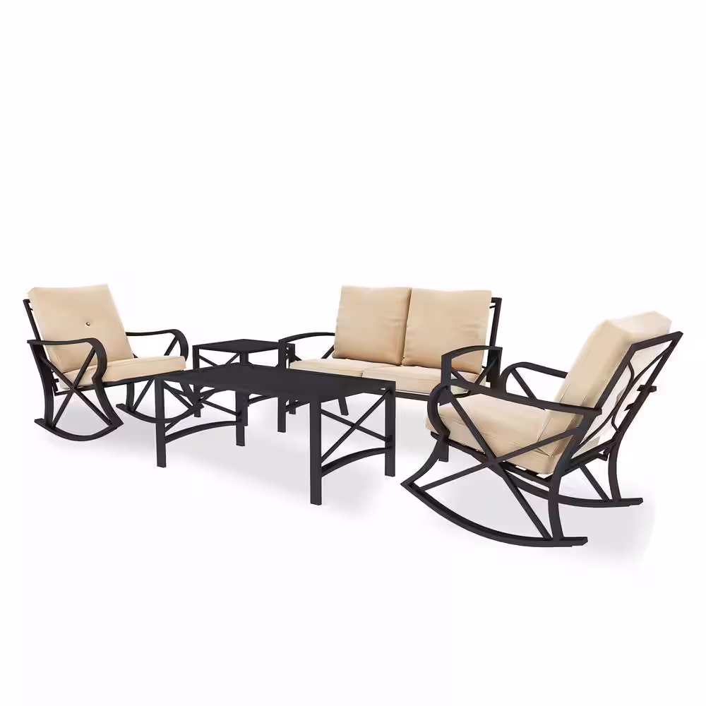 TOP HOME SPACE 5-Piece Metal Patio Conversation Set with Khaki Cushions