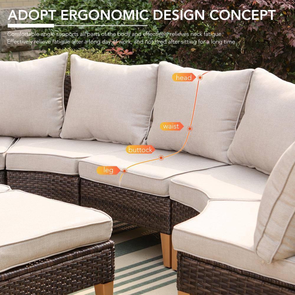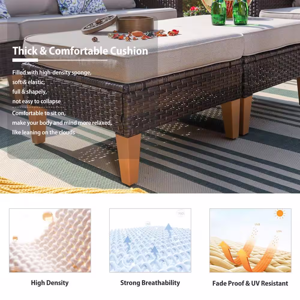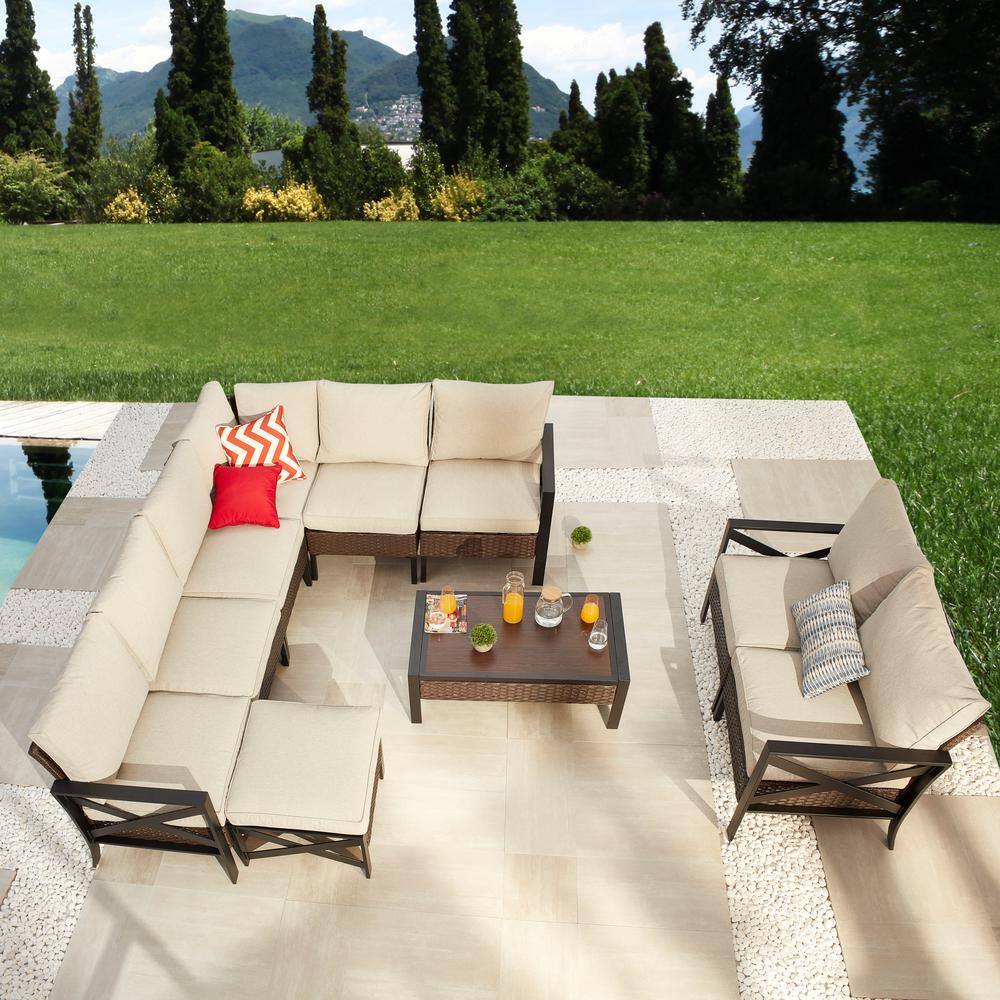 Patio Festival X-Arm 10-Pieces Wicker Conversation Set with Beige Cushions