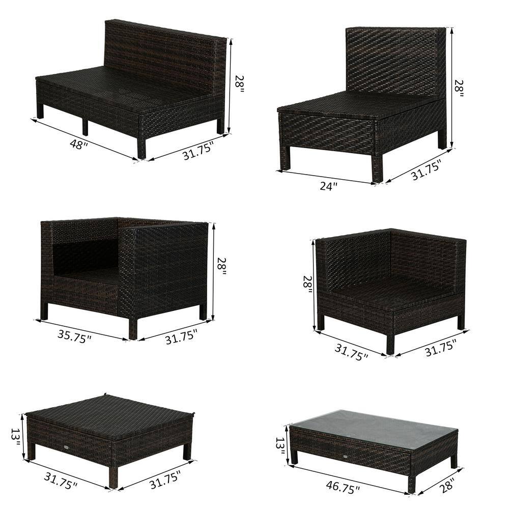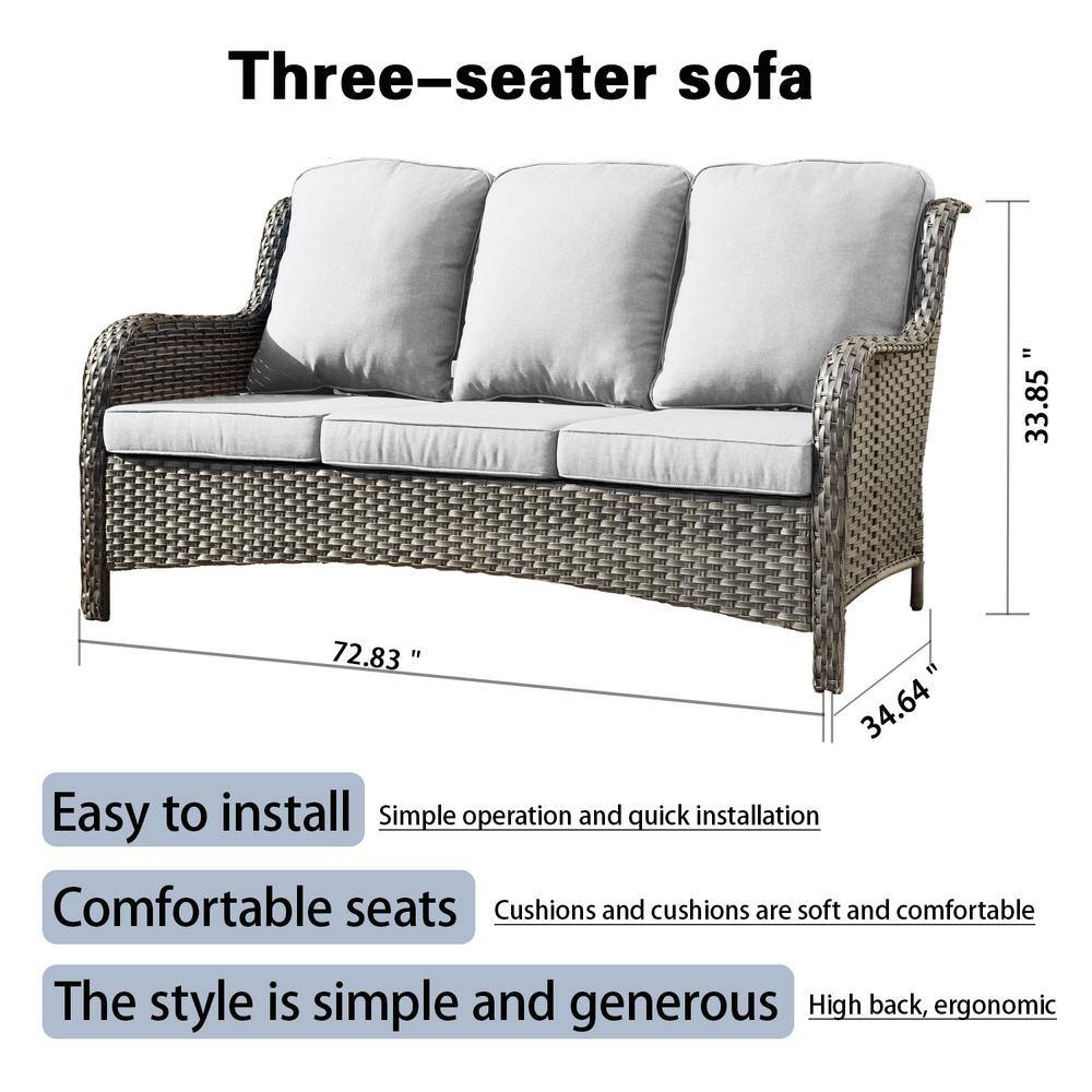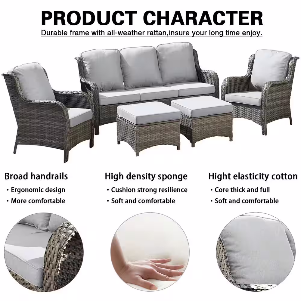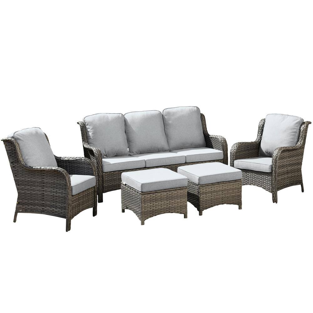 Clihome 6-piece Wicker Patio Conversation Set All-Weather PE rattan Outdoor Sectional Set with Gray Cushions