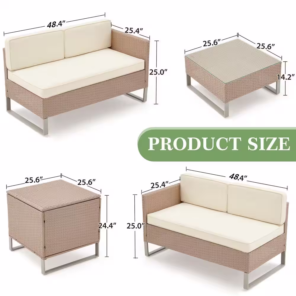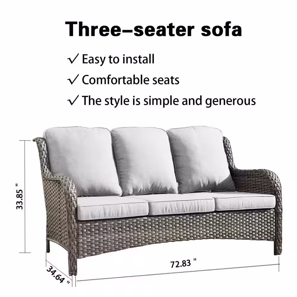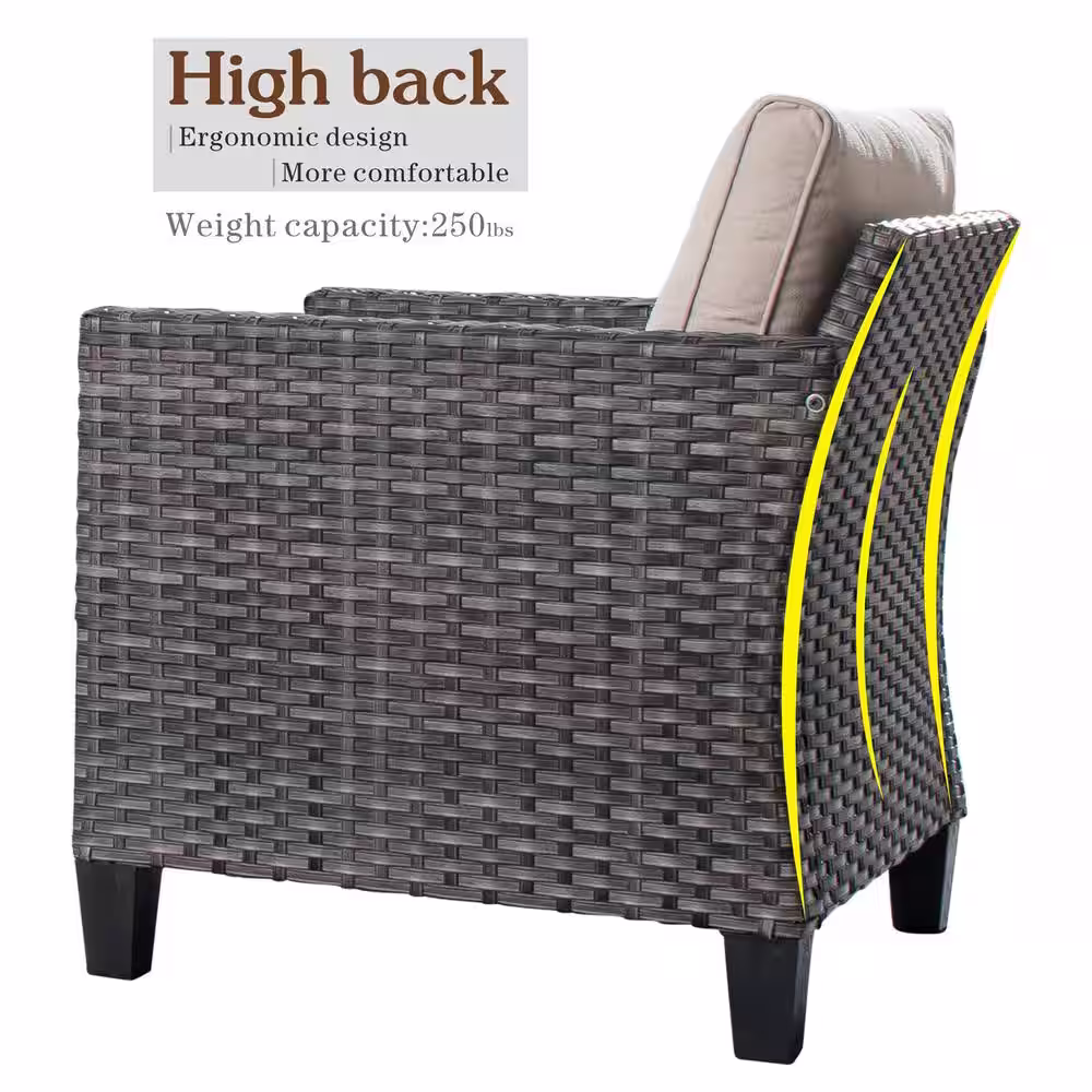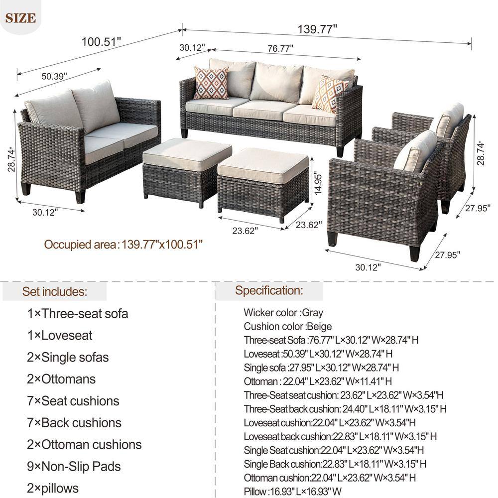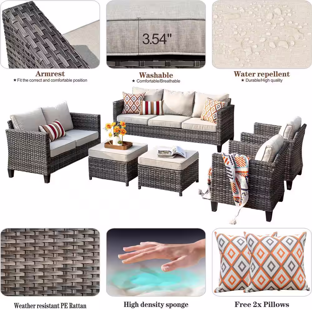 XIZZI Venus Gray 6-Piece Wicker Outdoor Patio Conversation Seating Set with Beige Cushions