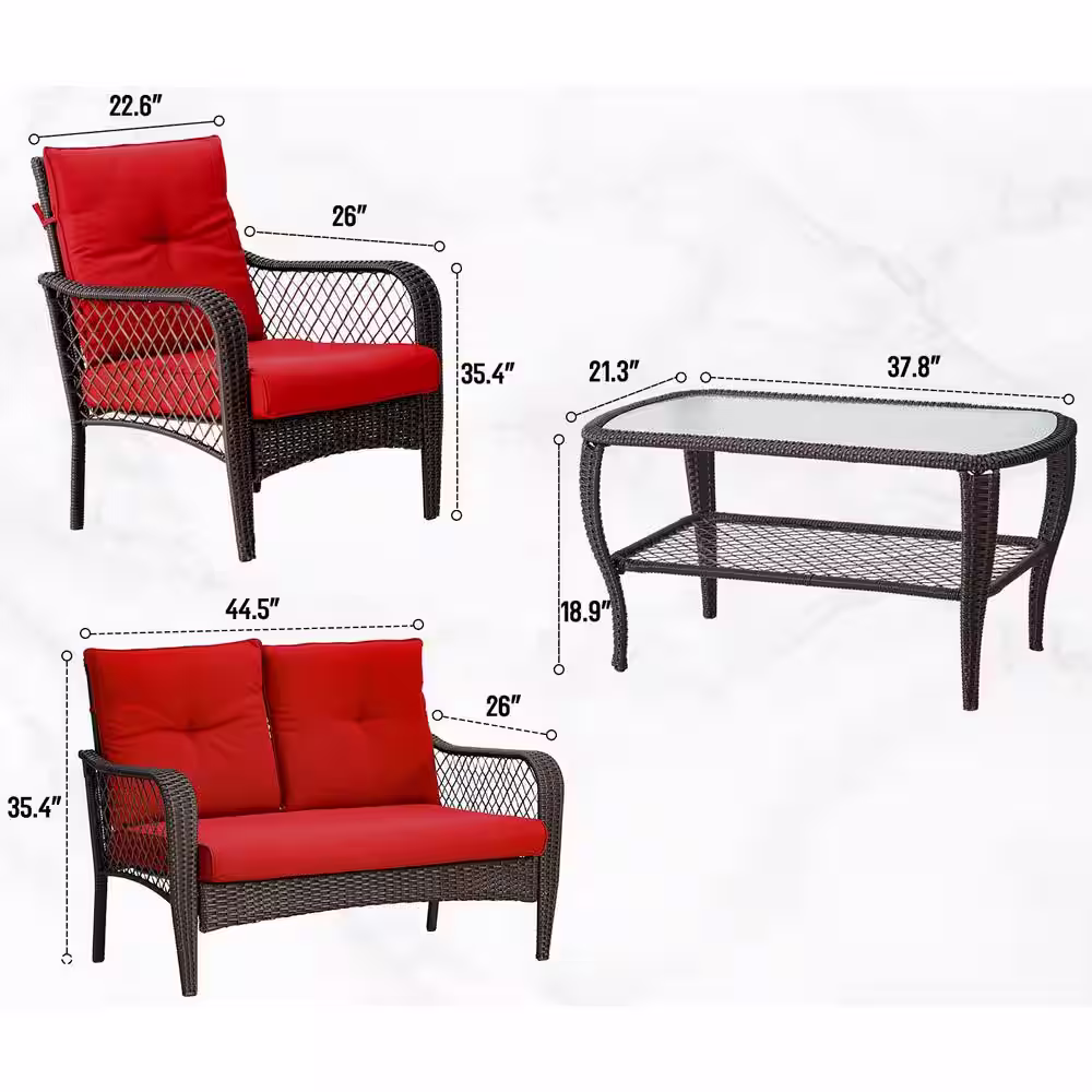 None Black 6-Pieces Metal Patio Conversation Sectional Seating Set with CushionGuard Red Cushions