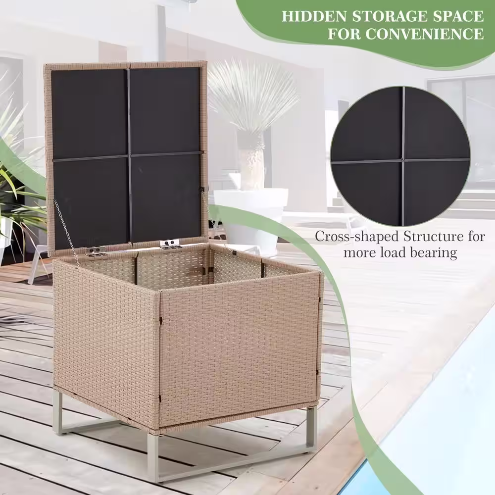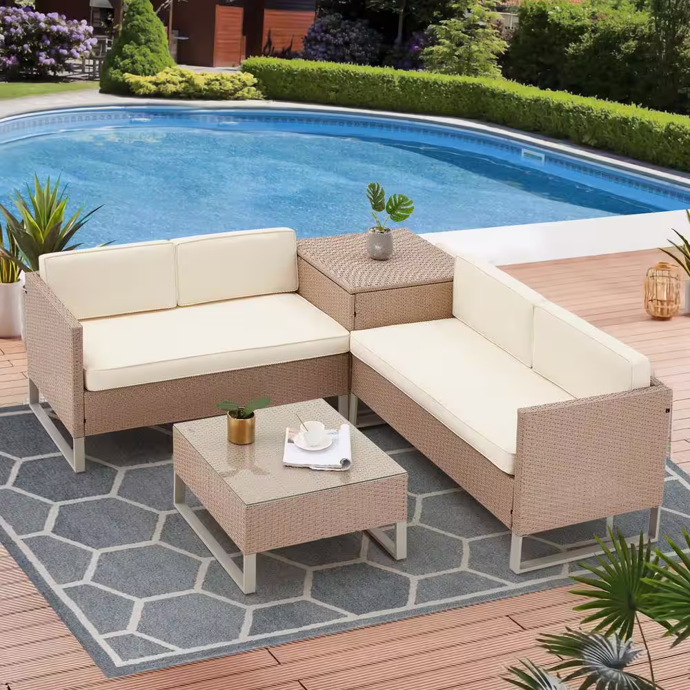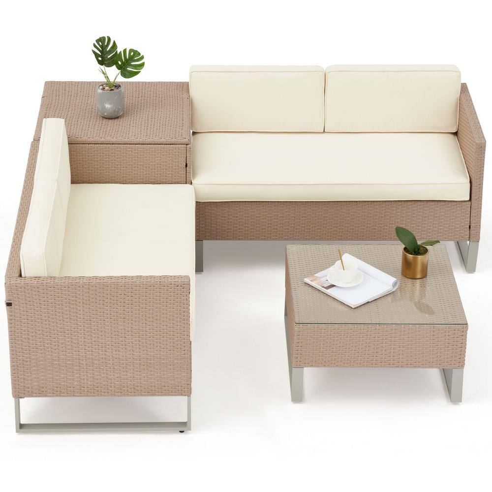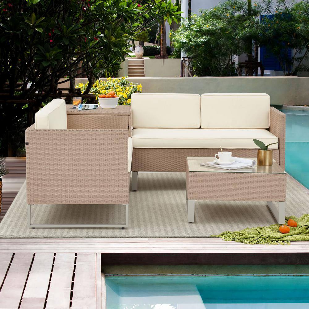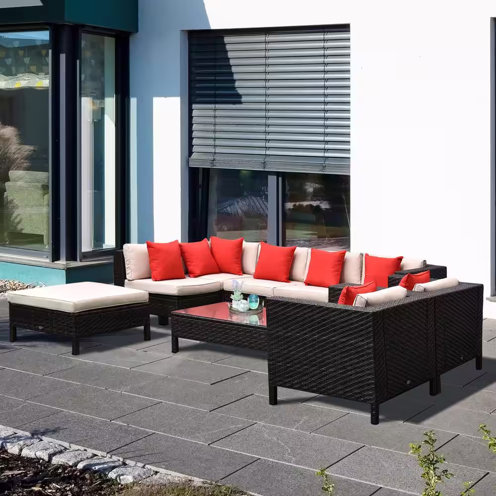 Outsunny 9-Piece Aluminum Plastic Rattan Patio Conversation Set with Beige Cushions