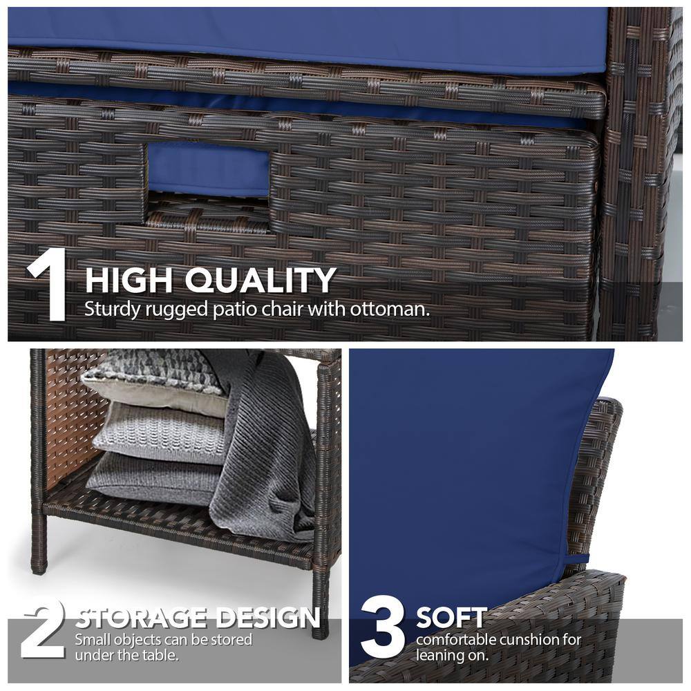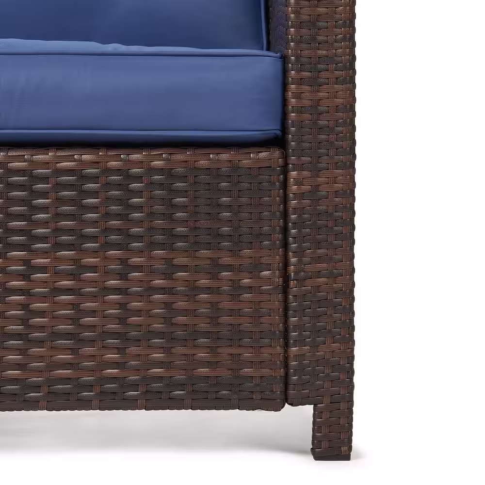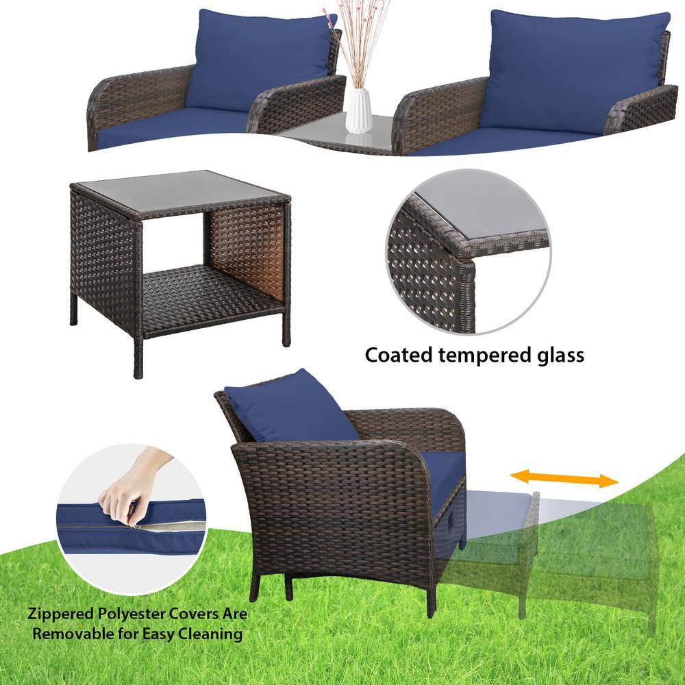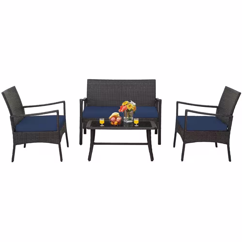 Costway 4-Piece Wicker Patio Conversation Set Rattan Furniture Sofa Armrest Coffee Table with Navy Cushions