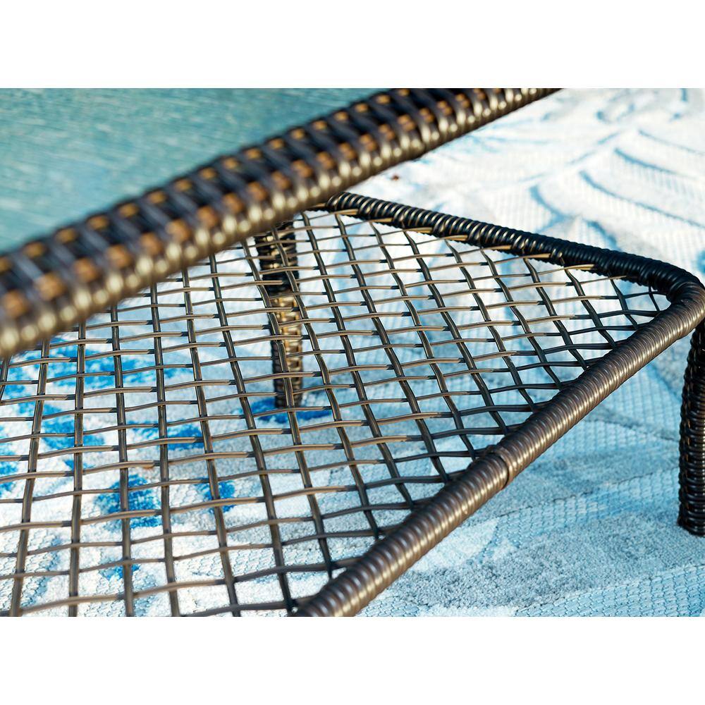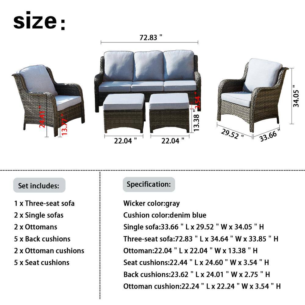 None 6-Piece Wicker Patio Conversation Set with Blue Cushions and Ottomans