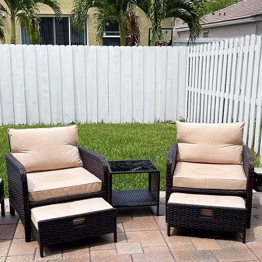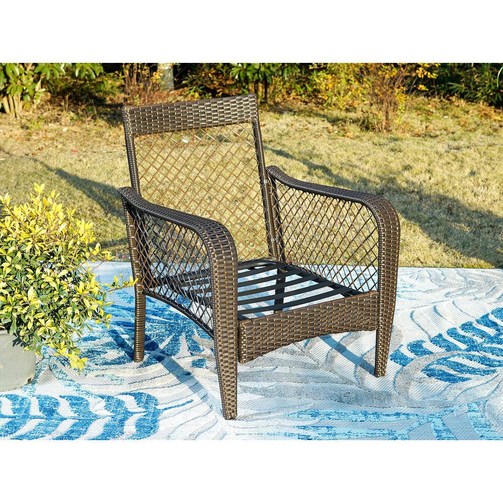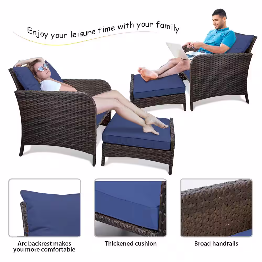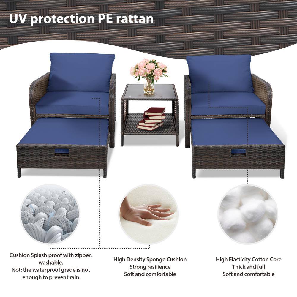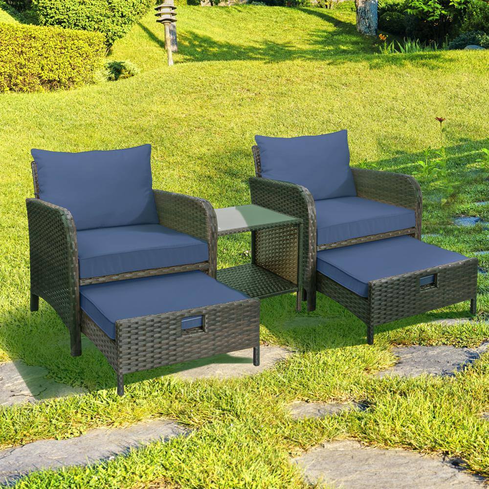 None Balcony Furniture 5-Piece PE Wicker Patio Conversation Outdoor Set with Lounge Chairs and Blue Soft Cushions