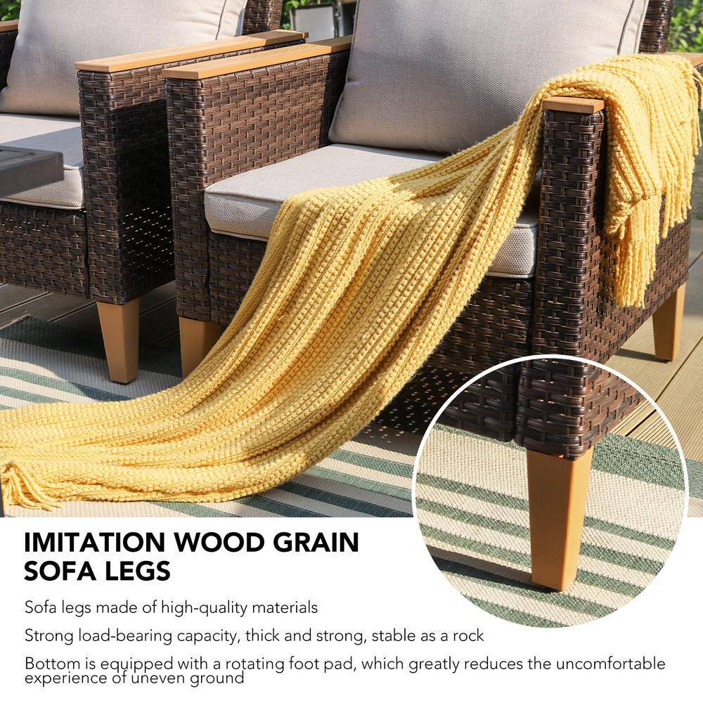 XIZZI Adelina Gray 5-Piece Wicker Outdoor Patio Conversation Seating Set with Gray Cushions