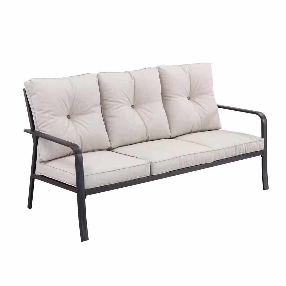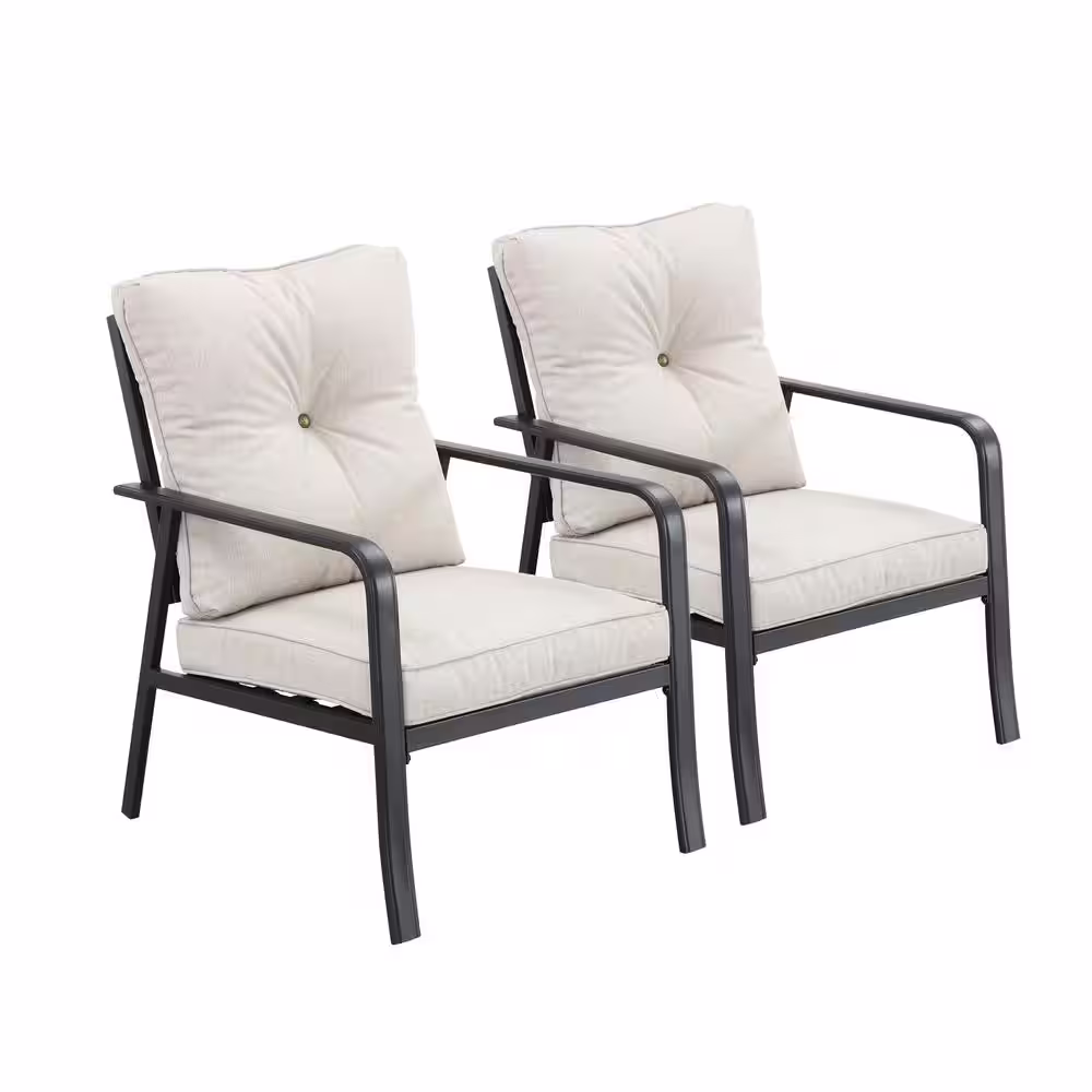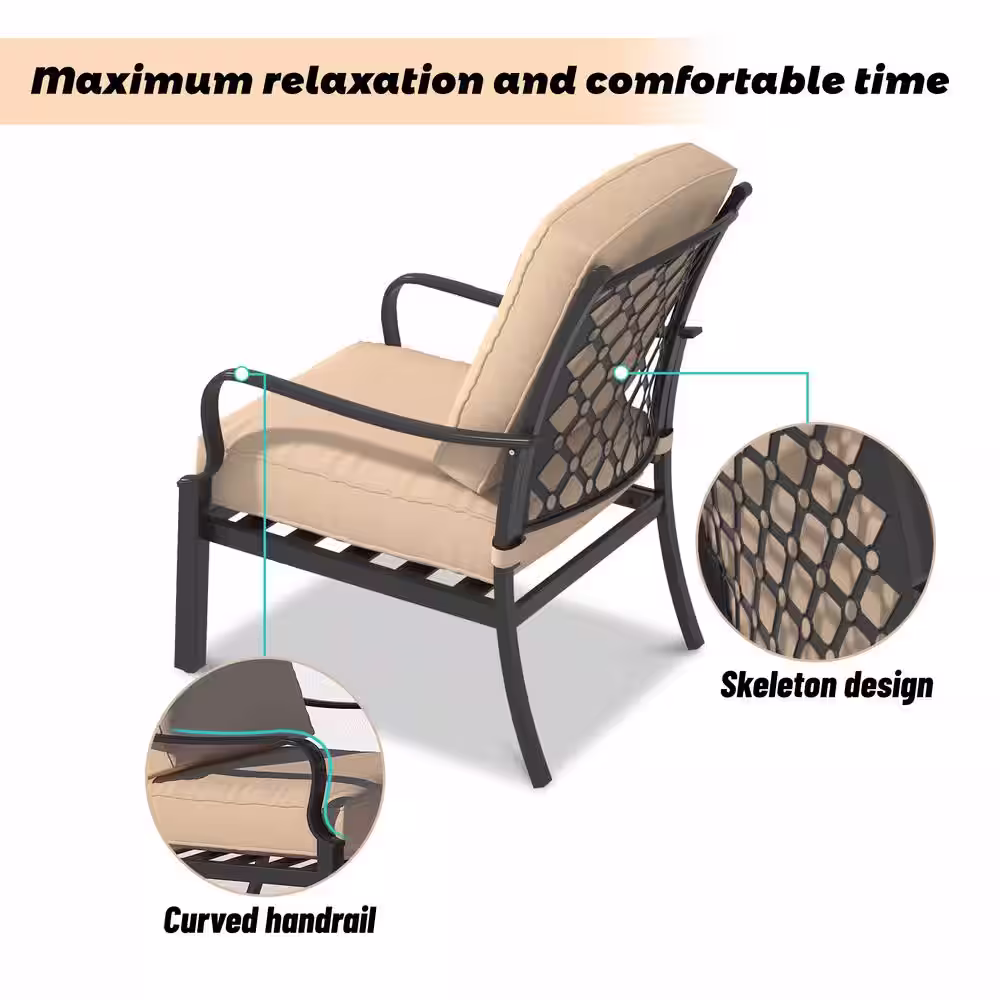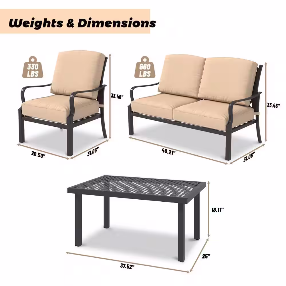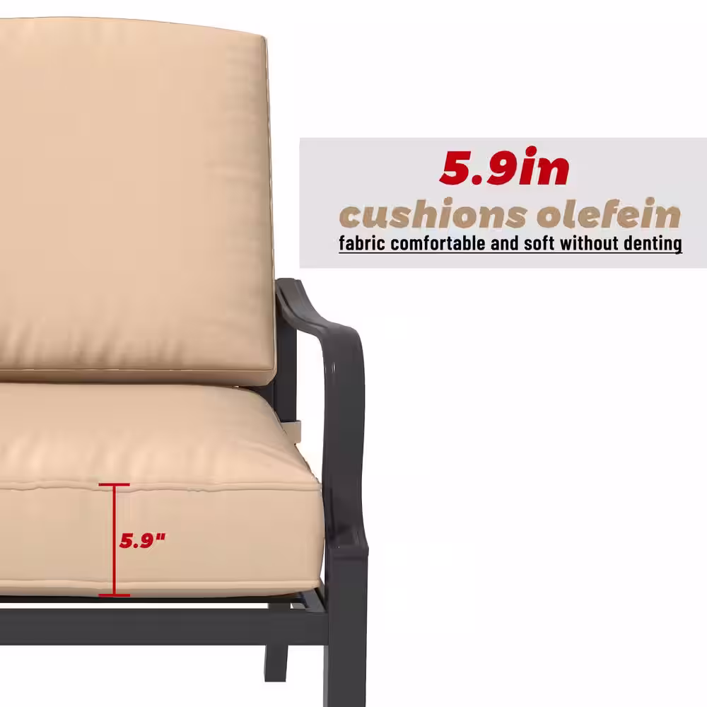 CASAINC 4-Piece Metal Patio Conversation Deep Seating Set with 5.9 inch Olefein Beige Cushions