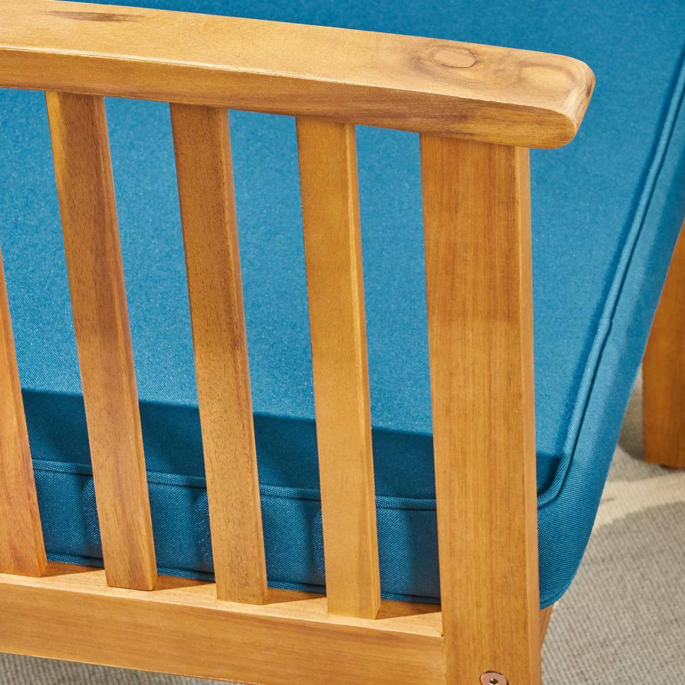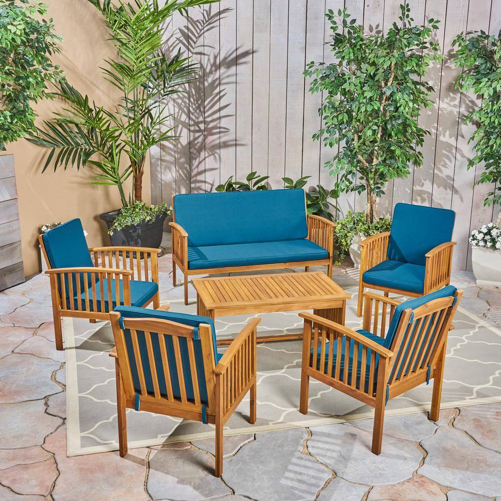 Noble House Carolina Brown Patina 6-Piece Wood Patio Conversation Set with Dark Teal Cushions