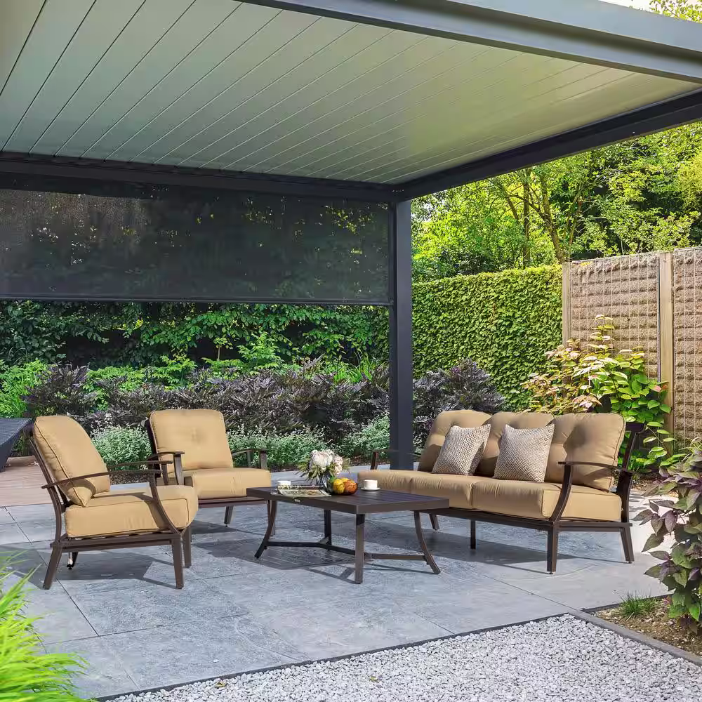 Nuu Garden 4-Pieces Aluminum Patio Conversation Set Sofa Set with Yellow Cushions