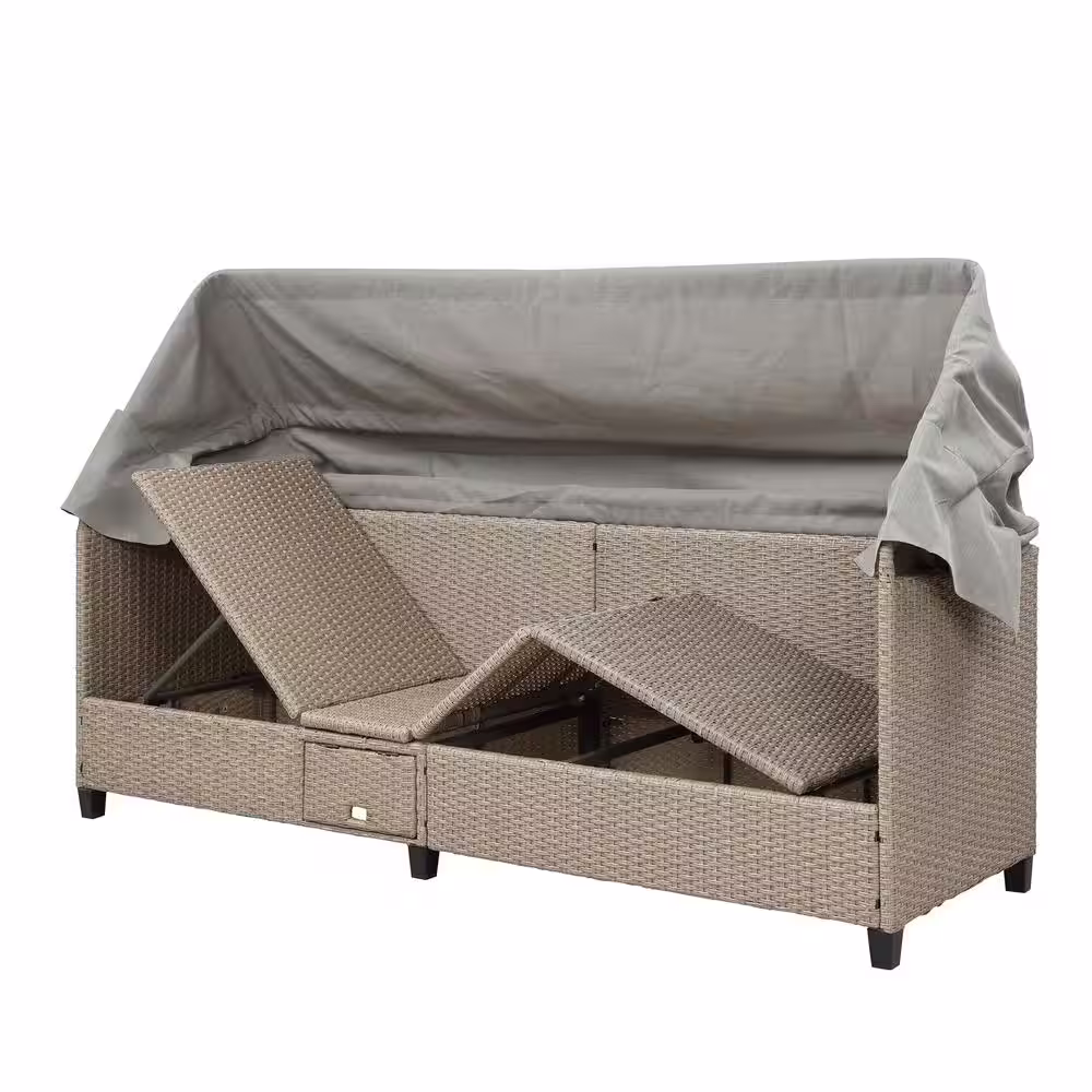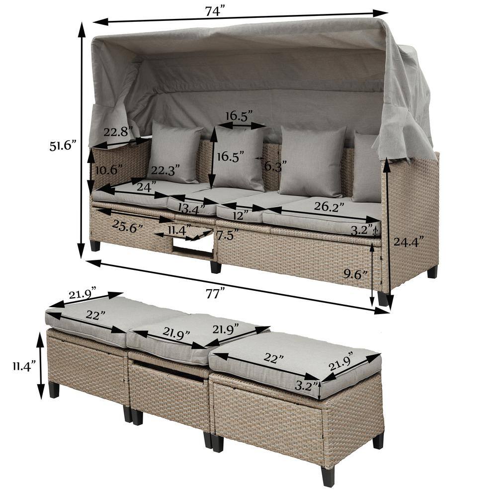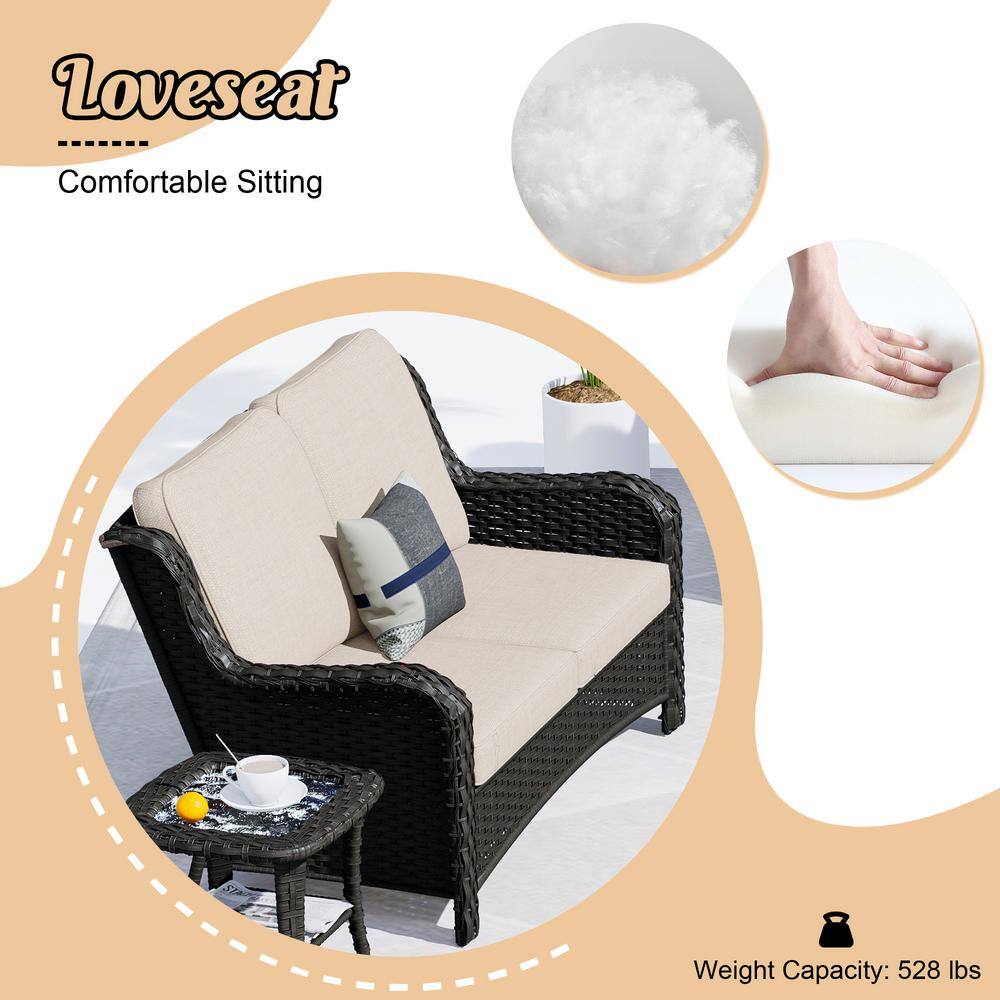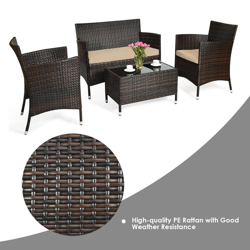 Gymax 4-Pieces Rattan Patio Outdoor Furniture Set with Beige Cushioned Chair Loveseat Table