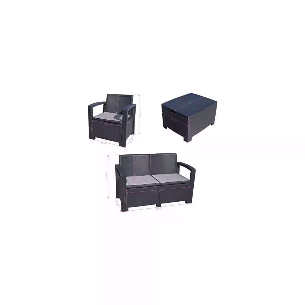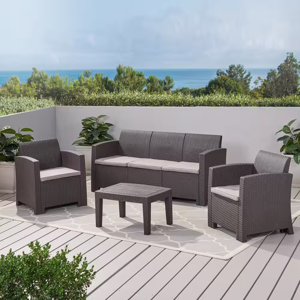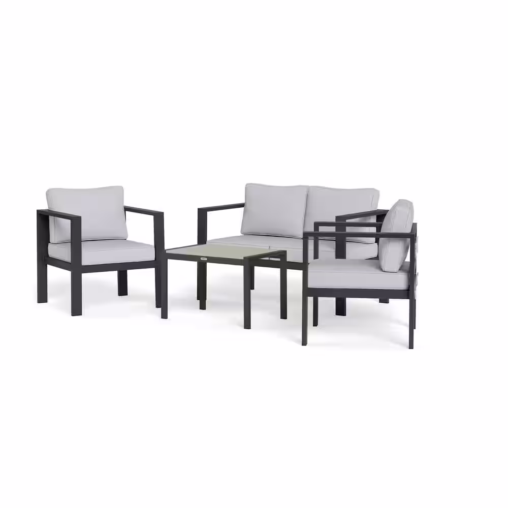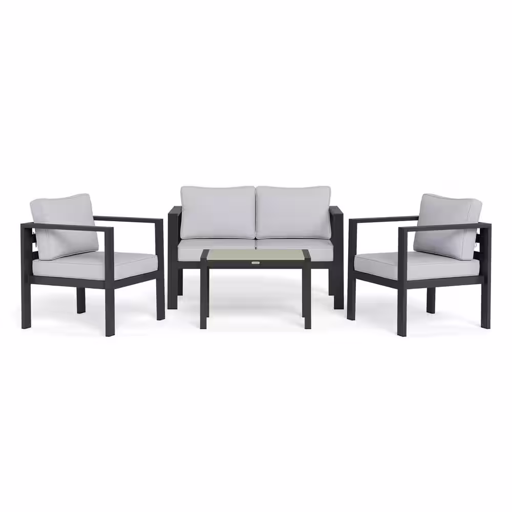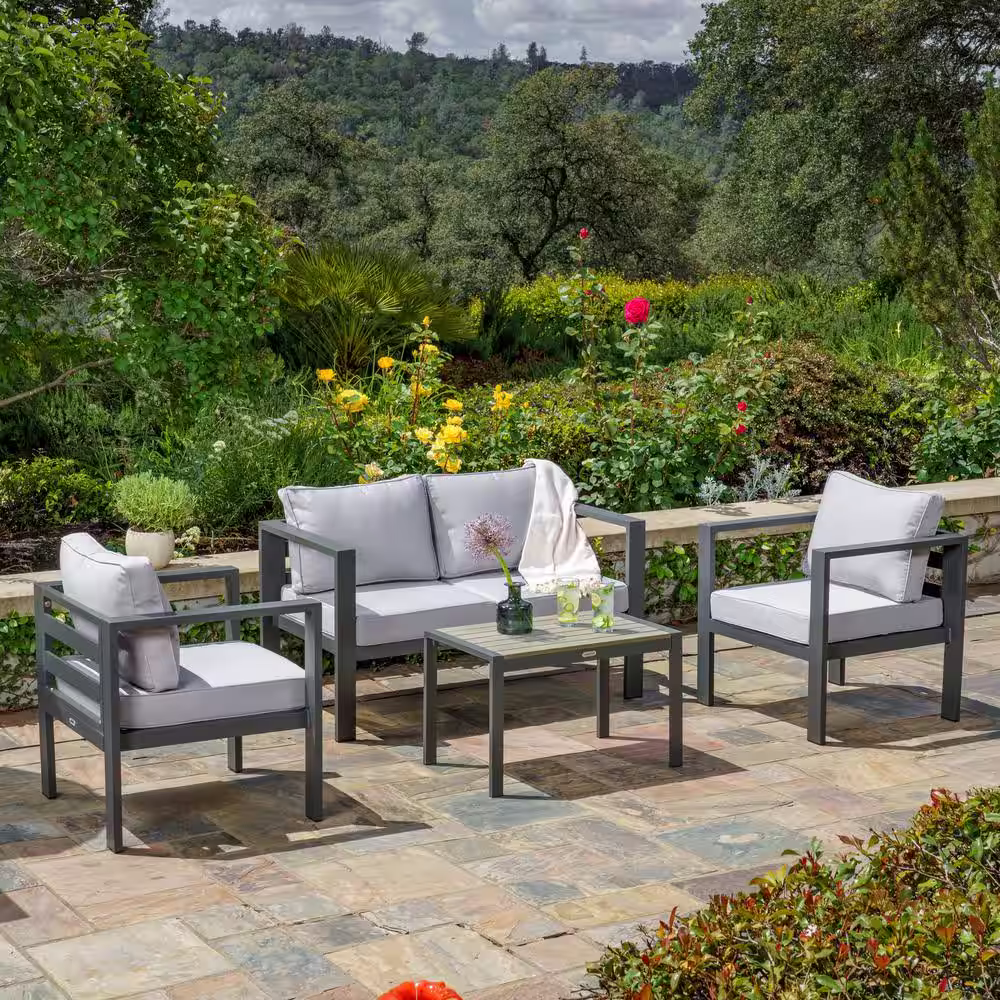 KOZYARD New York 4-Piece All-Weather Outdoor Patio Conversation Set Garden Furniture with Gray Cushions