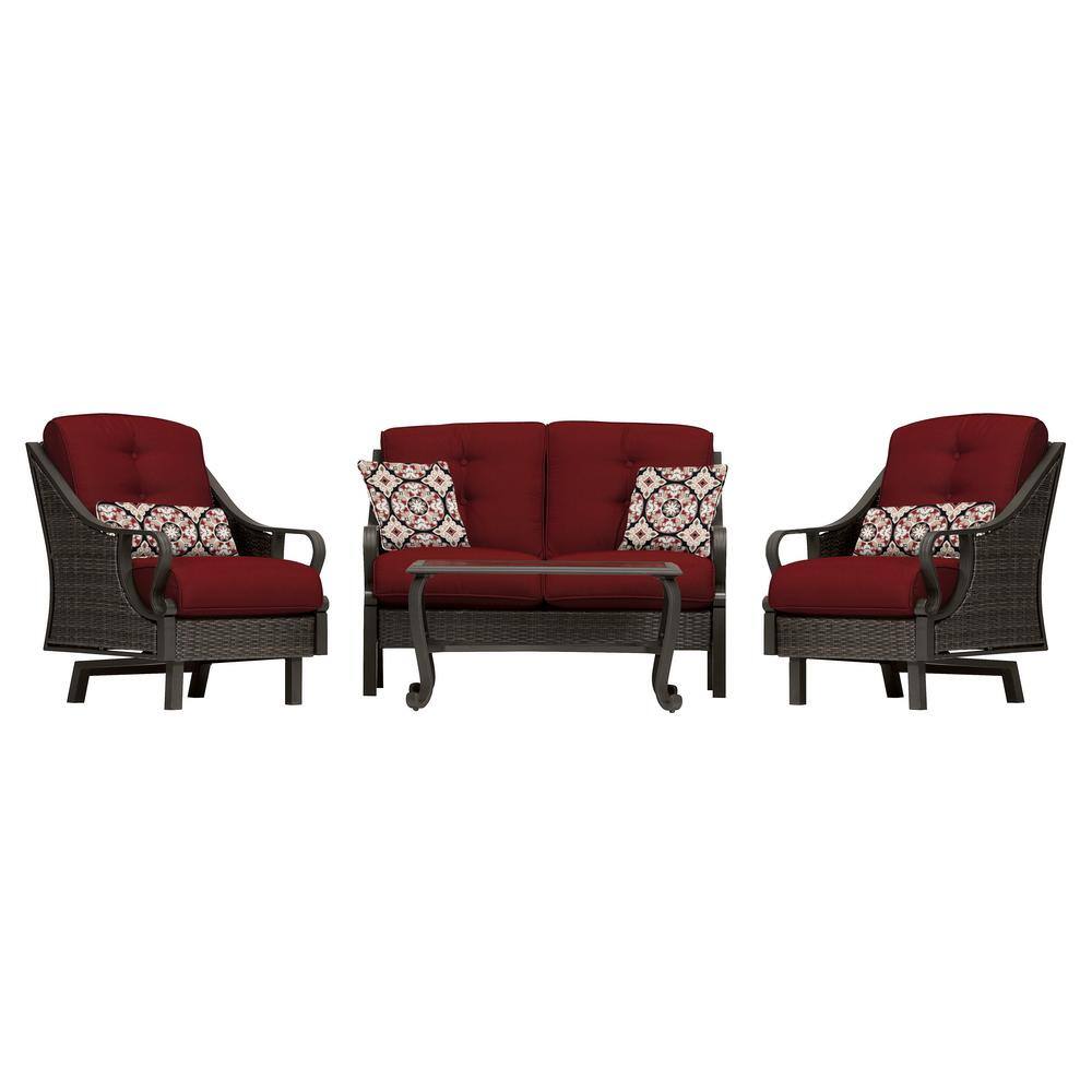 Cambridge Saratoga 4-Piece Patio Set Steel Frame Wicker with Cushions in Crimson Red