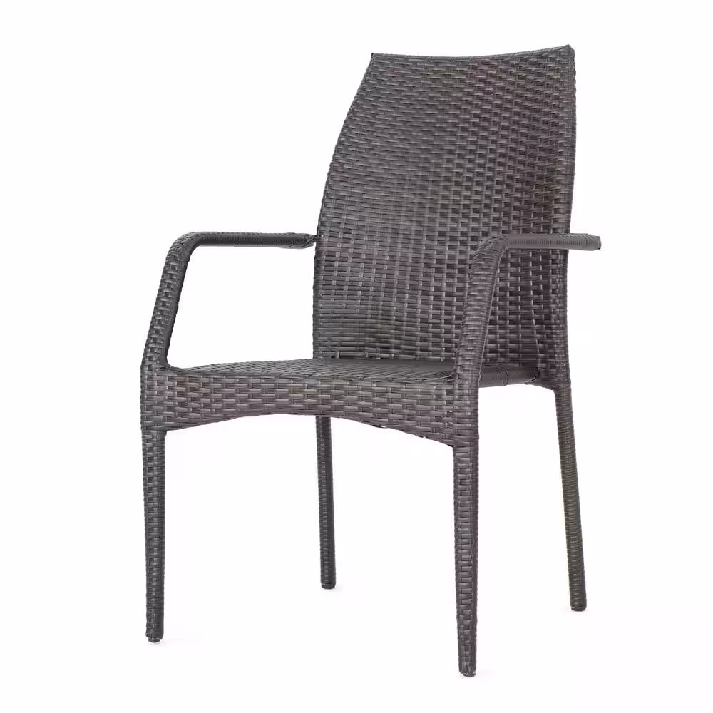 Noble House Crawford Multi-Brown 3-Piece Faux Rattan Patio Conversation Set