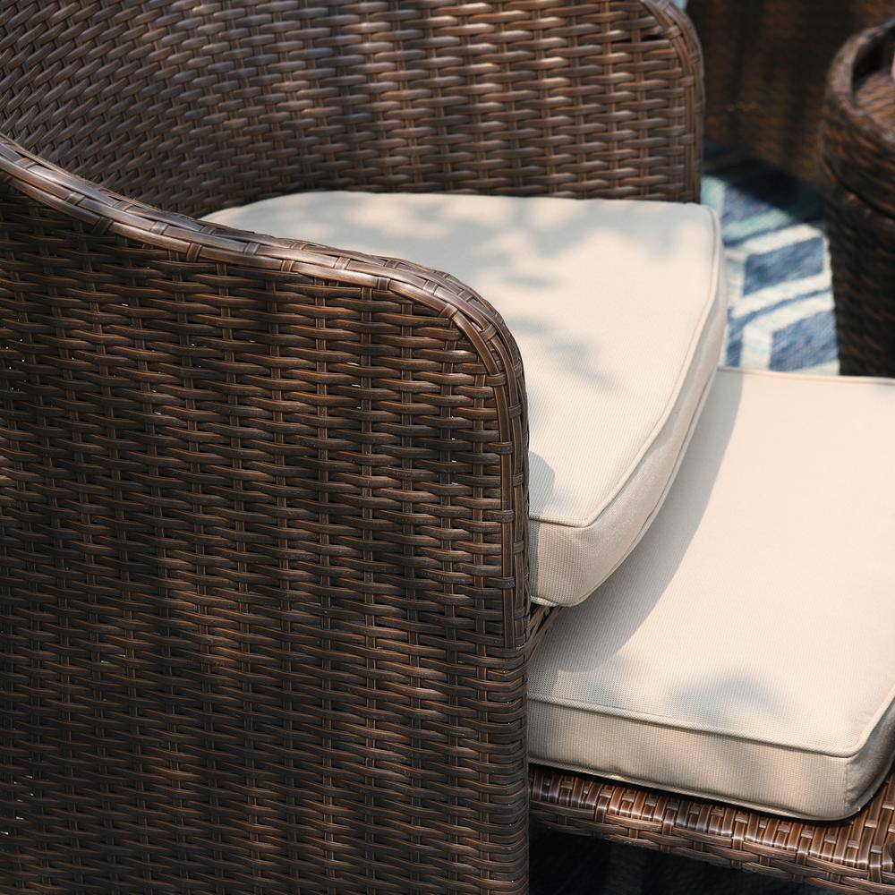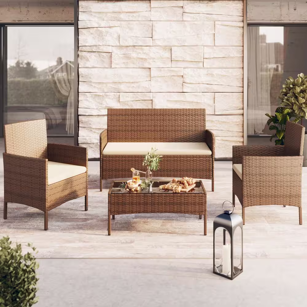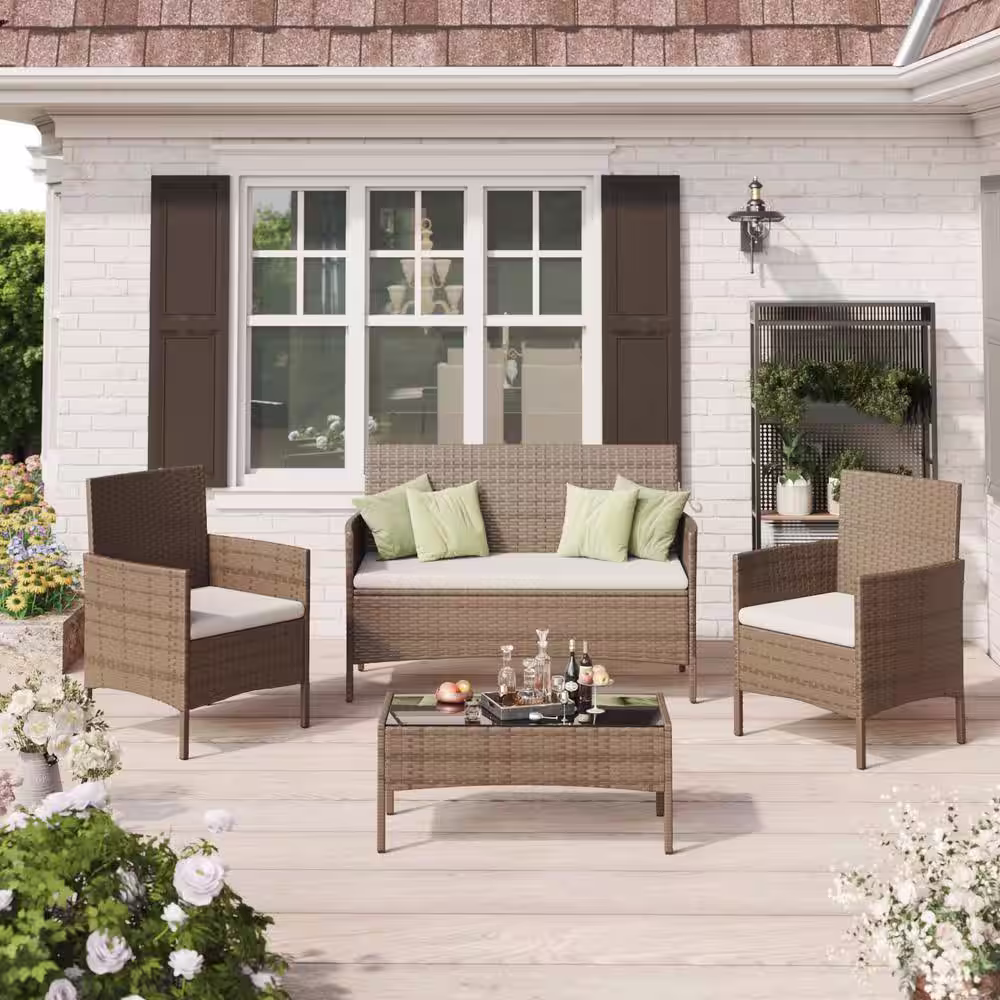Tozey 4-Pieces Brown Wicker Patio Furniture Sets Patio Conversation Sets with Beige Cushion