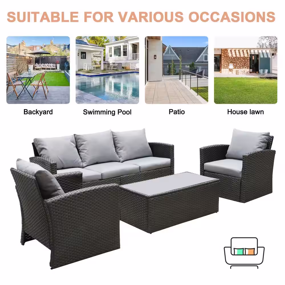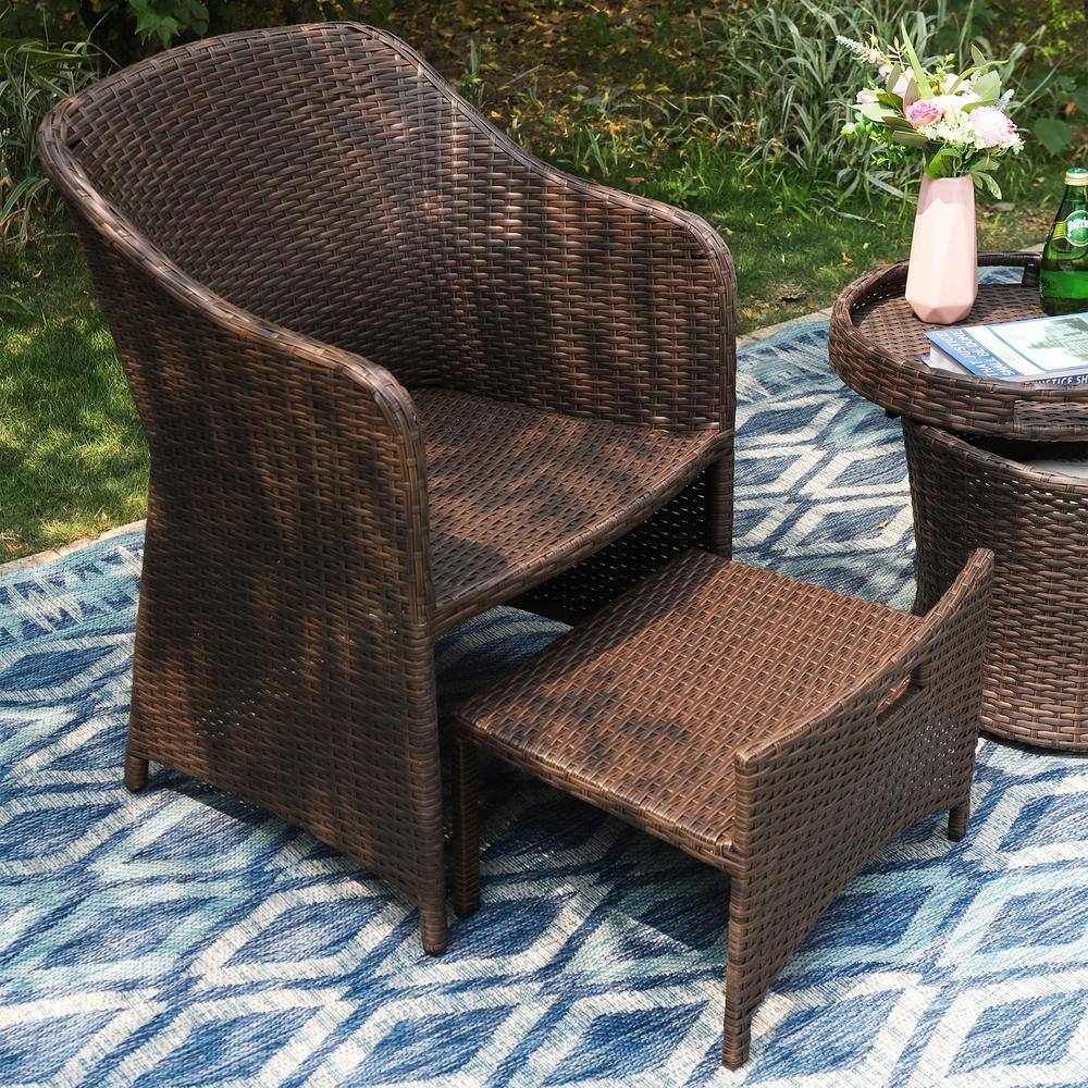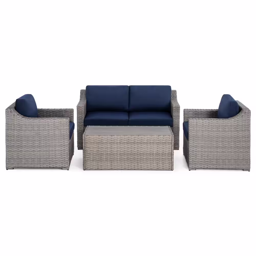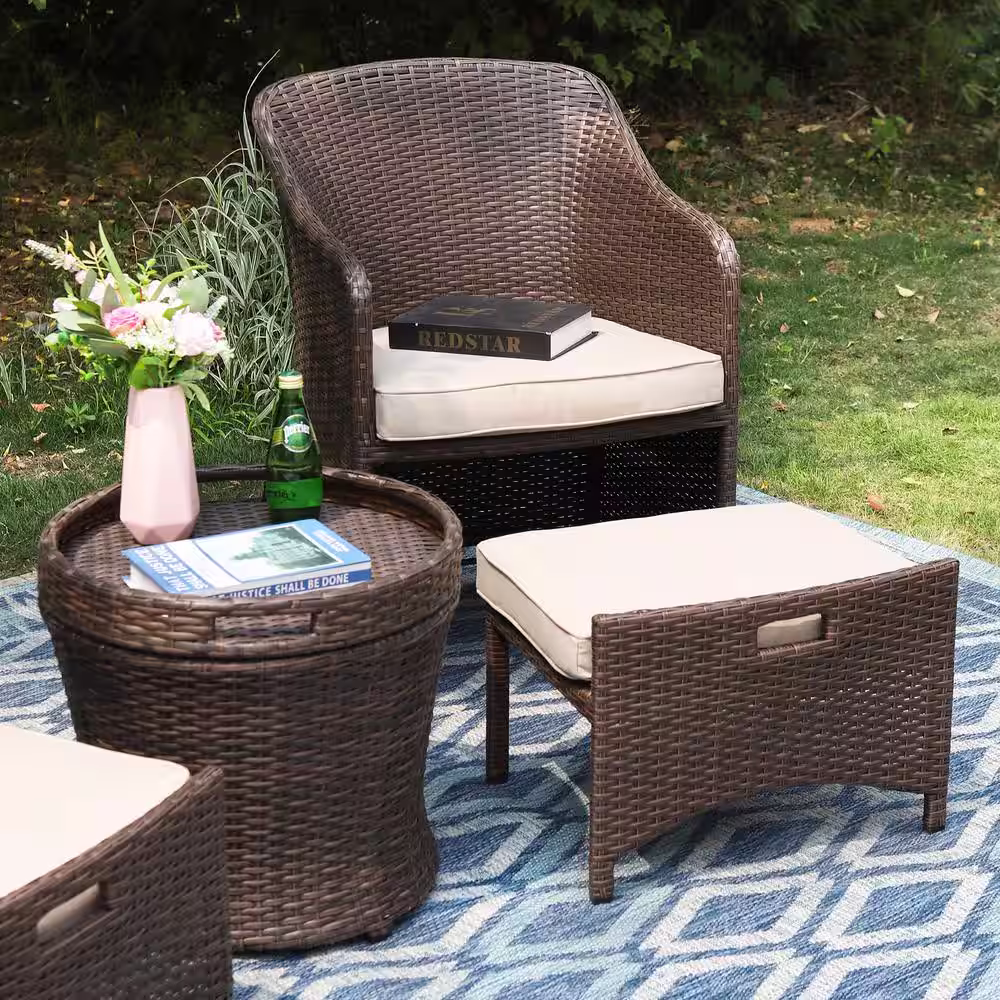 Tozey 4-Pieces Brown Wicker Patio Furniture Sets Patio Conversation Sets with Beige Cushion