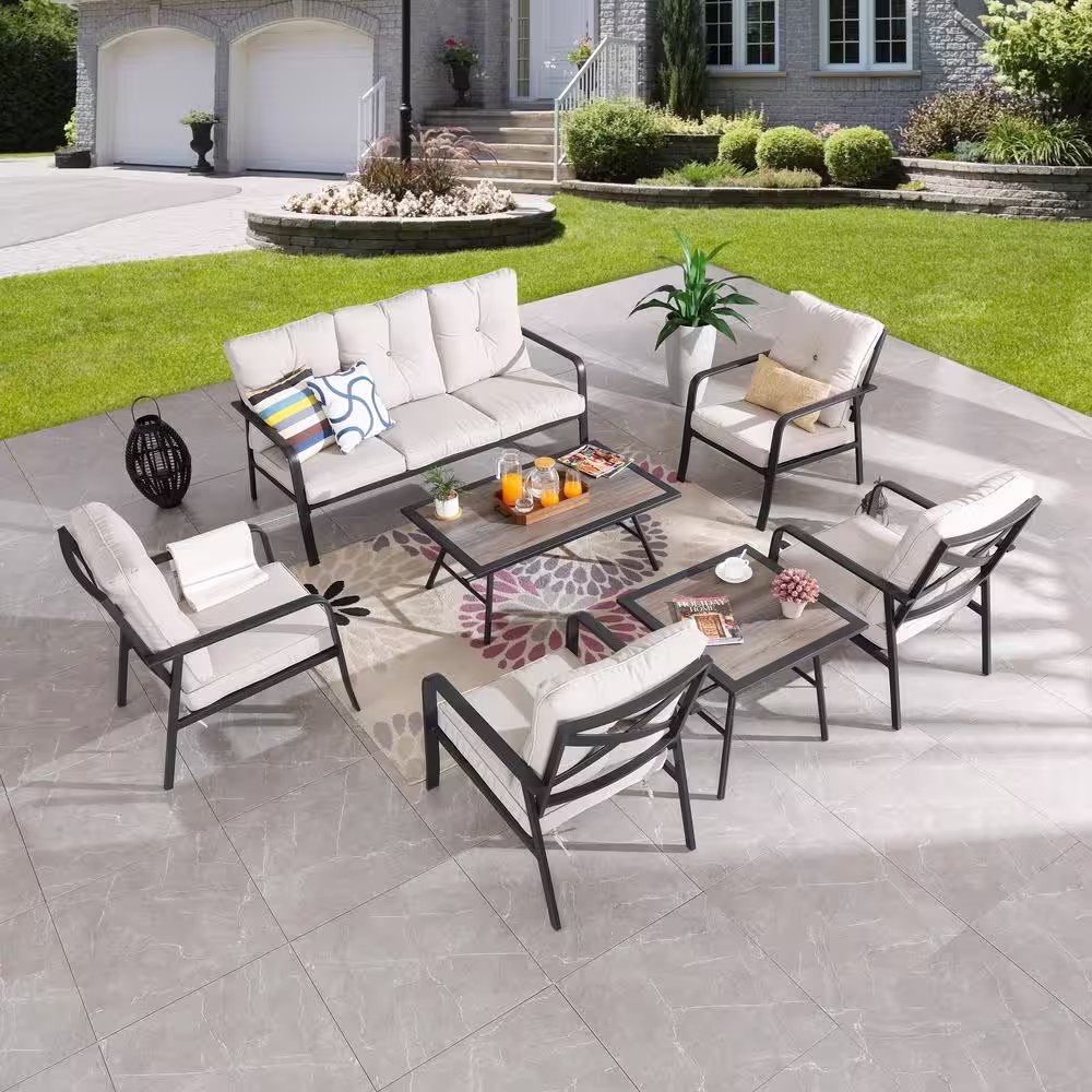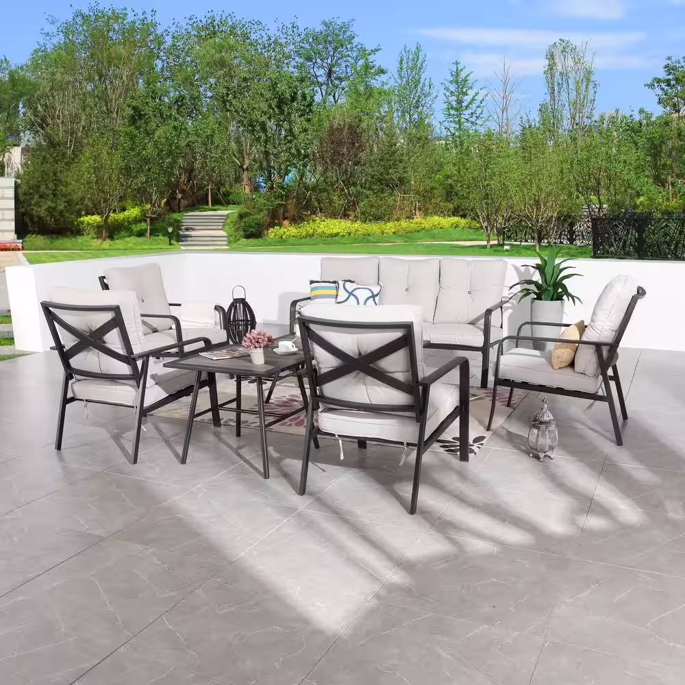 Patio Festival 7-Piece Metal Outdoor Patio Conversation Set with Beige Cushions
