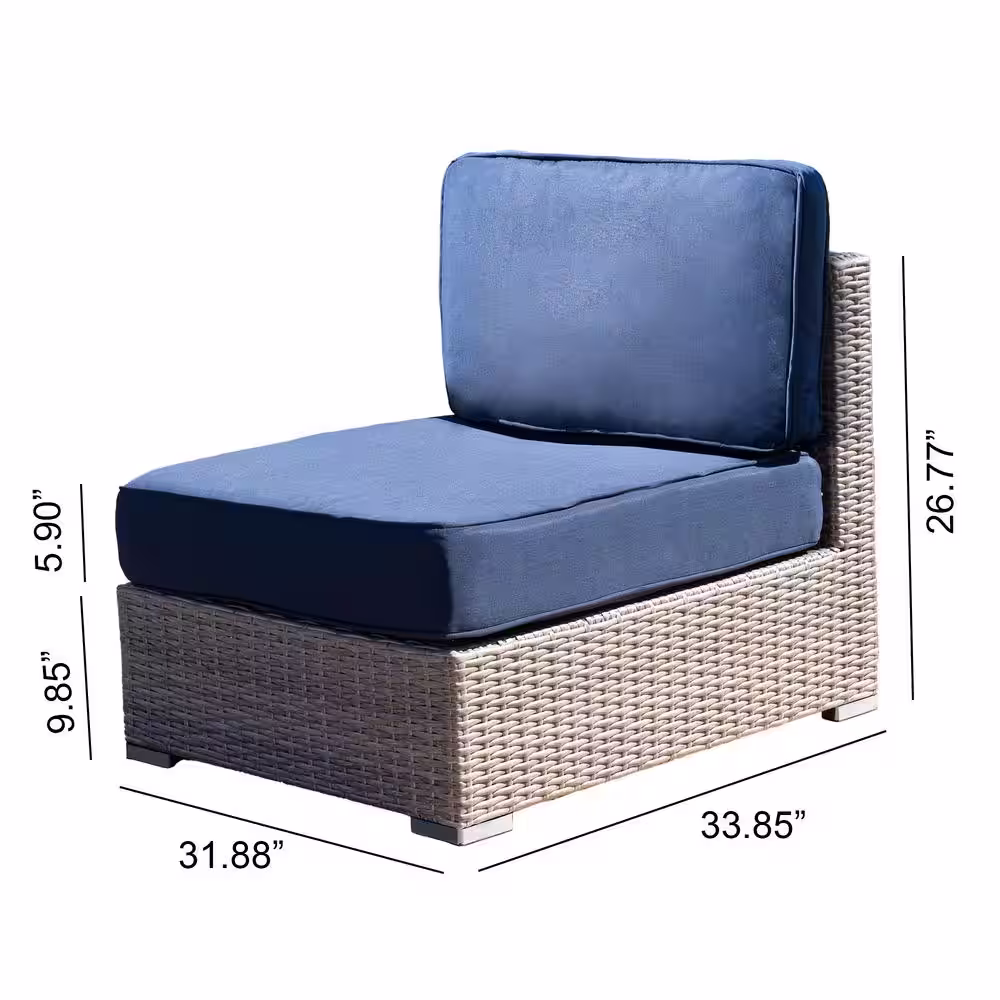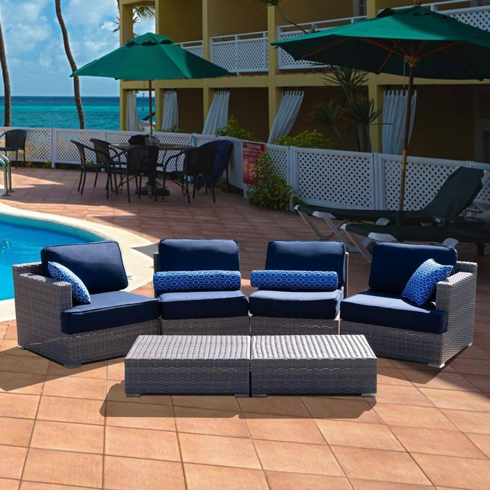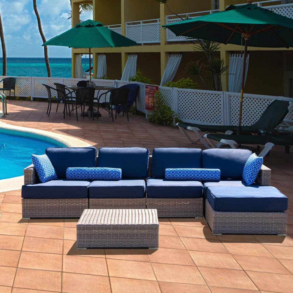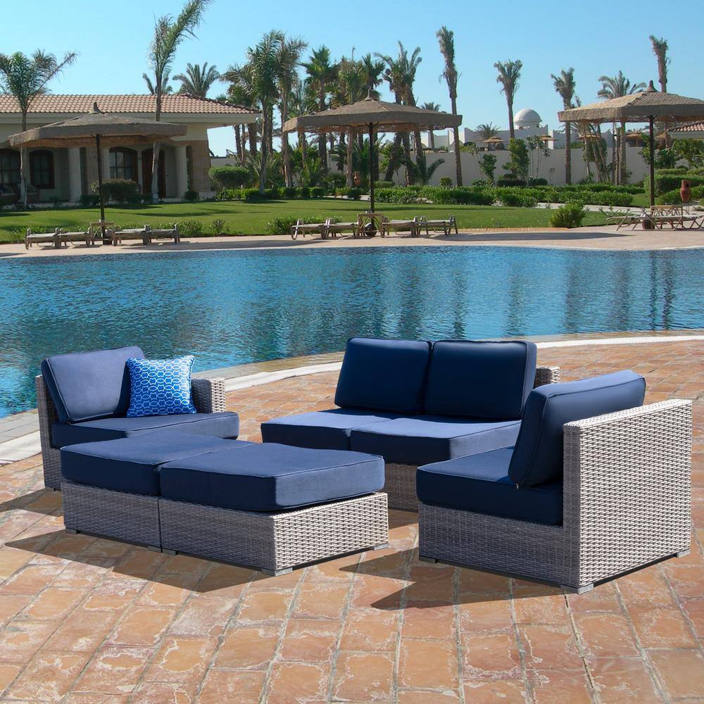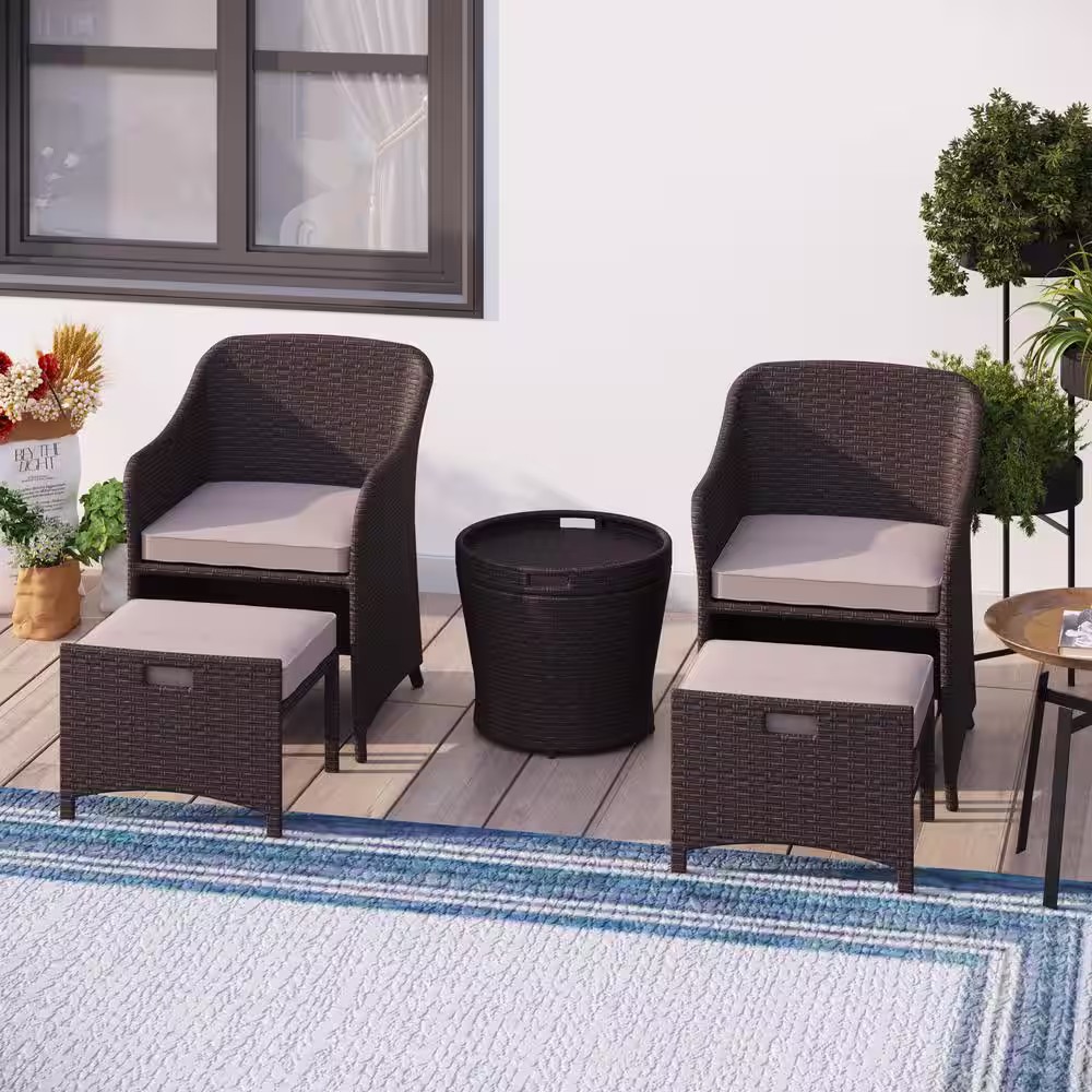 PHI VILLA Black Frame 5-Piece Outdoor Dark Brown Wicker Conversation Set with Beige Cushions