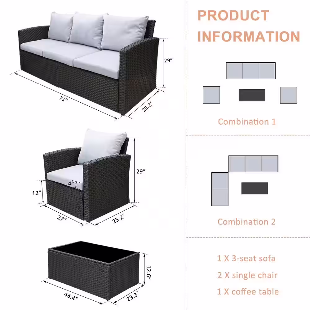 Costway 8-Piece Rattan Wicker Patio Conversation Set Cushioned Sofa Chair Coffee Table with Black Cushions