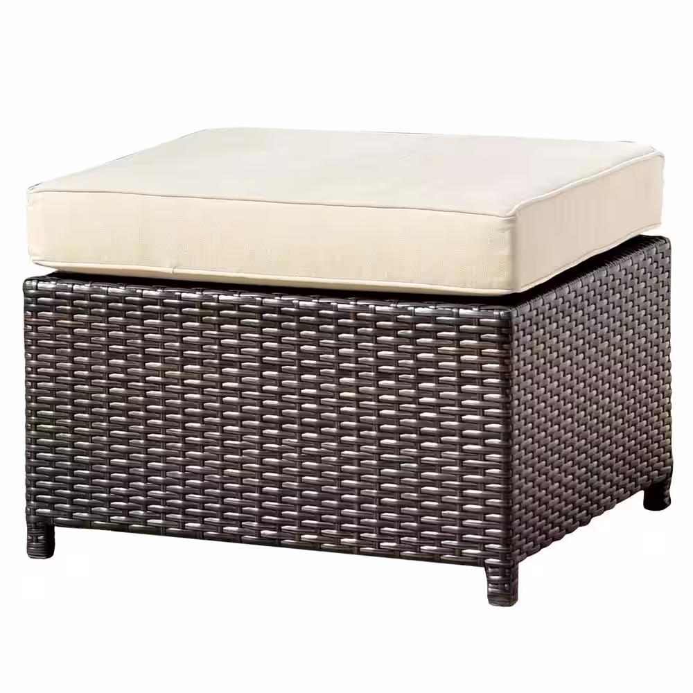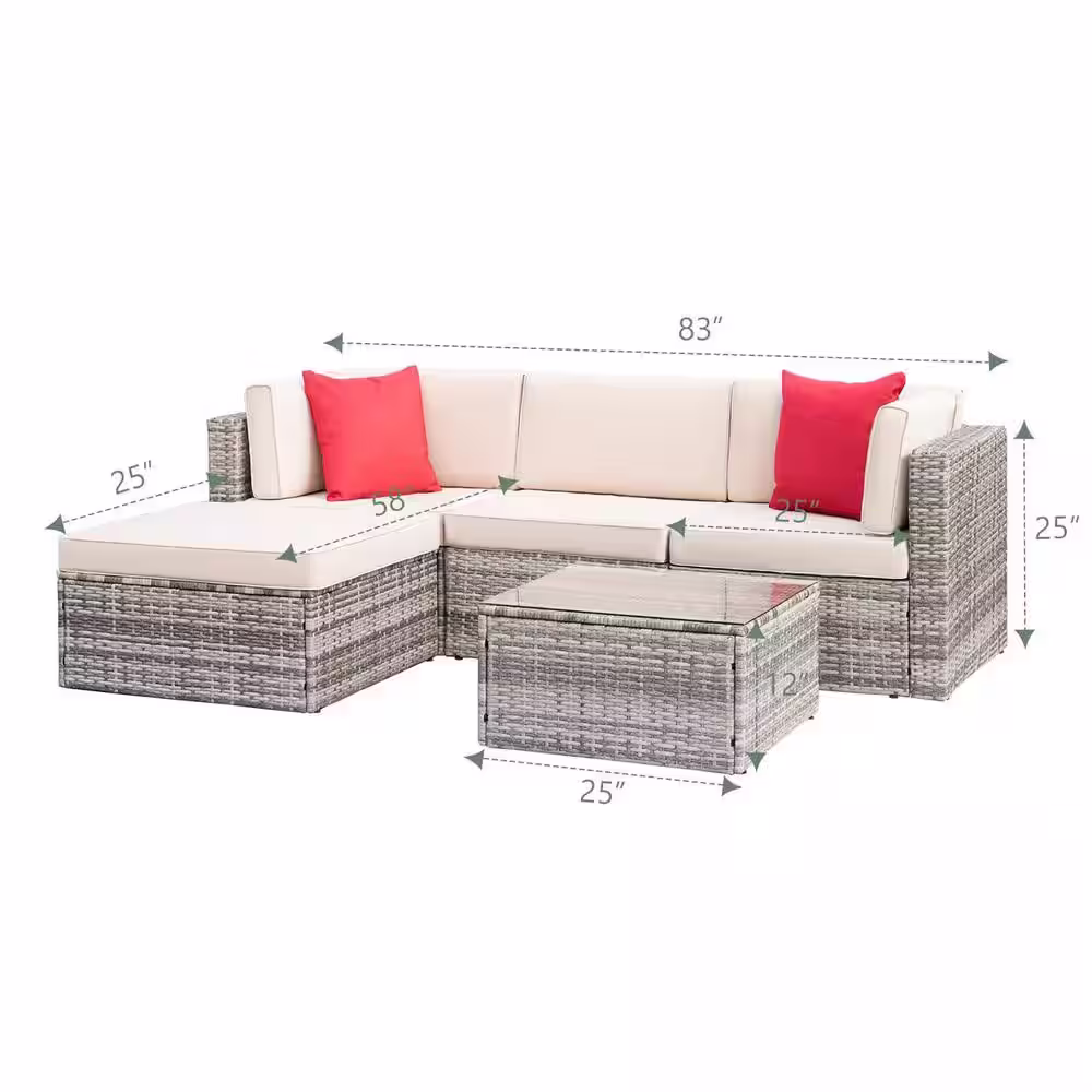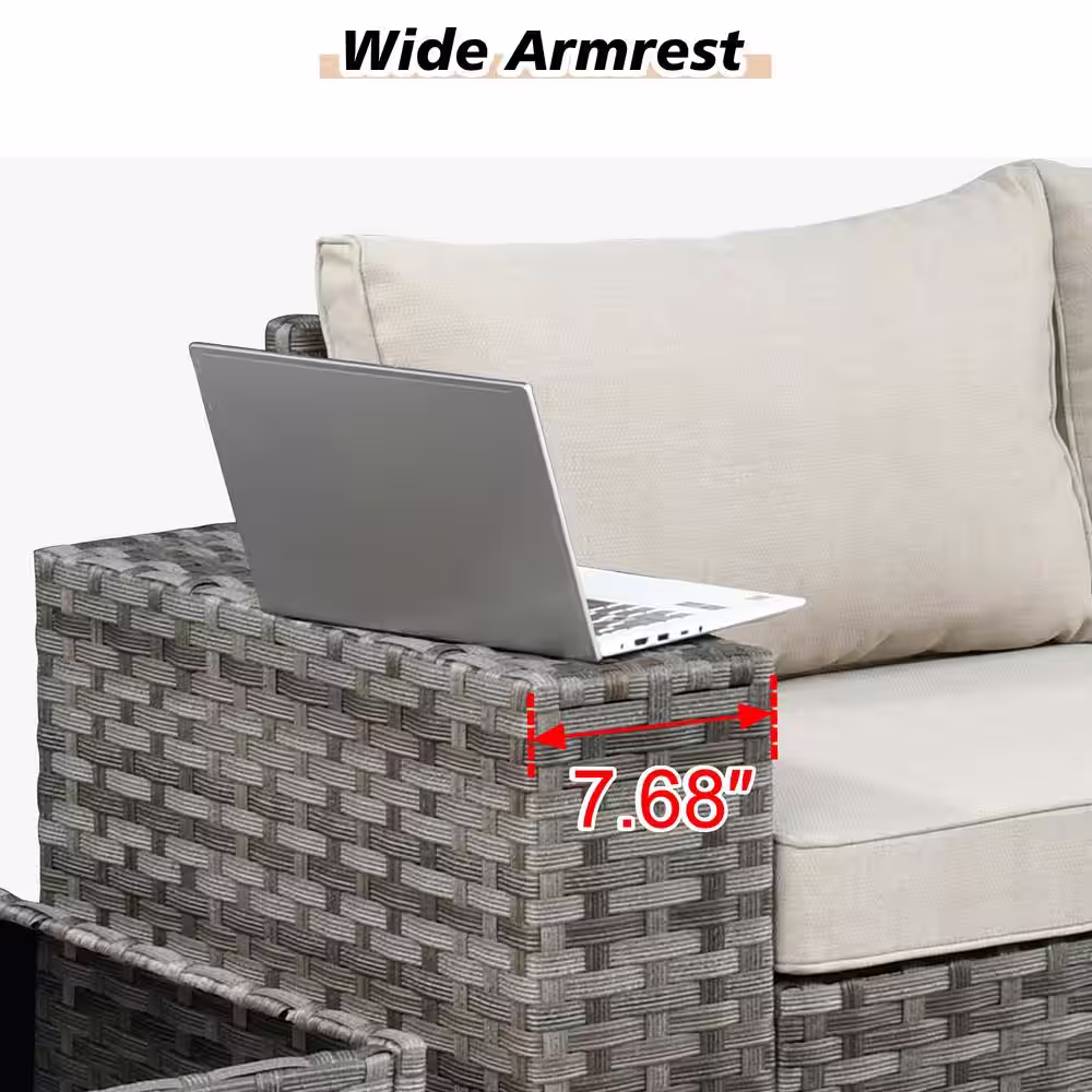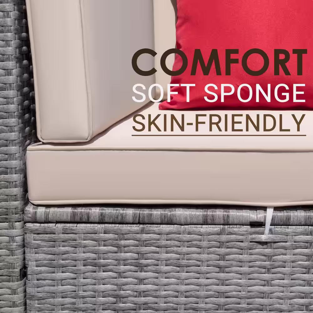 None Gray 6-Piece Wicker Patio Conversation Set with White Cushion and Ottoman