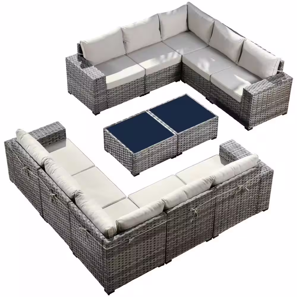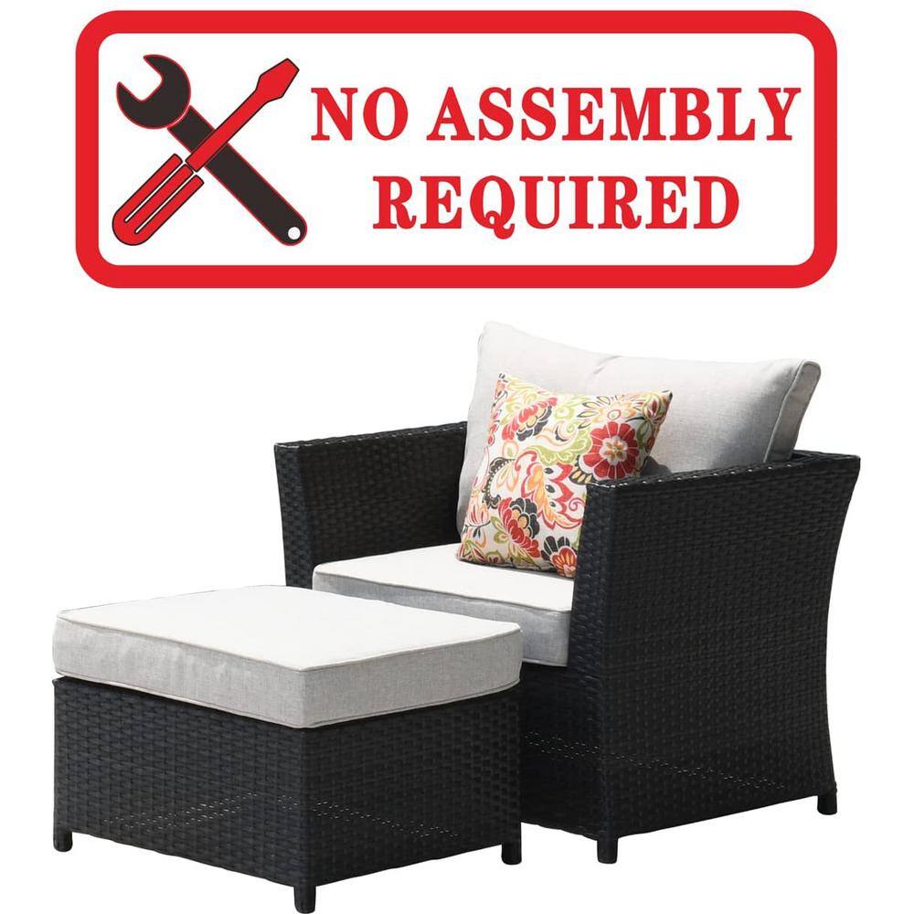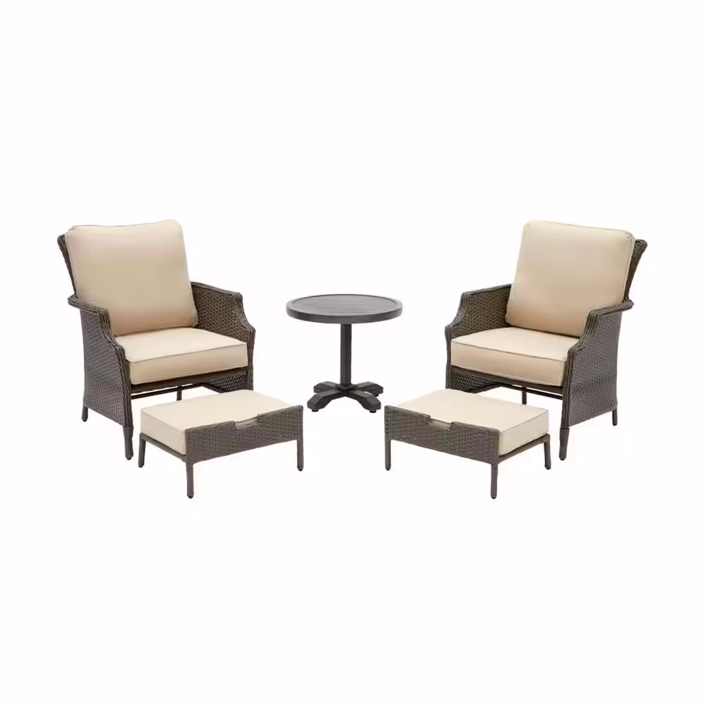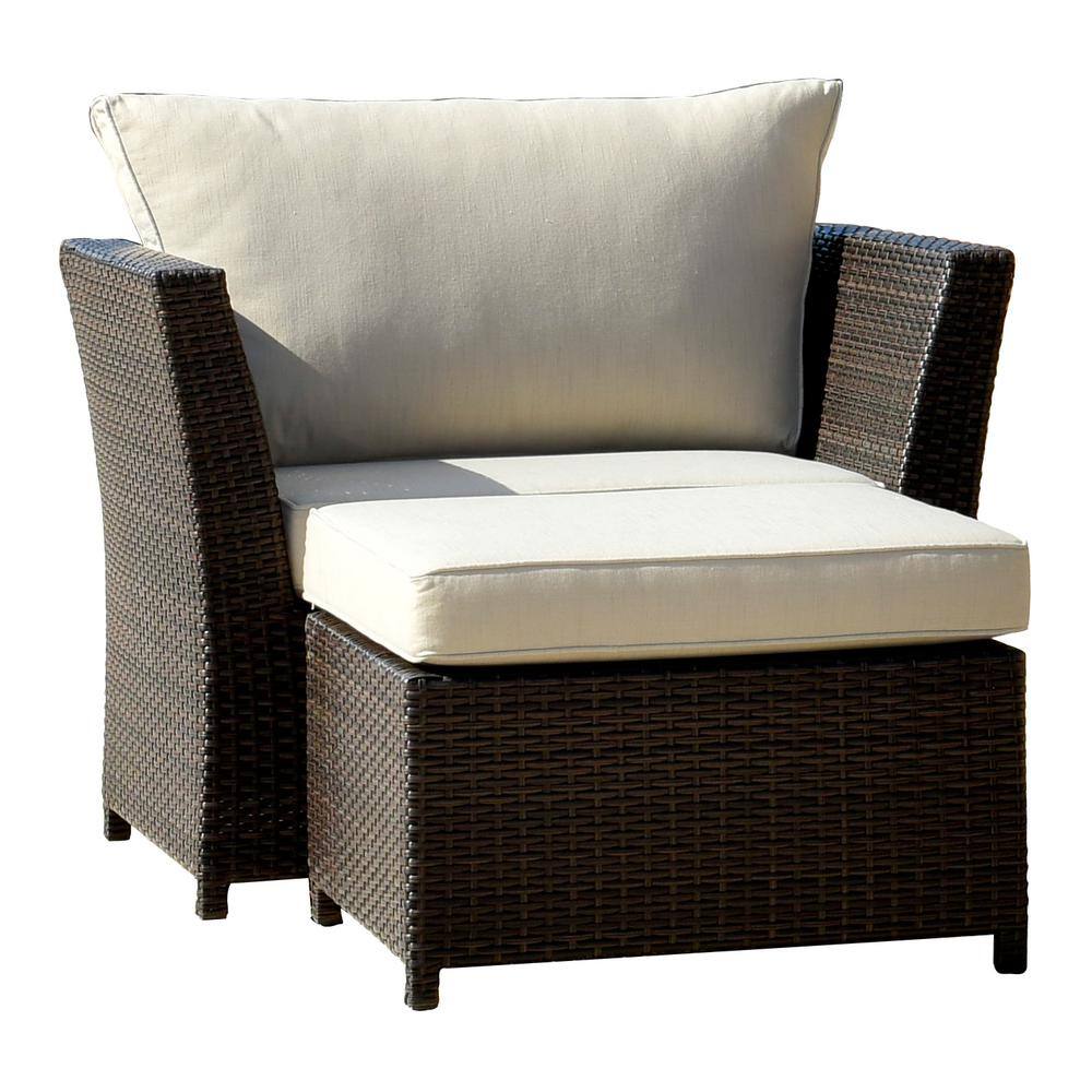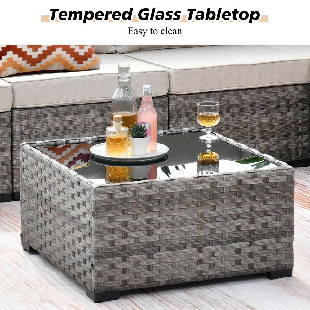 None Gray 6-Piece Wicker Patio Conversation Set with White Cushion and Ottoman