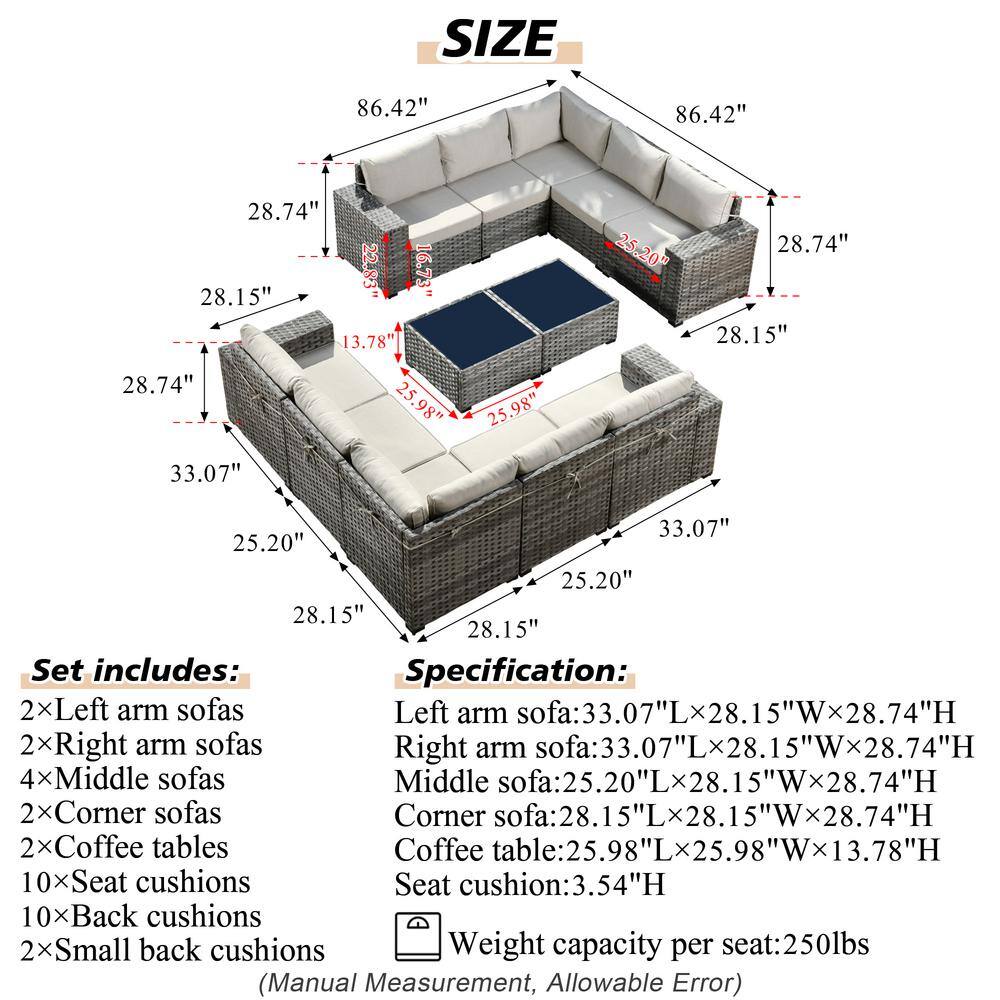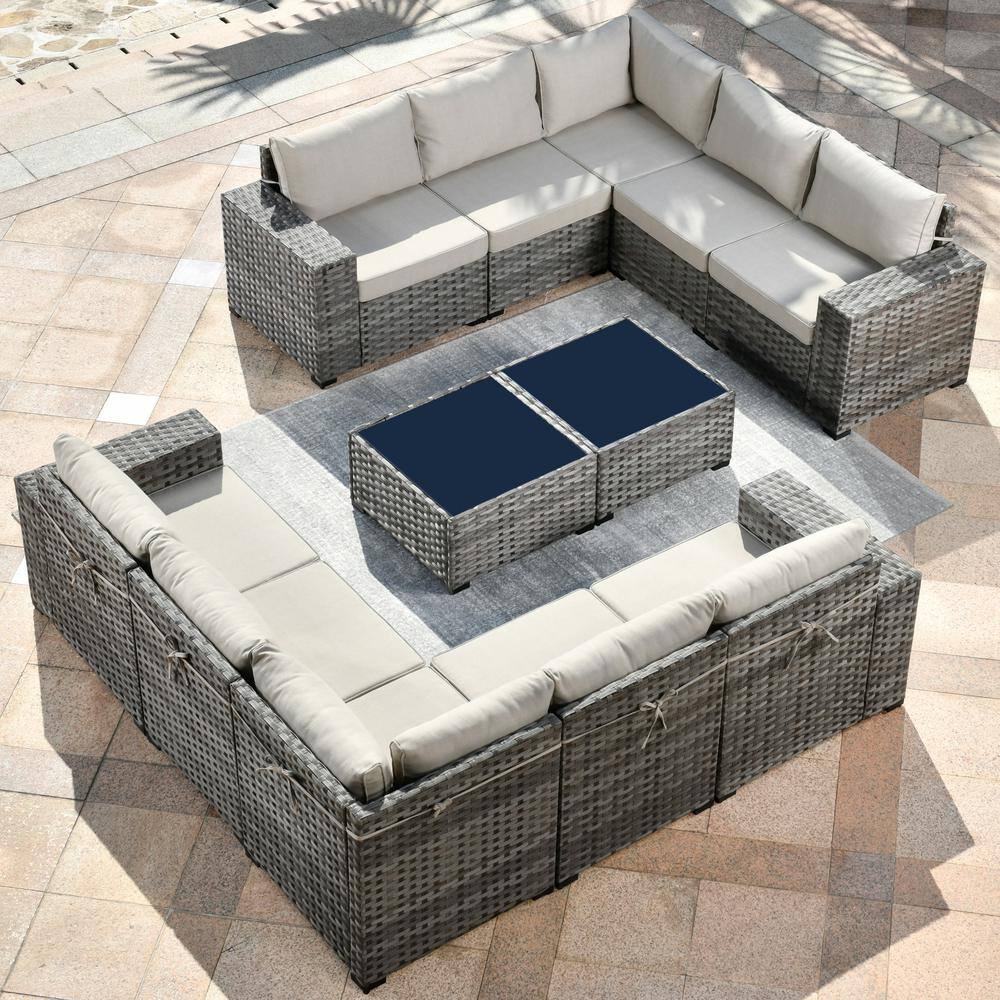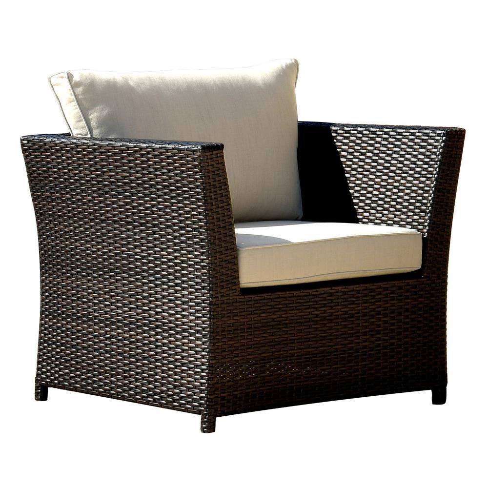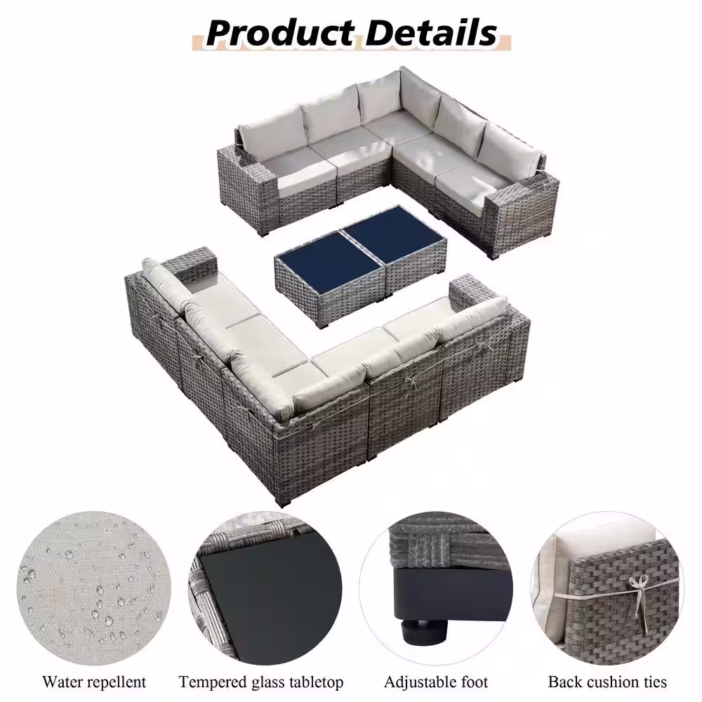None Gray 6-Piece Wicker Patio Conversation Set with White Cushion and Ottoman