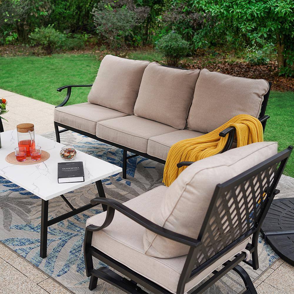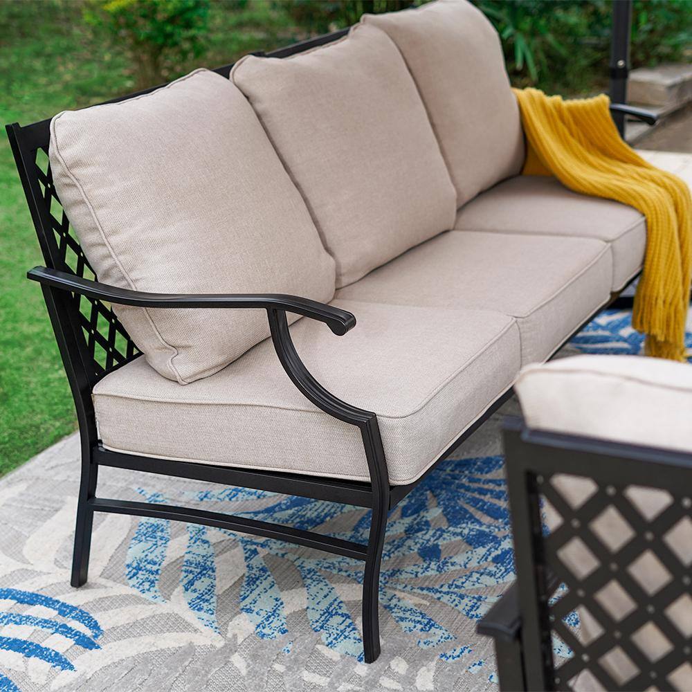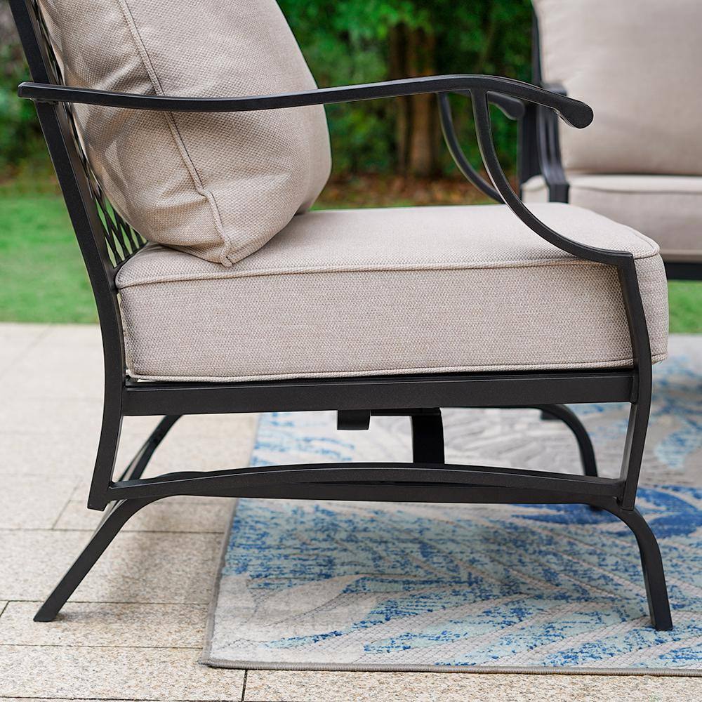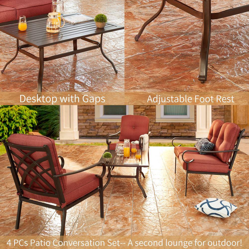 TOP HOME SPACE Black 4-Piece Metal Patio Conversation Set with 6.3 in. Red Cushions