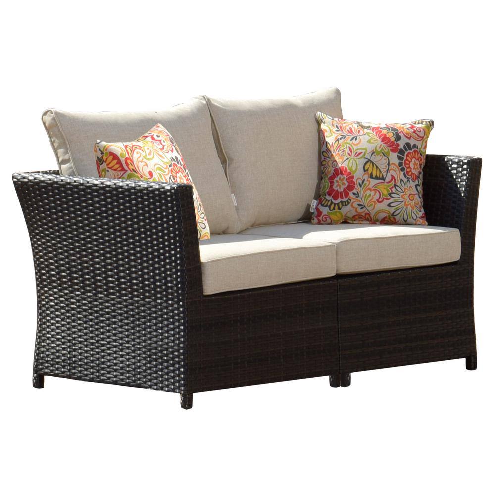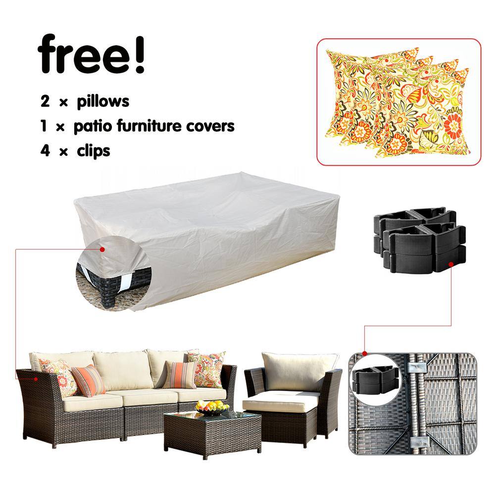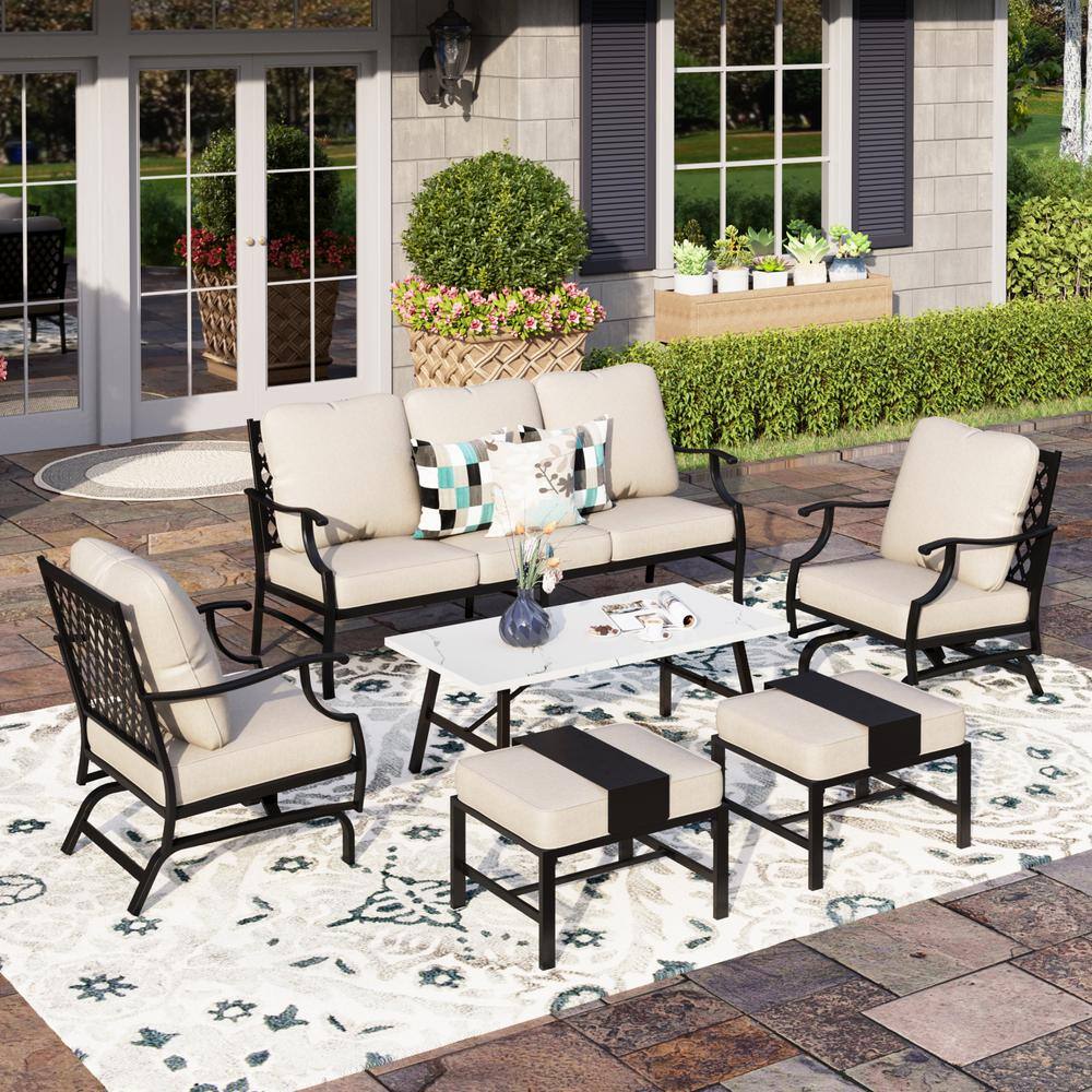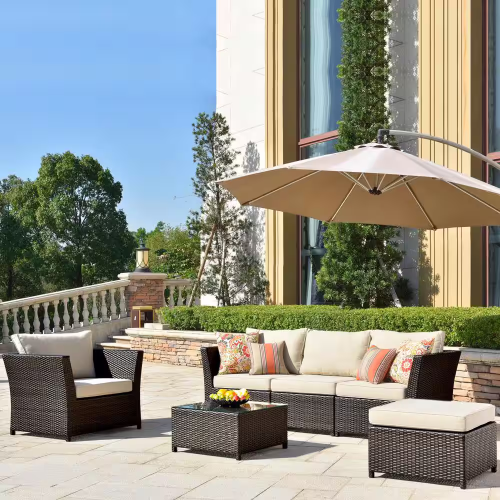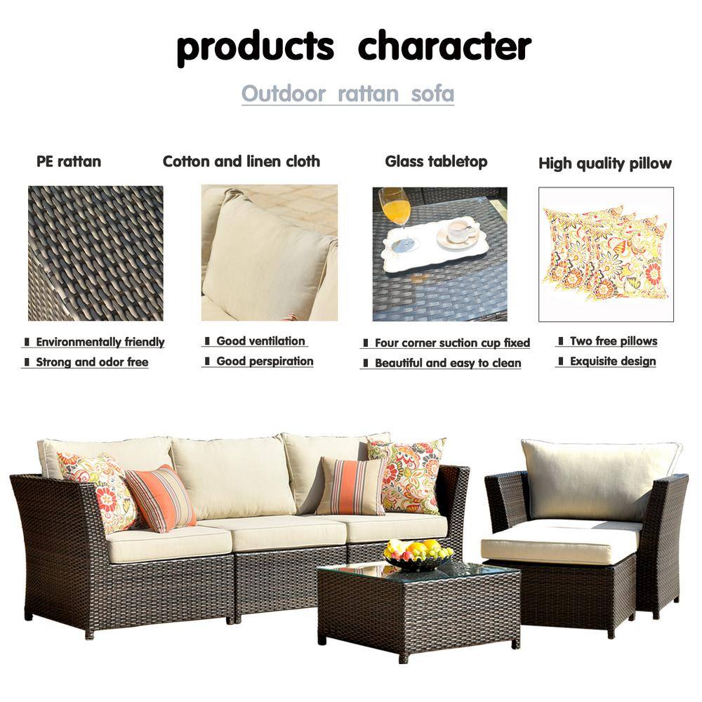 OVIOS Rimaru 6-Piece Wicker Outdoor Patio Conversation Seating Set with Beige Cushions
