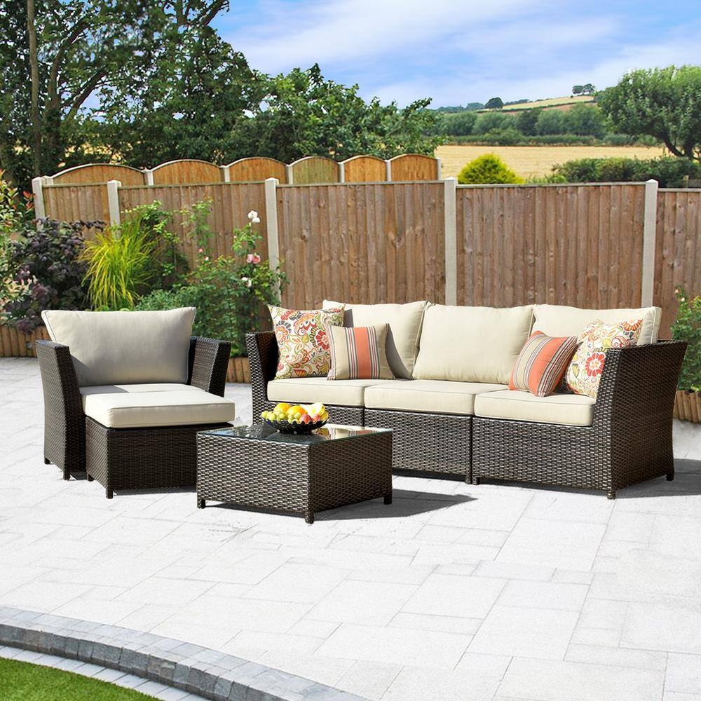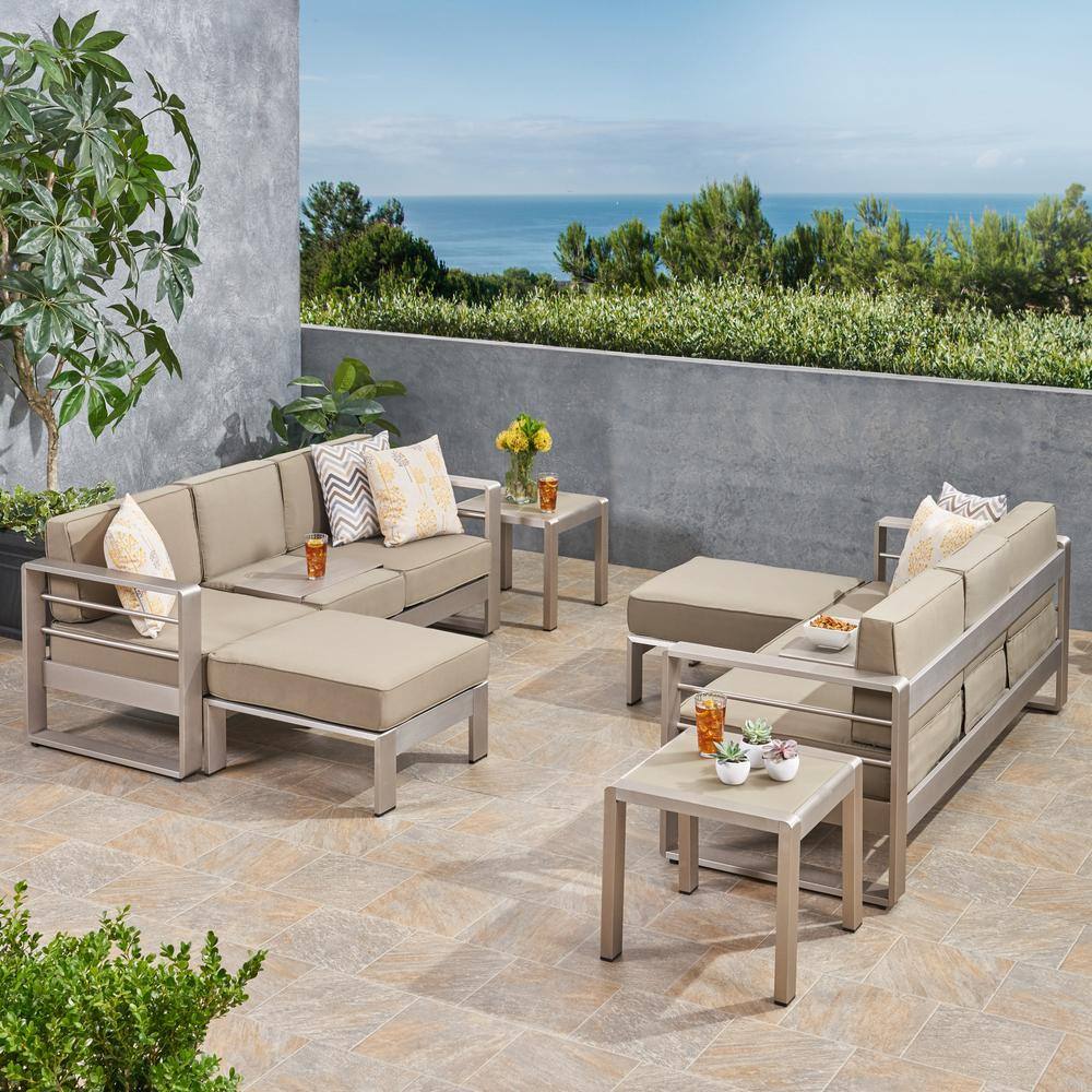 Noble House Cape Coral Silver 6-Piece Aluminum Patio Conversation Sectional Seating Set with Khaki Cushions