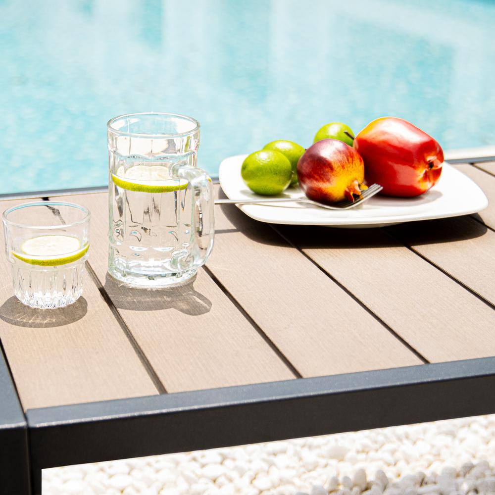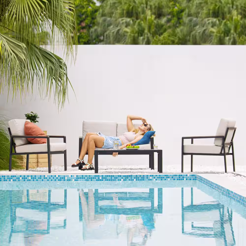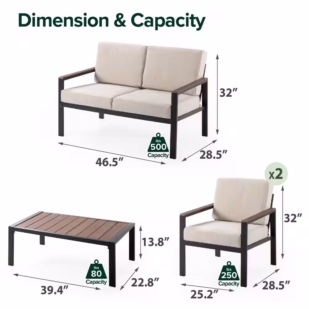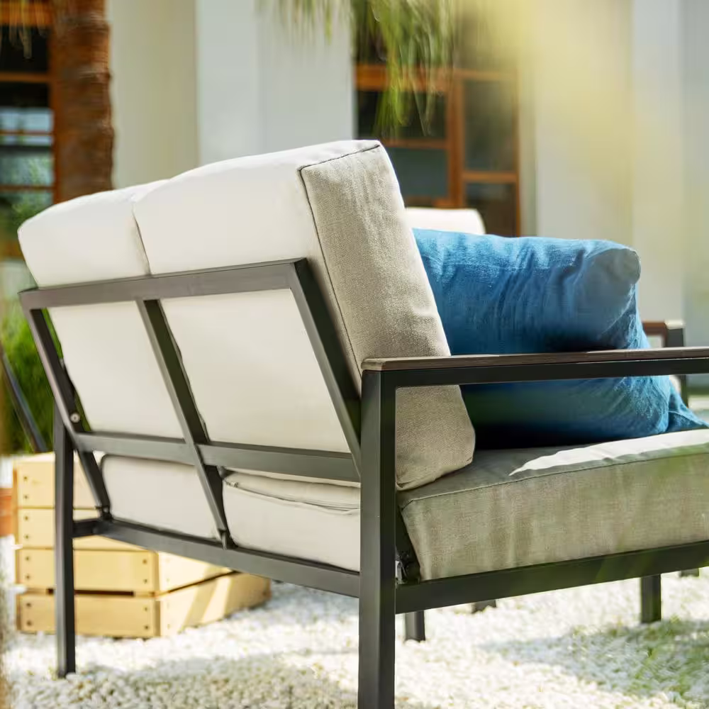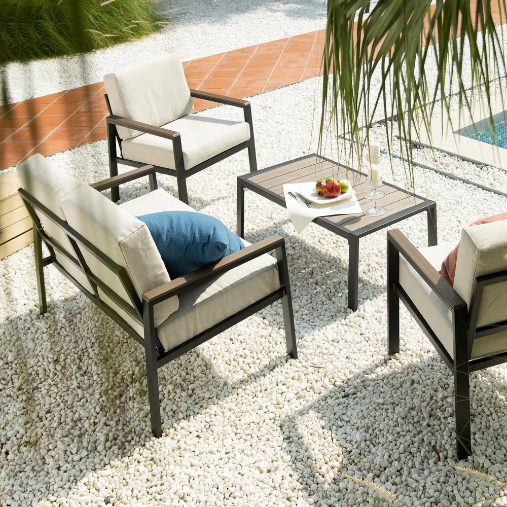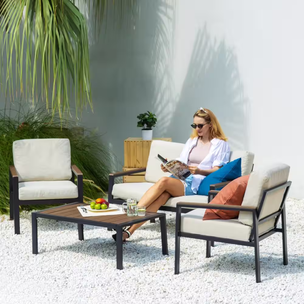 Zinus Dillon 4-Piece Black Aluminum and Poly Lumber Outdoor Conversation Set with Beige Cushion