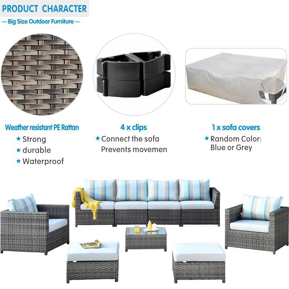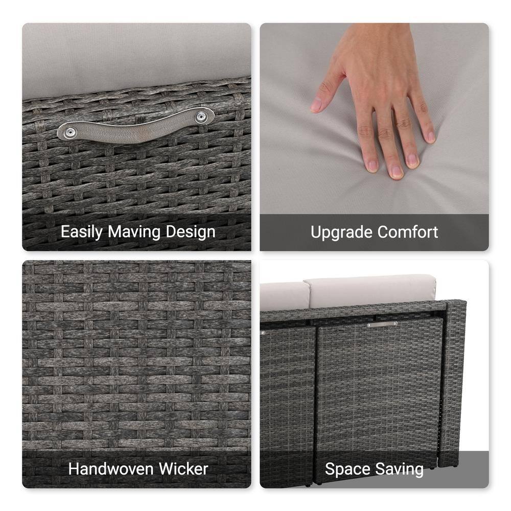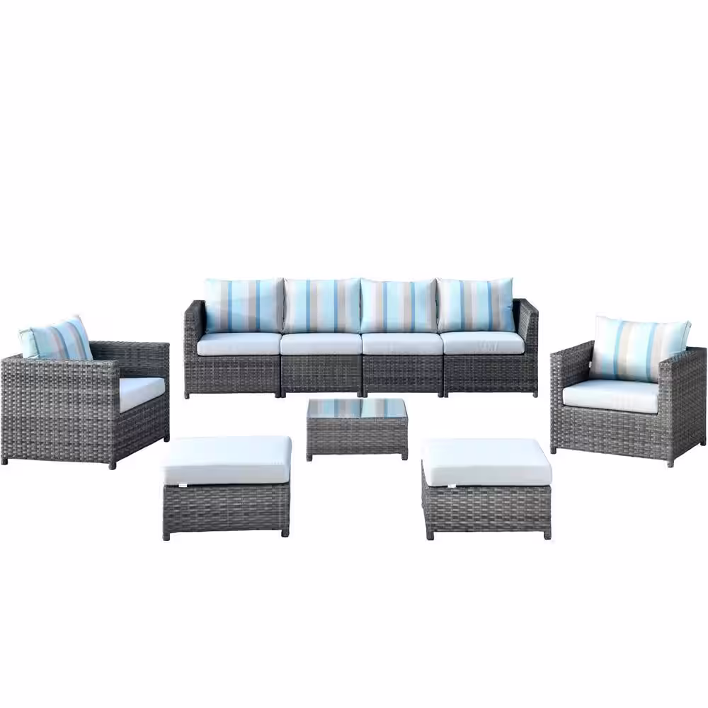 Patio Festival 13-Piece Wicker Collection Patio Conversation Set with Gray Cushions