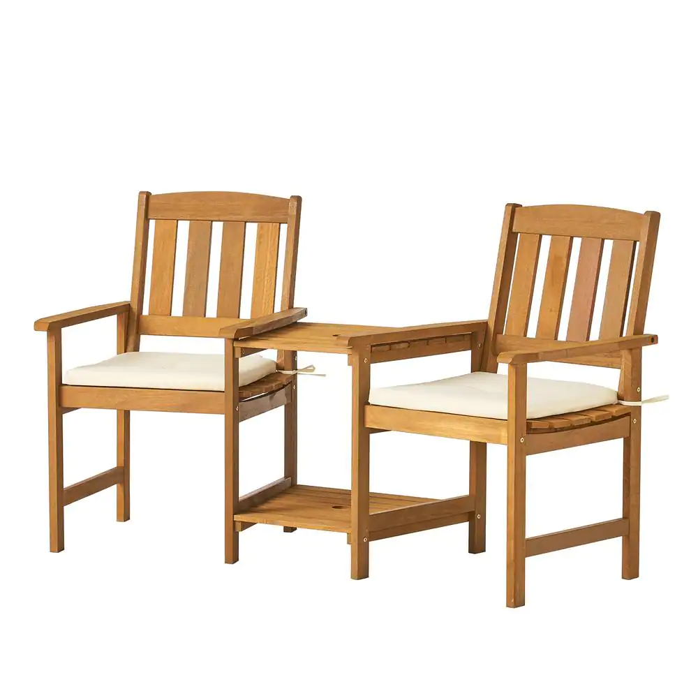 Noble House Cala Cream and Honey Oak 2-Piece Meranti Patio Deep Seating Set with Cream Cushions