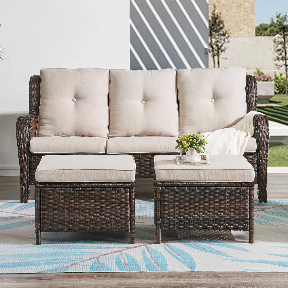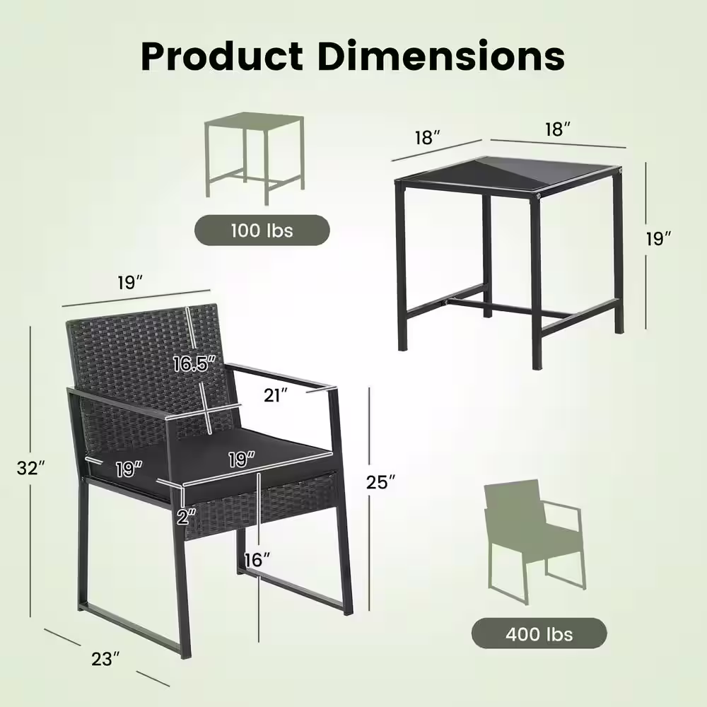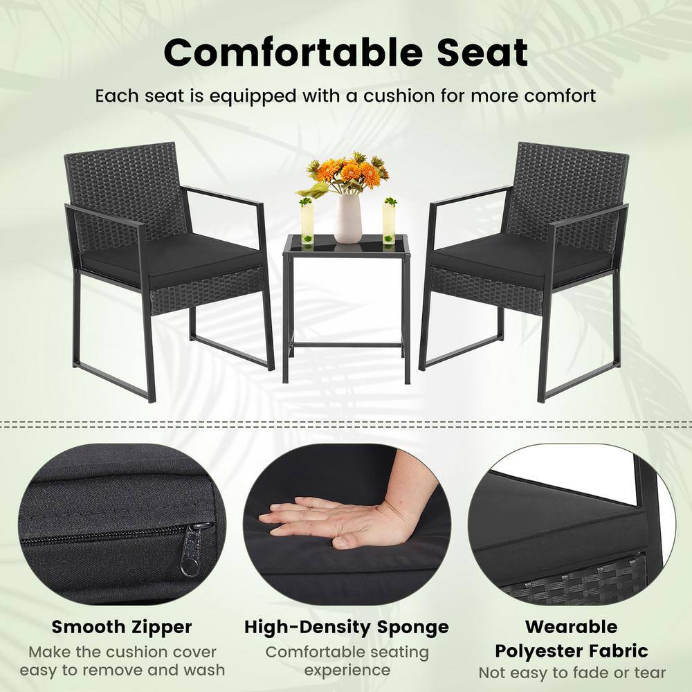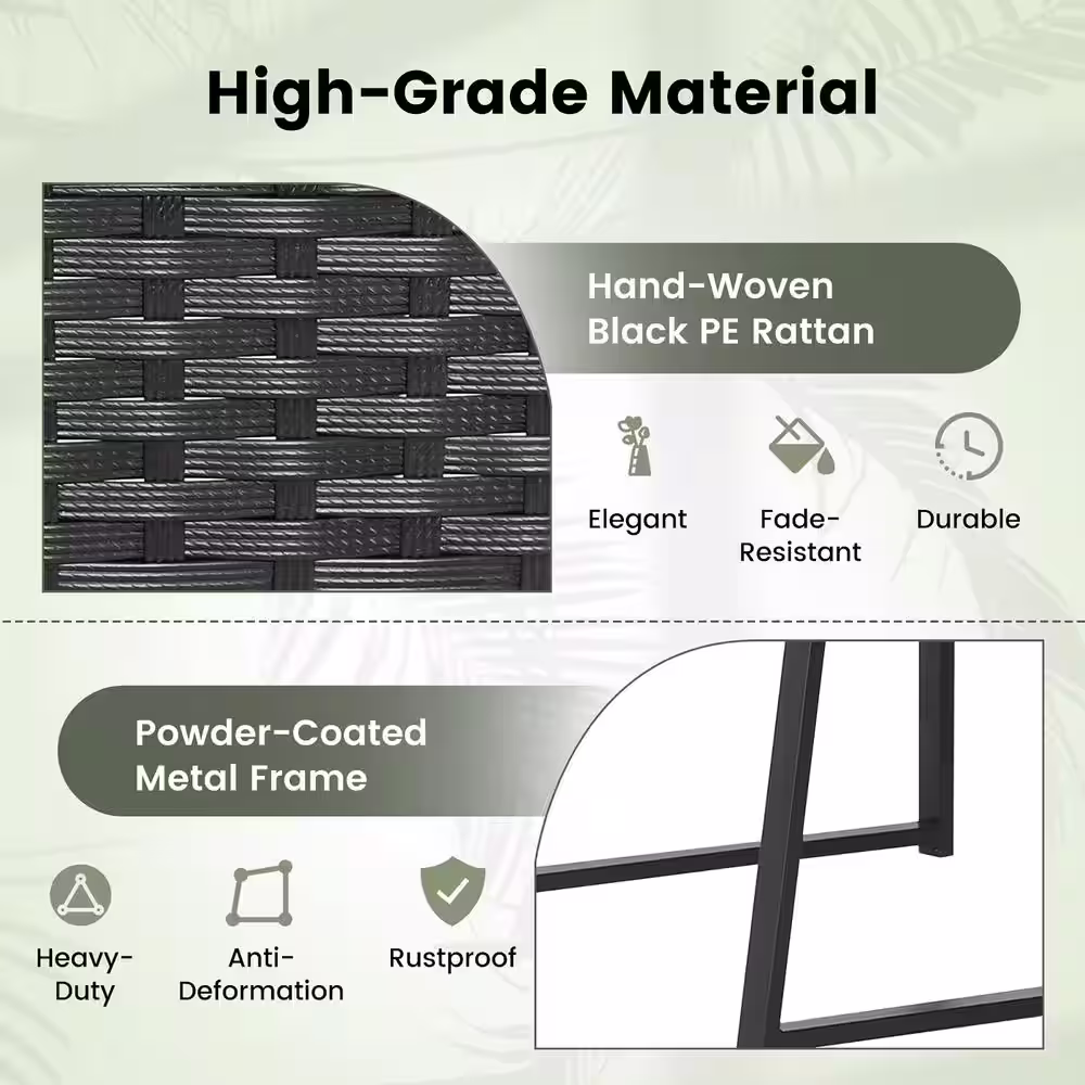 Costway 3-Piece Patio Furniture Set Heavy-Duty Cushioned Wicker Rattan Chairs Table Outdoor