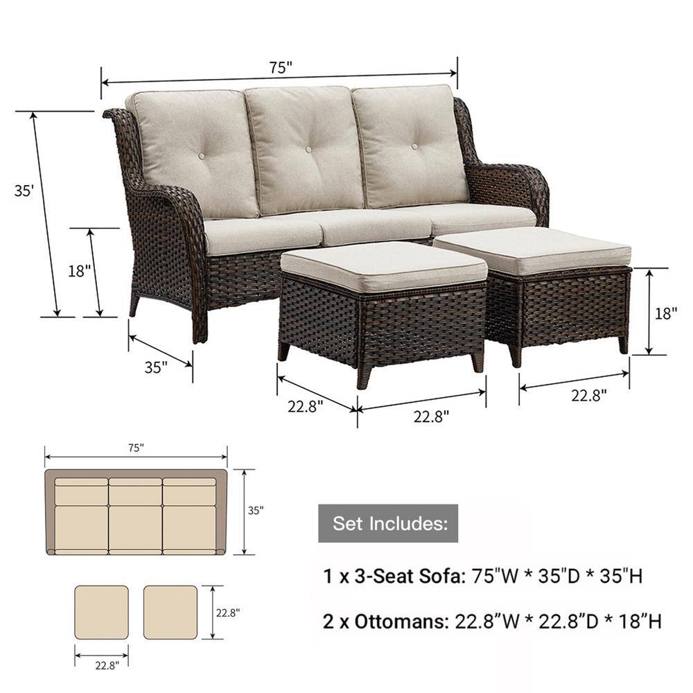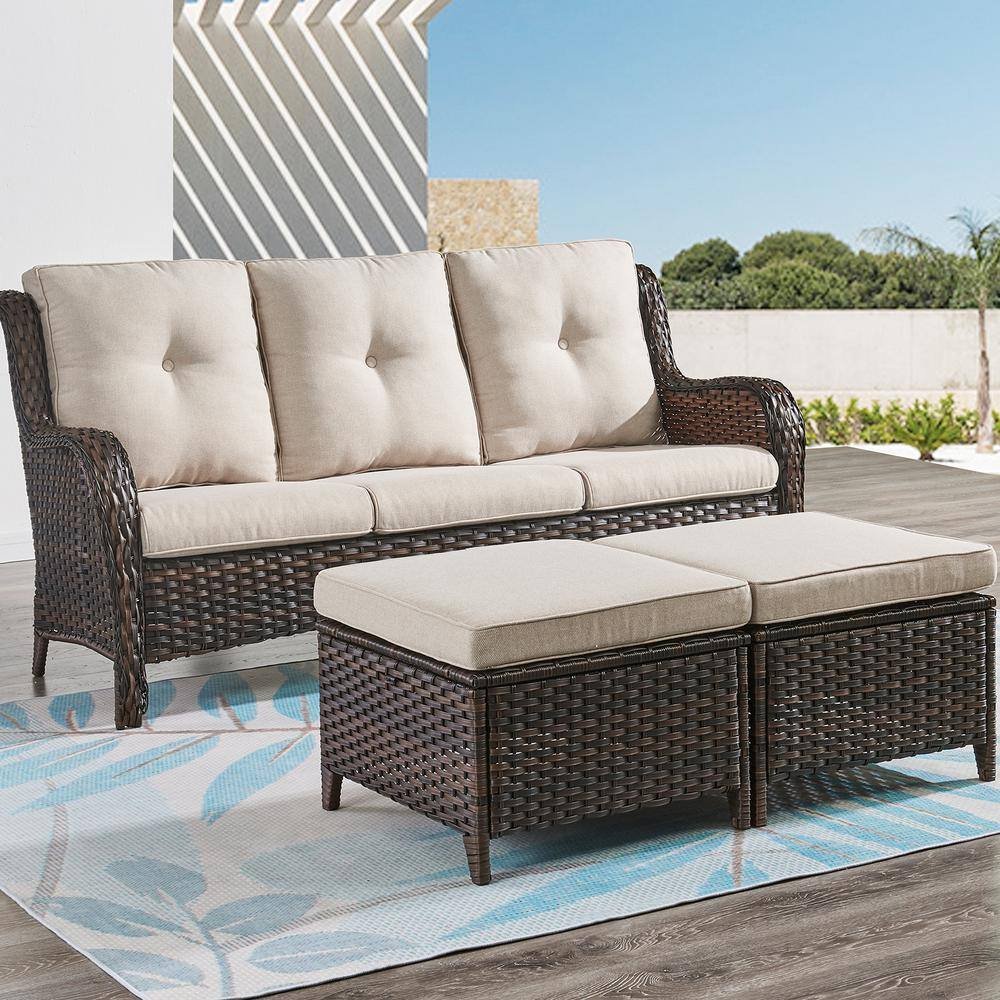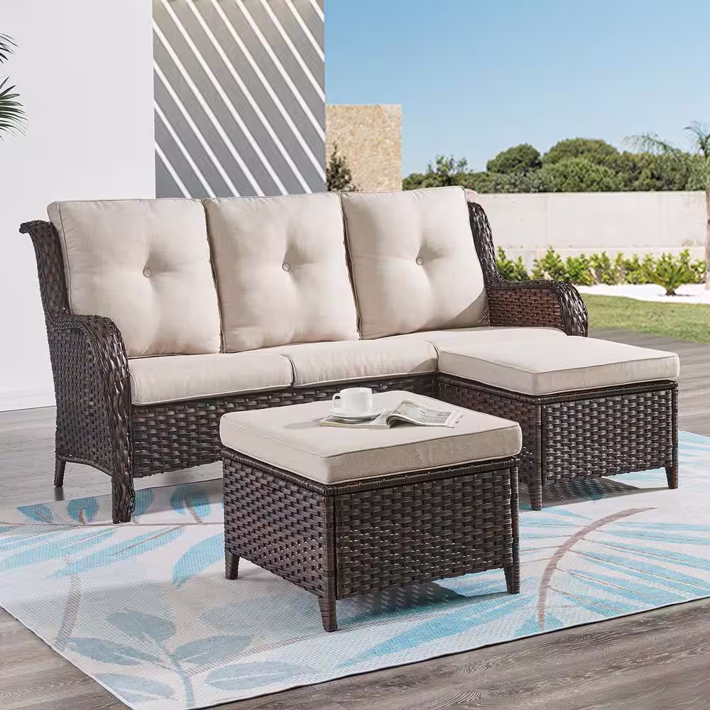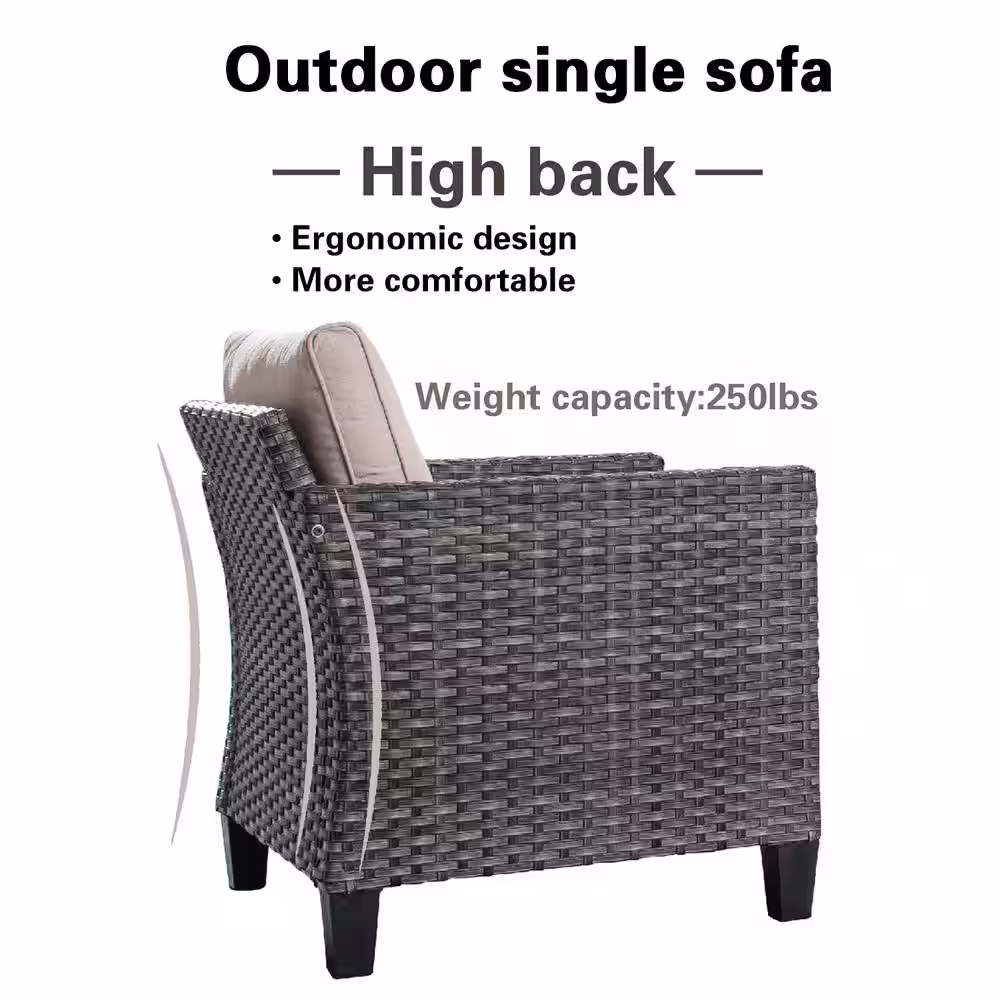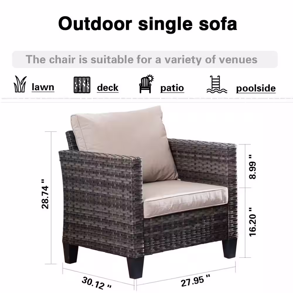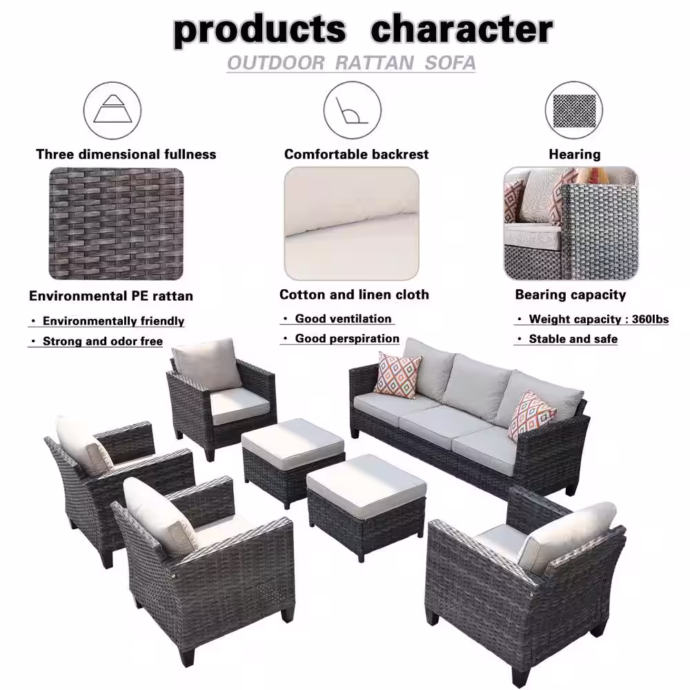 OVIOS Positano Gray 7-Piece Wicker Patio Conversation Set with with Beige Cushions