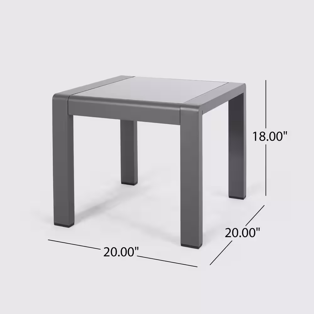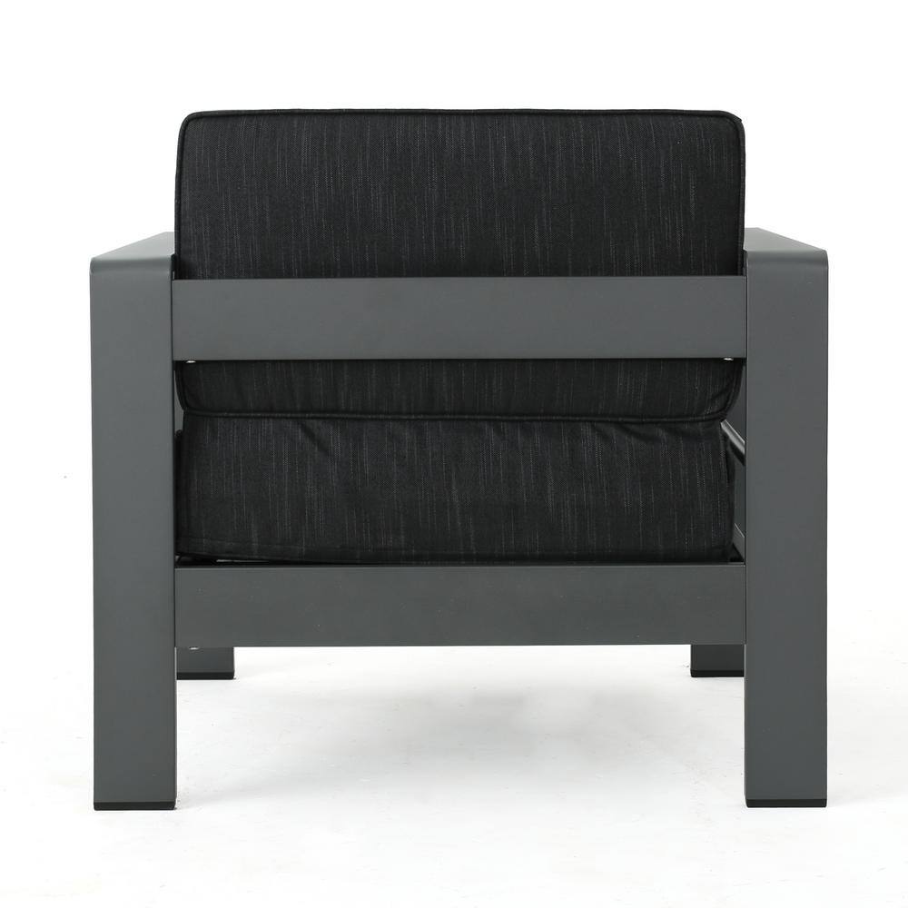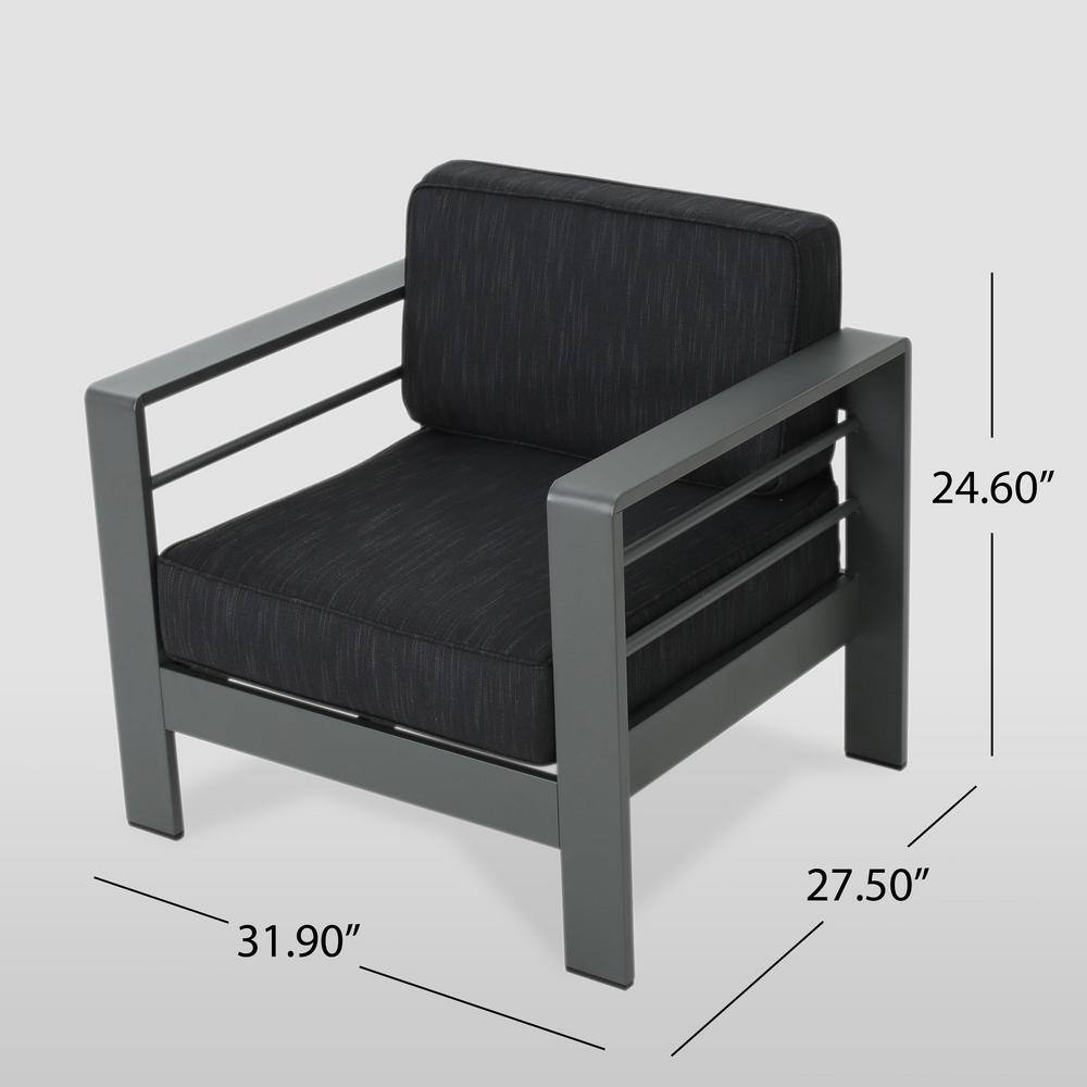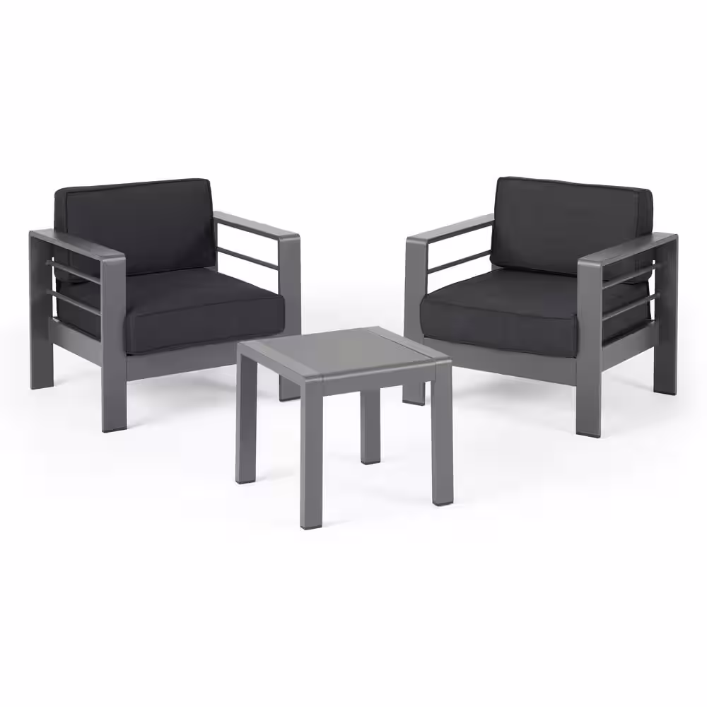 Noble House Cape Coral Grey 3-Piece Aluminum Patio Conversation Seating Set with Dark Grey Cushions