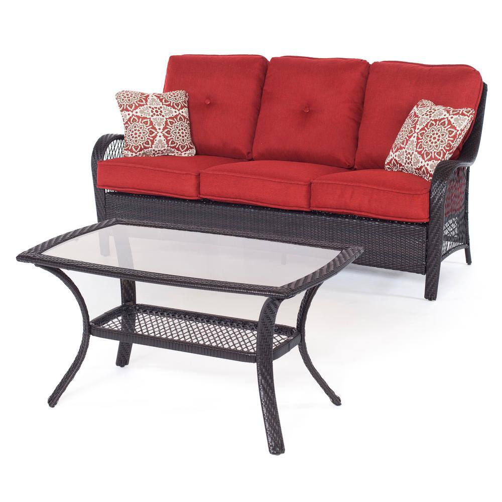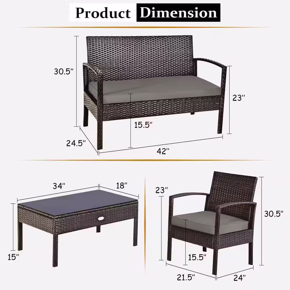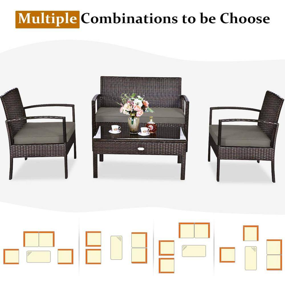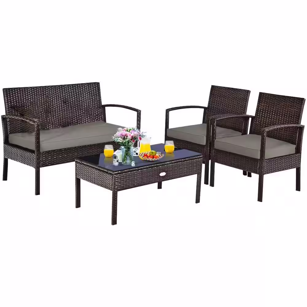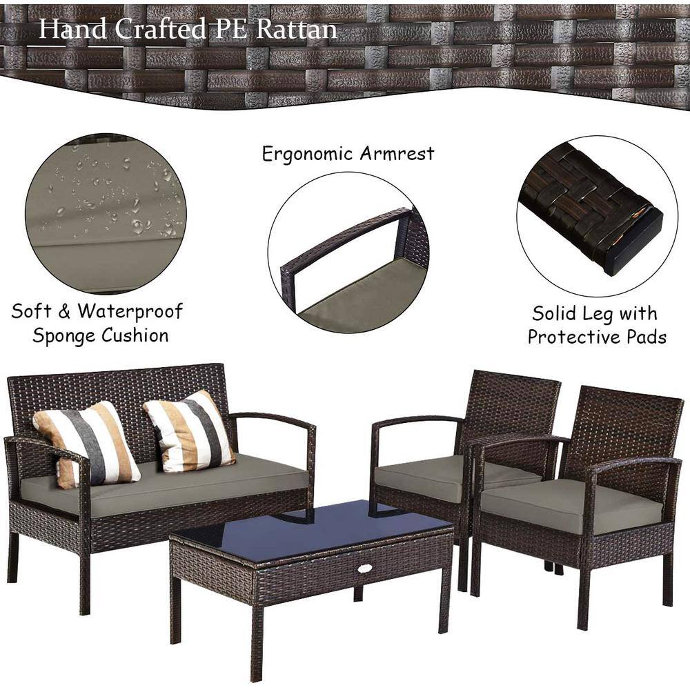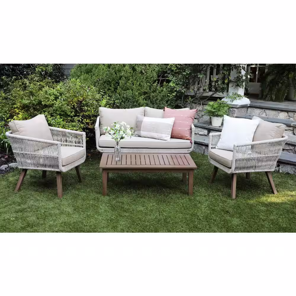 None 4-Piece Wicker Outdoor Patio Conversation Set with Tan Cushions and Coffee Table