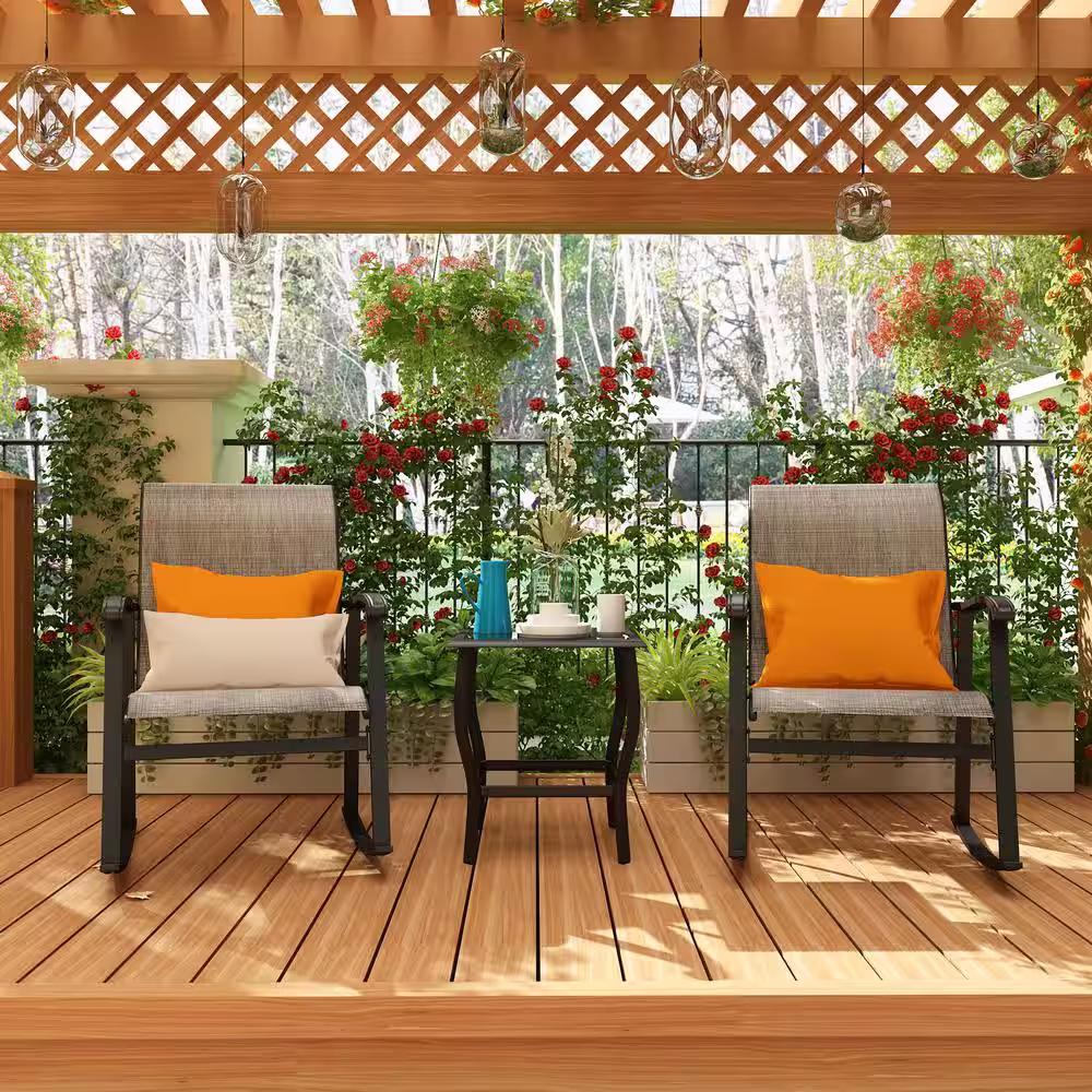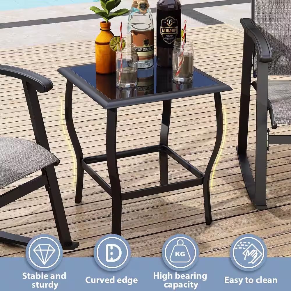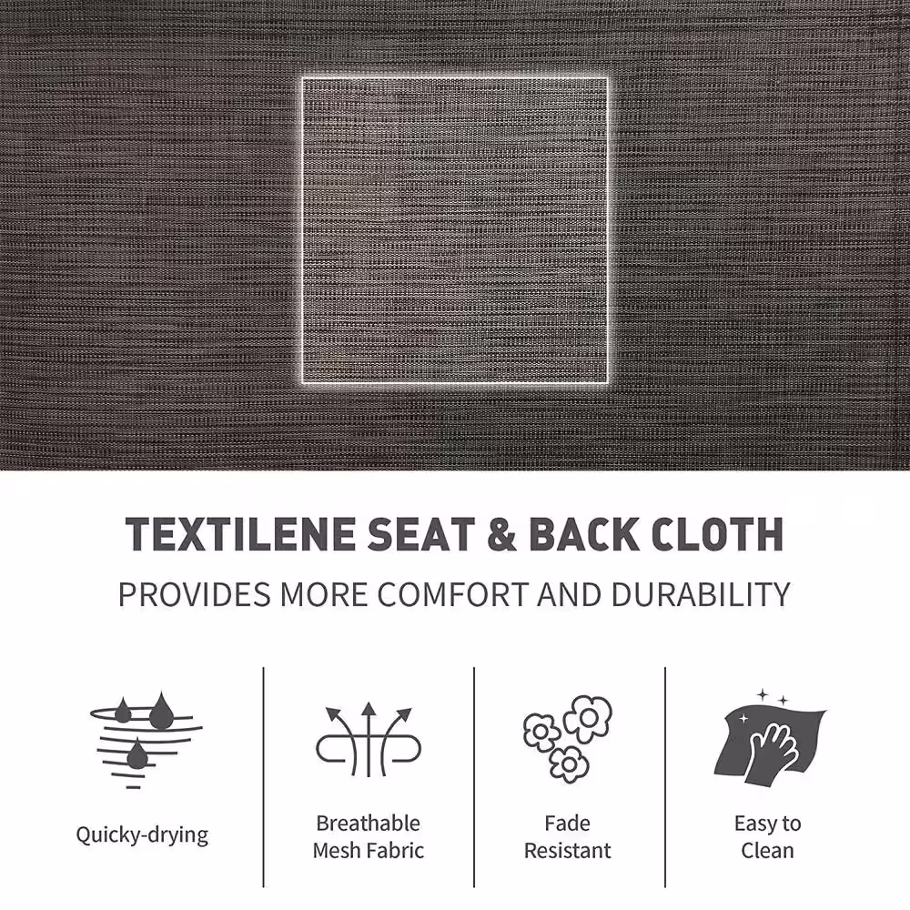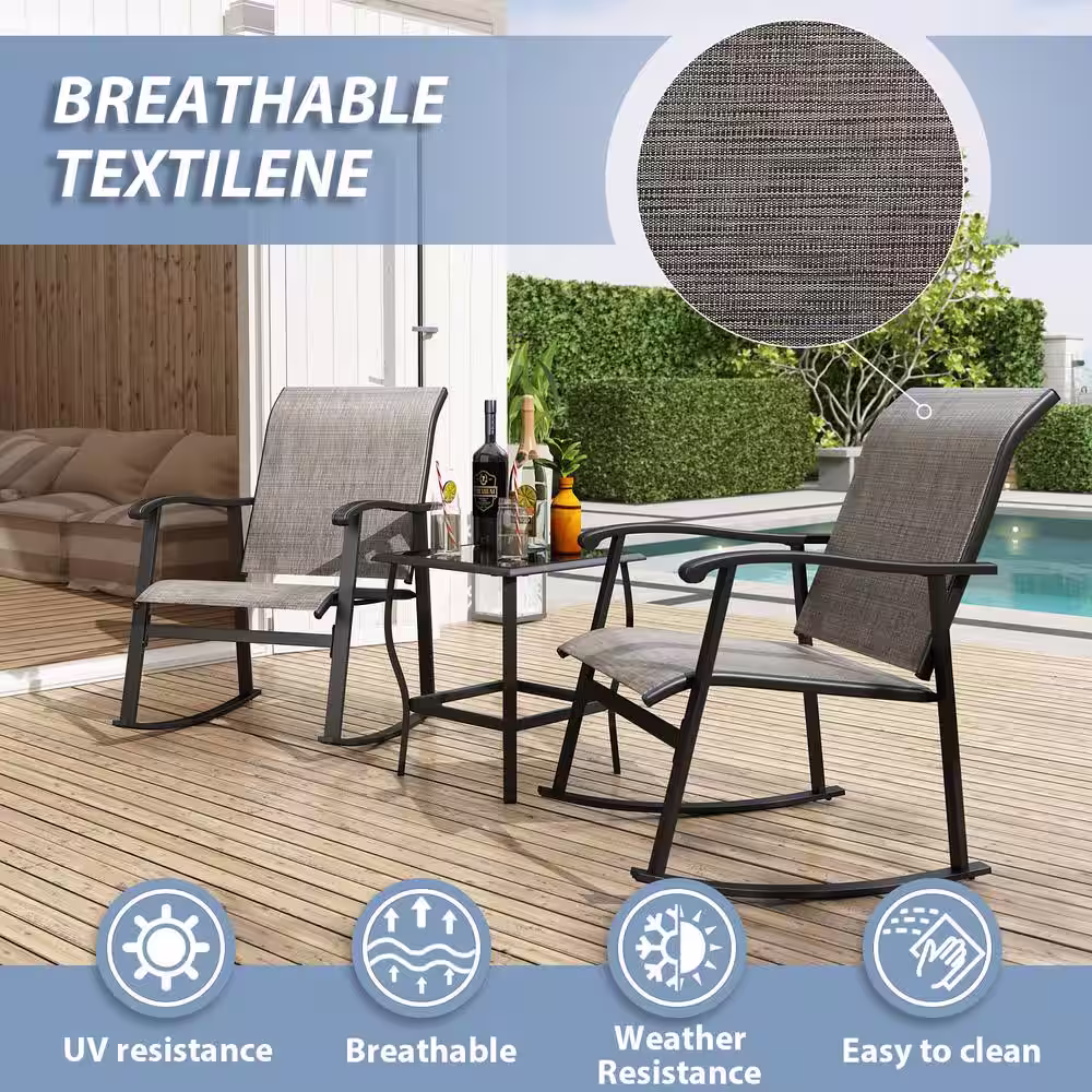 None Gray 3-Piece Metal Frame Textilene Patio Conversation Set with Glass Table, For Outdoor, Pool, Garden
