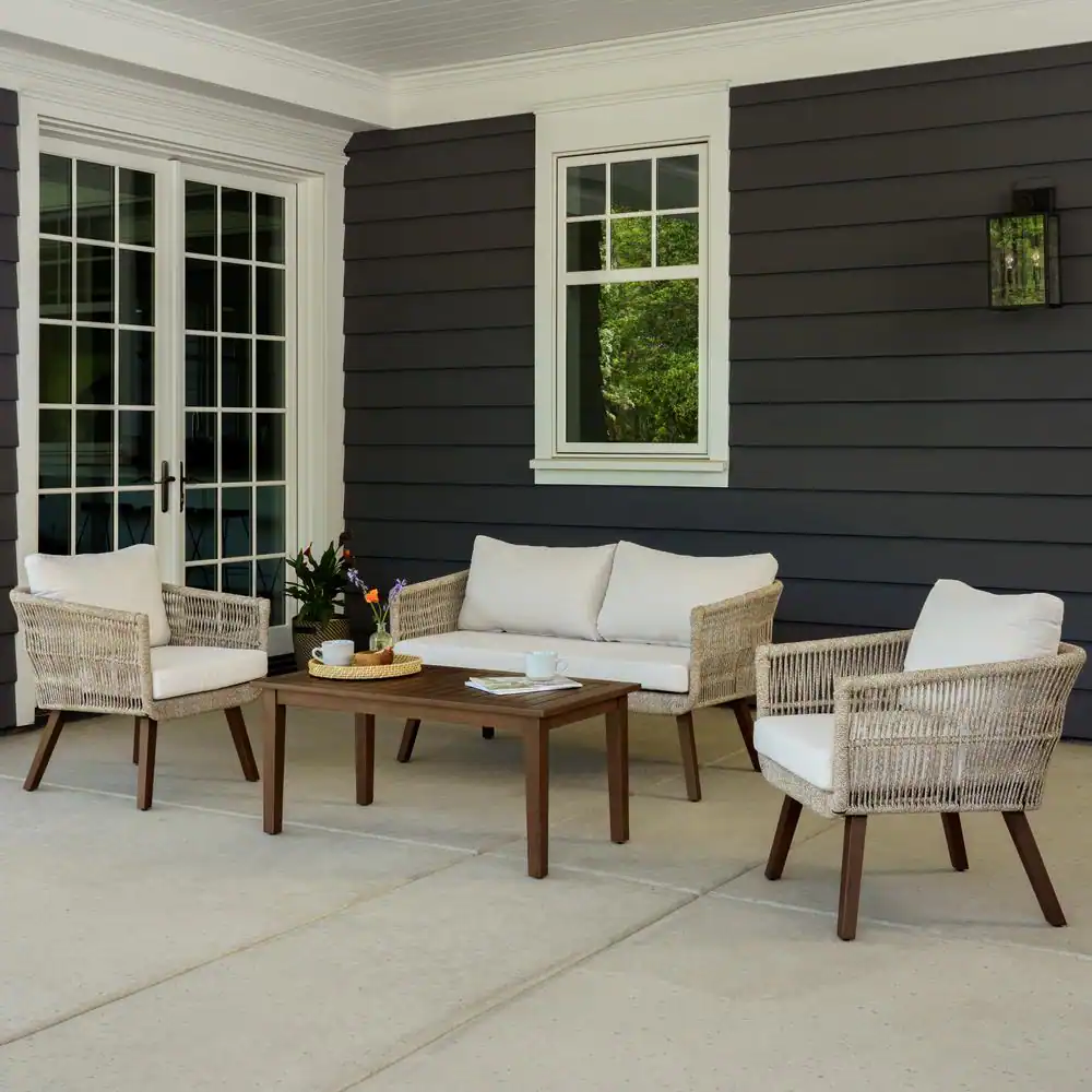 Canopy Palm 4-Piece Resin Wicker Patio Deep Seating Set with Sunbrella Cast Pumice Cushions