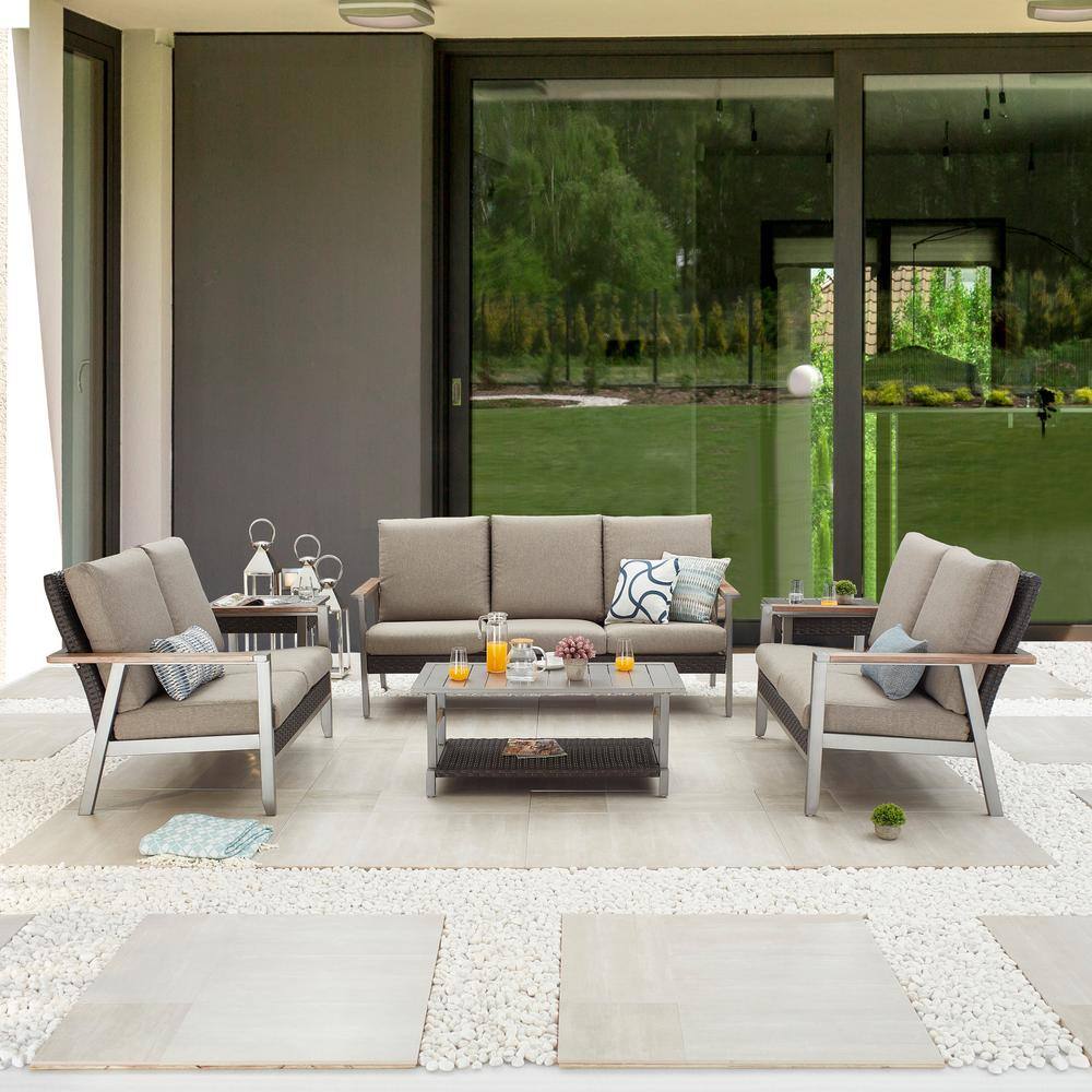 Patio Festival 6-Piece Wicker Patio Conversation Set with Beige Cushions