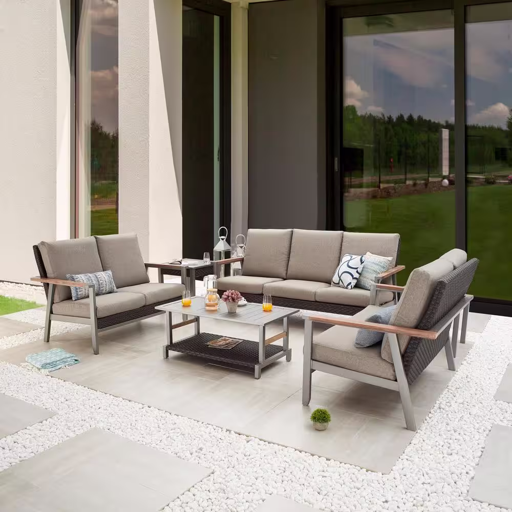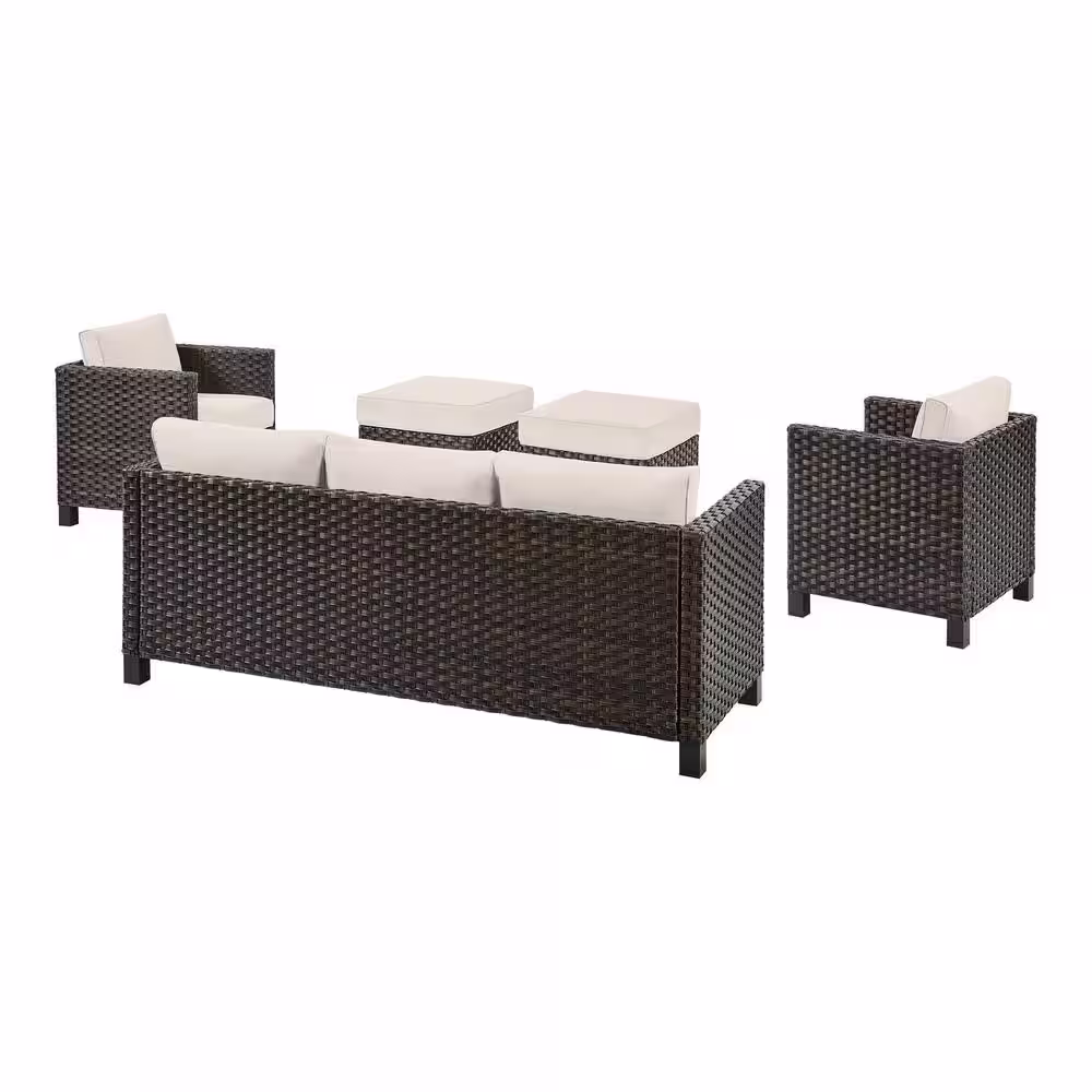 StyleWell Sharon Hill 5-Piece Wicker Patio Conversation with Almond Biscotti Cushions